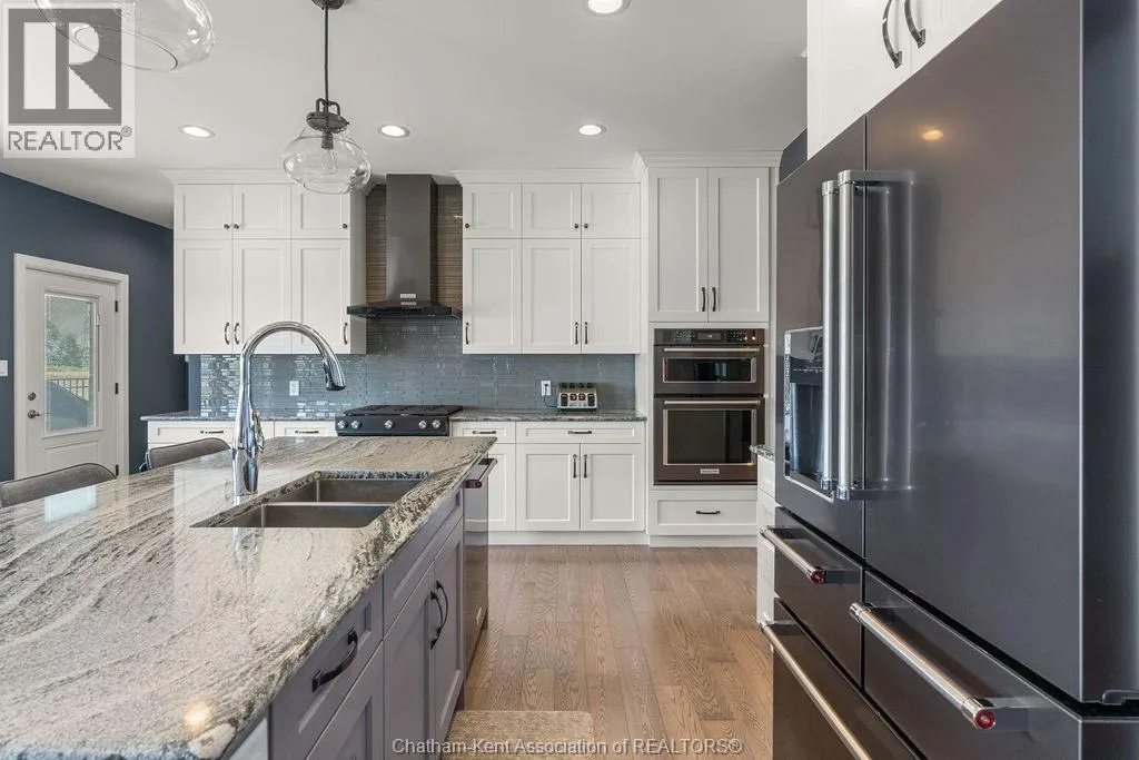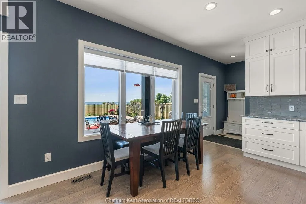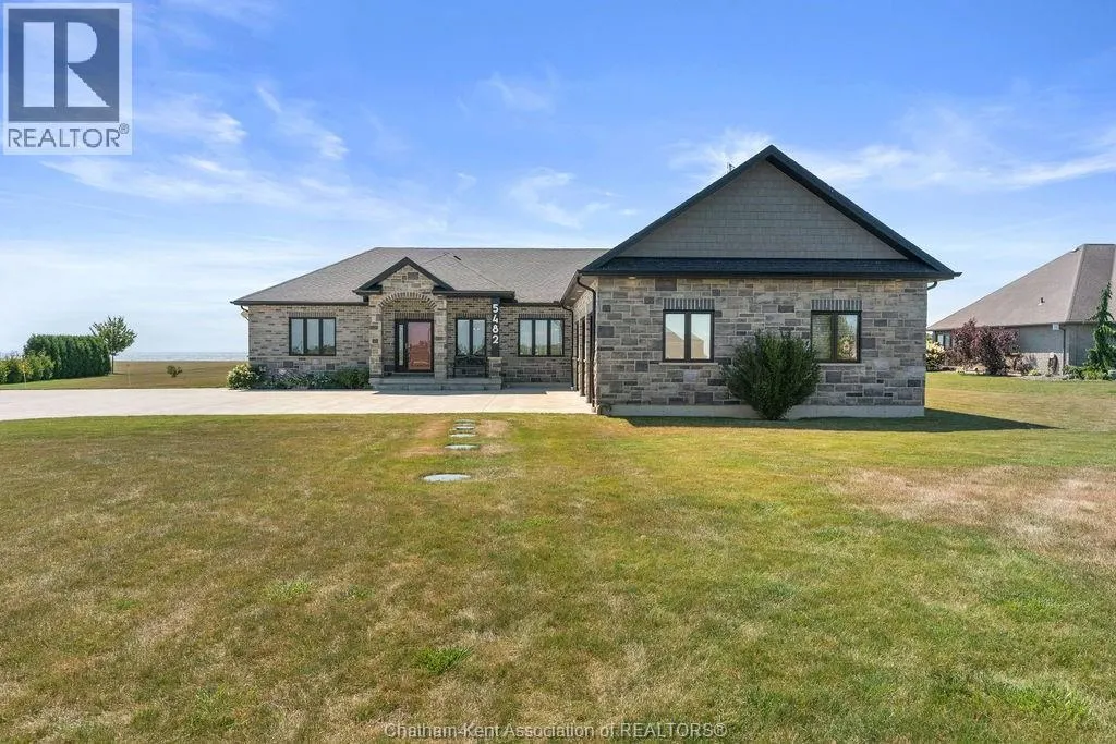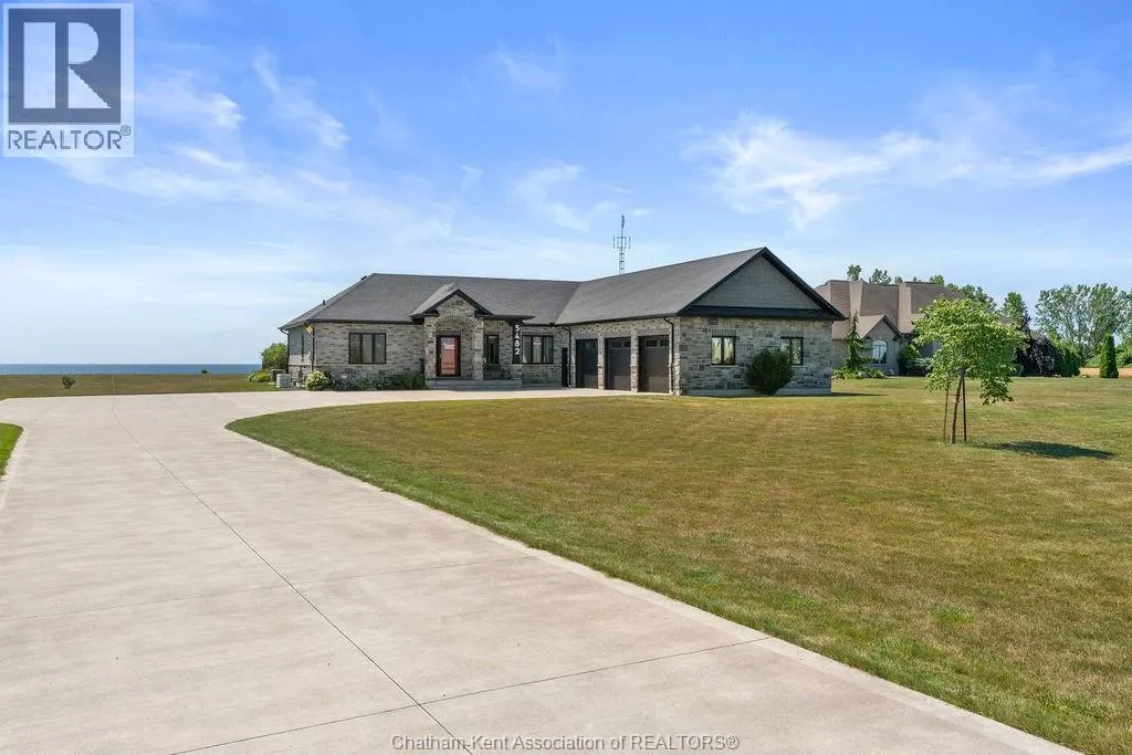 Experience refined lakeside living at 5482 Talbot Trail, a custom-designed executive home offering timeless craftsmanship, ultimate privacy, and sweeping panoramic views of Lake Erie. Situated on 2.29 acres atop a fairy tale 100-foot cliff, this one-of-a-kind residence was built in 2017 and has been meticulously maintained by its original owner. With over 2,300 sq. ft. of luxury living on the main floor and a fully finished basement, this Energy Starârated custom home features 5 spacious bedrooms, 3.5 bathrooms, and a heated triple-car garage. Interior highlights include hardwood flooring throughout, Cambria quartz countertops, a chefâs kitchen with high-end appliances and a walk-in pantry, and built-in speakers throughout the main living areas. The primary suite is a true retreat with a spa-inspired 5-piece ensuite featuring heated floors and a custom walk-in closet. Step outside to a private outdoor oasis complete with a 16' x 32' heated in-ground pool, expansive concrete patio, pool shed, firepit, and manicured perennial gardensâall perfectly positioned to take in the unobstructed lake views. One of the lower-level bedrooms has been transformed into a professionally finished sound room with acoustic insulation, double drywall, and sound-treated ceiling. Additional features include a gas furnace, Generac, alarm system with four exterior cameras, 200 amp service, municipal water, and a fully spray-foamed basement. Surrounded by wildlife, bald eagle nests and only minutes from local markets and orchards, this is a rare opportunity to own a custom lakefront estate in one of Chatham-Kentâs most breathtaking locations. (id:27476)