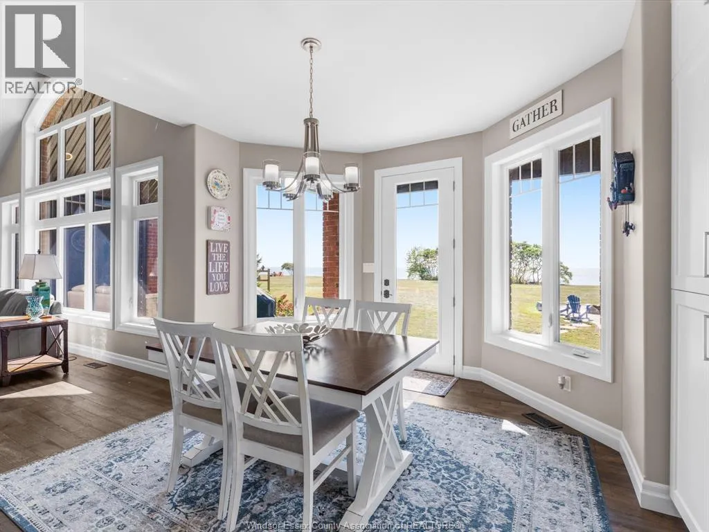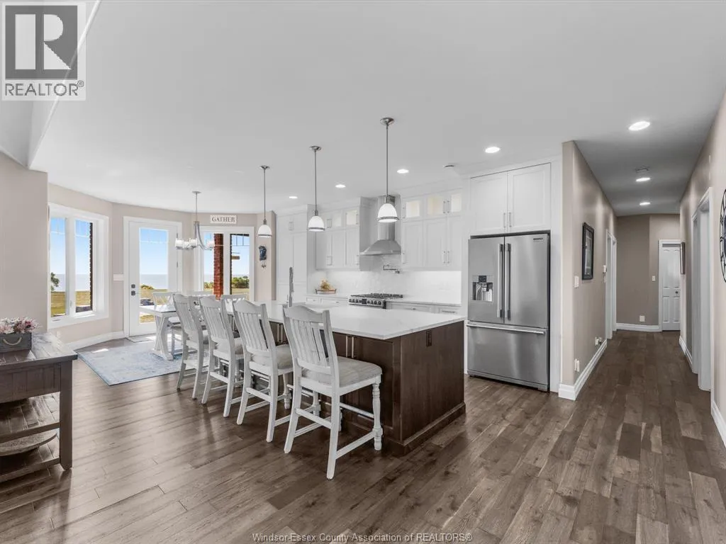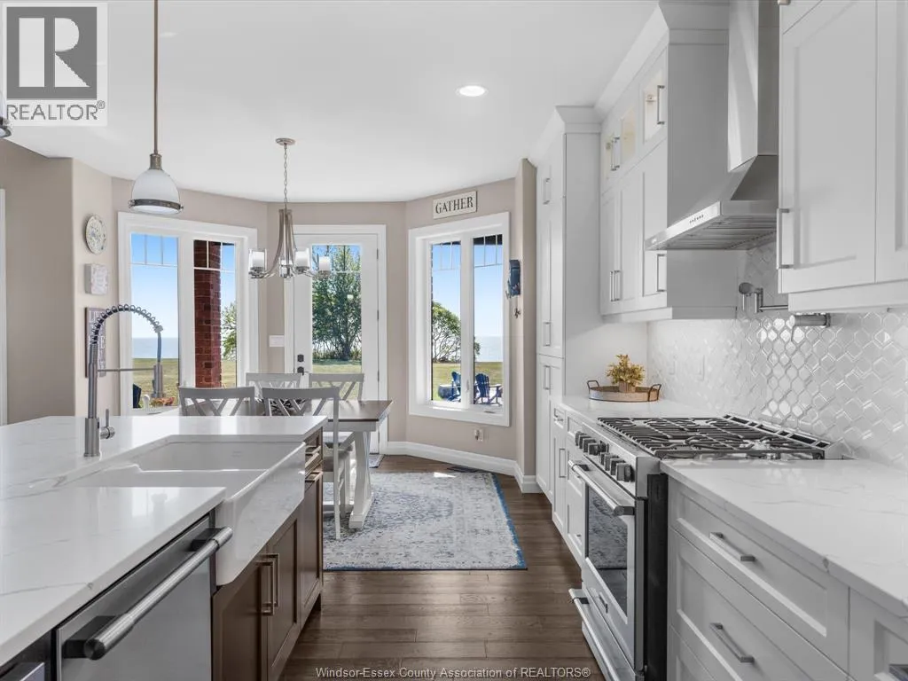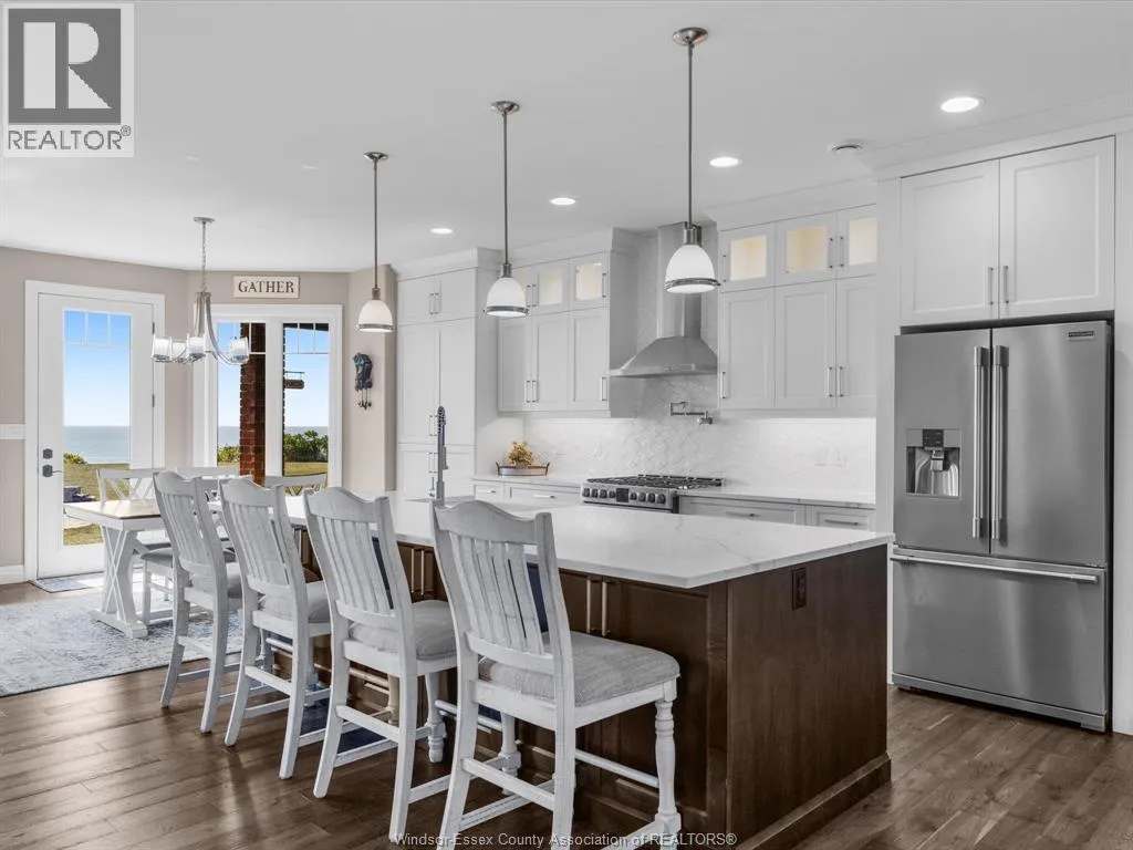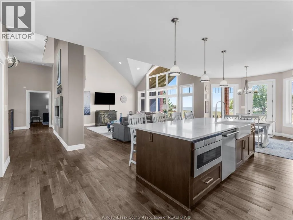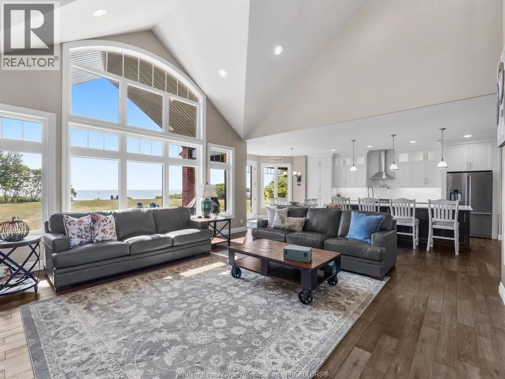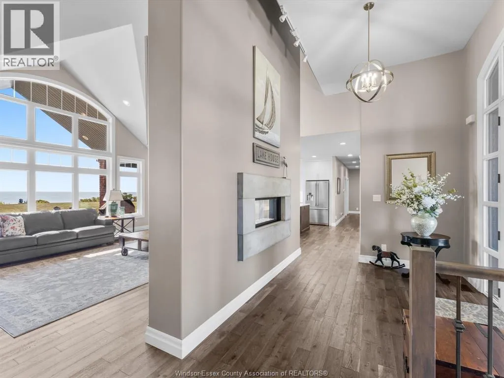 Built in 2014, this breathtaking estate offers unobstructed views of Lake Erie, blending timeless craftsmanship with modern design. A dramatic foyer with a see-through fireplace, soaring ceilings, and gleaming floors sets the tone as you step inside. The open-concept layout features 3 spacious bedrooms, 2 bathrooms, and a private study. A chefâs dream, the gourmet kitchen boasts a generous island and abundant cabinetry, flowing seamlessly into the airy family roomâthe true heart of the home and ideal for gatherings. The luxurious primary suite includes a walk-in closet and spa-inspired ensuite, while each bedroom is enhanced with sliding doors that open to captivating water views. The lower level presents a versatile open space, ready to be customized to your lifestyle. A heated garage adds comfort and practicality year-round, ideal for both daily living and lakefront adventures. Outdoors, this property is designed for both relaxation and entertaining. An expansive covered porch with electronic screens extends your living space in every season, while a newly built fire pit offers the perfect spot to gather with family and friends. From morning coffee to unforgettable sunsets, every moment is elevated by the stunning lakefront backdrop (id:27476)