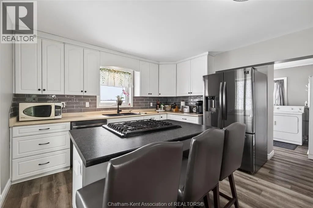 Talbot Trail/#3 Highway to Port Road. Looking for peace, minimal neighbours, and a quiet country place that still keeps you close to the water? This one delivers. Amazing setup with a dream 35â x 90â shop/garage clearance height of 10' featuring a natural-gas heated workshop side, new overhead garage doors, and a storage shed, plus plenty of room for the truck, boat, toys, tools, and real projects. Set on approximately 1+ acre, itâs peaceful and private while still being just 9 minutes to Merlin and 17 minutes to Tilbury, plus only a few minutes to Lake Erie and an easy trip to Mitchellâs Bayâperfect if you like to spend summer days on the water. Inside, enjoy an updated kitchen with island, open concept layout, bright living space, and 3 bedrooms, including a main floor bedroom for convenience. Paved road, municipal water, natural gasâcountry living with the right utilities. (id:27476)