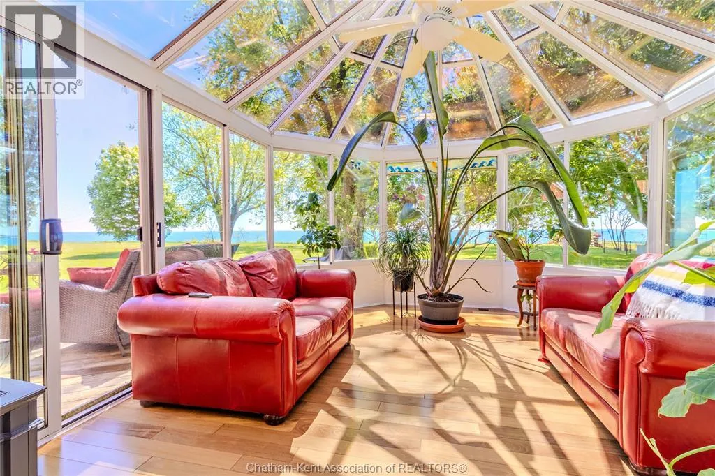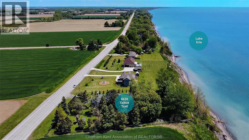 FOLLOW BLOOMFIELD ROAD, EITHER FROM CHATHAM OR 401, GO SOUTH TO TALBOT TRAIL, TURN RIGHT, GO TO #6630 ON LAKESIDE. Step into history with this one-of-a-kind, beautifully converted schoolhouse now serving as a warm and inviting 3-bedroom, 1-bath home. Nestled on 1.7 acres with stunning lake views, this property offers a rare blend of timeless character and thoughtful updates. Take a glass of wine and relax with a view of Lake Erie or sit on your deck and BBQ while enjoying the scenery. Soaring high ceilings and original stained glass windows echo the buildingâs storied past, while modern touches like granite countertops, gleaming hardwood floors, and a newer furnace ensure comfortable living. The spacious kitchen is perfect for entertaining, and the 4 season, serene solarium provides a peaceful space to relax and soak in the natural light. Enjoy morning coffee or evening sunsets with lake views, and take advantage of the attached 2-car garage for convenient parking and storage. Whether you're drawn to the architectural charm, the tranquil setting, or the unique opportunity to own a piece of history, this home delivers. This is more than a houseâitâs a conversation piece, a sanctuary, and a truly special place to call home. Perfect for: Artists, history lovers, retirees, nature enthusiasts, or anyone seeking a distinctive home with character and comfort. (id:27476)