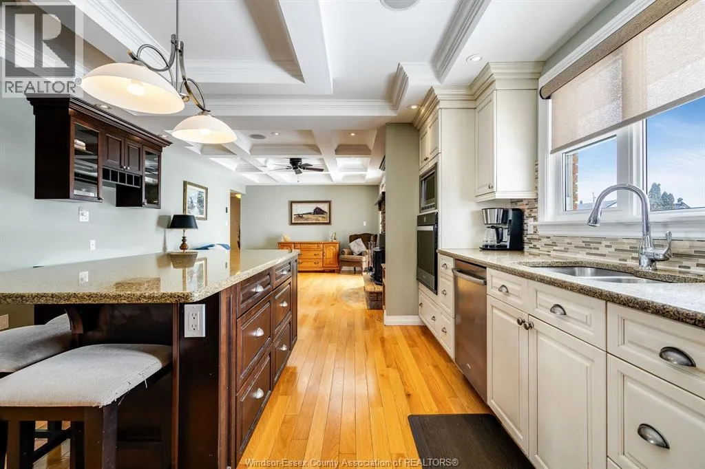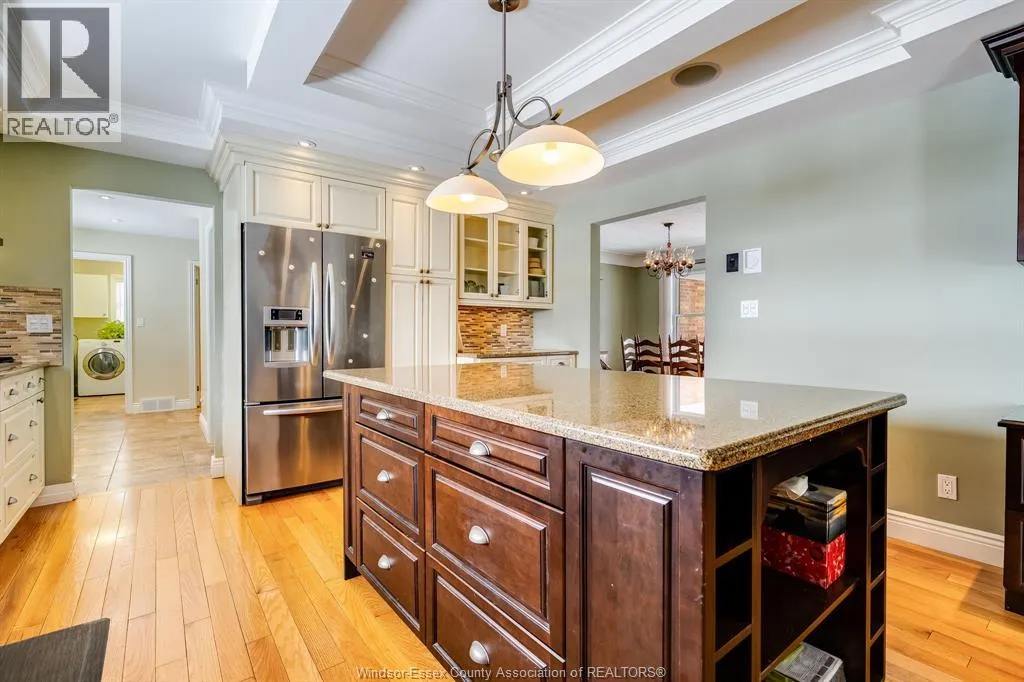 Welcome to a distinguished brick ranch that effortlessly blends elegance, comfort, and thoughtful design. Perfectly positioned on the outskirts of town with no rear neighbours, this exceptional residence offers rare privacy and a serene backdrop for everyday living. A charming covered front porch sets the tone, inviting you into a gracious foyer where gleaming hardwood floors extend throughout the main level. The interior showcases a beautifully balanced layout. At the heart of the home, a custom chefâs kitchen makes a striking impression with rich stone countertops, an expansive centre island, and a walk-in pantry. Seamlessly connected to the formal dining room, elegant living room, and a warm family room anchored by a fireplace, the space invites both grand and intimate gatherings. Three generously sized bedrooms and two exquisitely renovated bathrooms offer comfort, while main floor laundry enhances daily convenience. Outdoors, the private backyard features a substantial cement patio, creating an ideal setting for family enjoyment. Designed with accessibility in mind, the home offers wide hallways, a garage lift, and a stair lift providing easy access to the fully finished basement. The lower level extends the living space with a spacious family room and abundant storage. Recent upgrades, including a steel roof, updated windows, furnace and central vac, ensure peace of mind and modern efficiency. An expansive cement driveway accommodates up to eight vehicles in addition to the attached two-car garage, providing exceptional practicality without compromising curb appeal. This is a rare opportunity to own a meticulously maintained, luxury ranch that offers privacy, accessibility, and timeless appeal in one remarkable package. (id:27476)