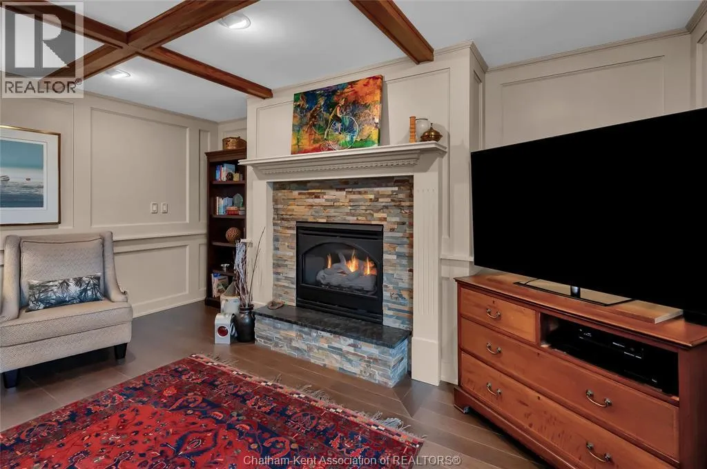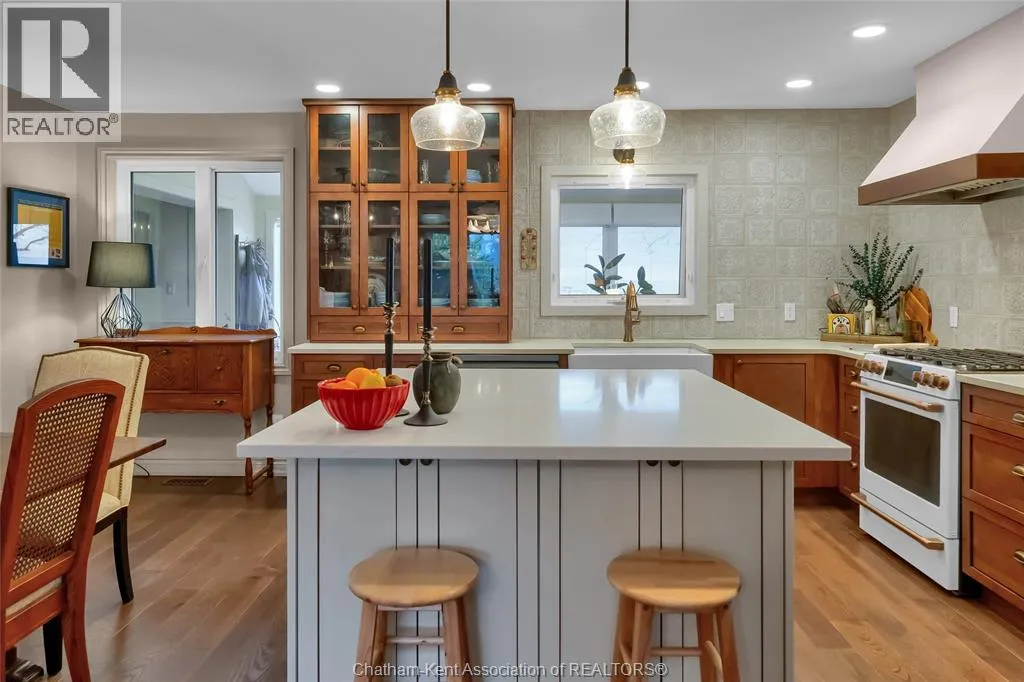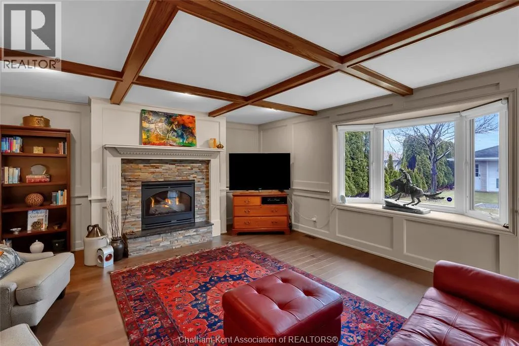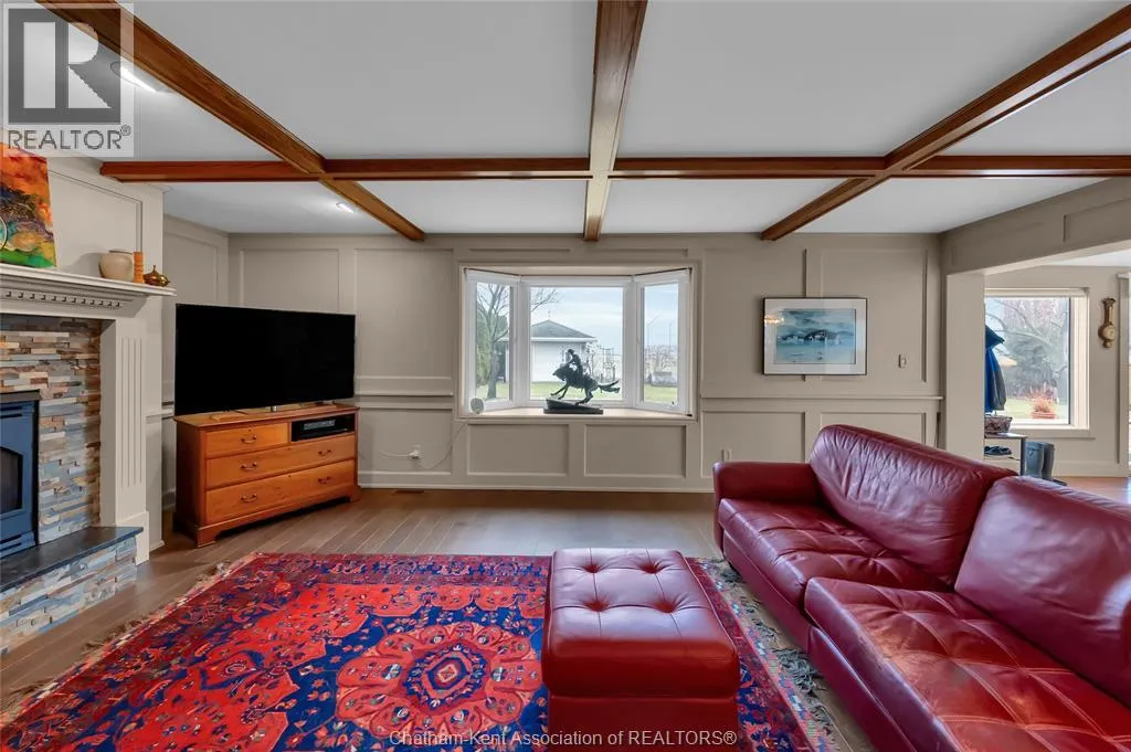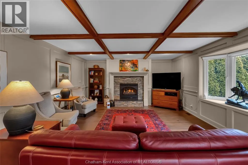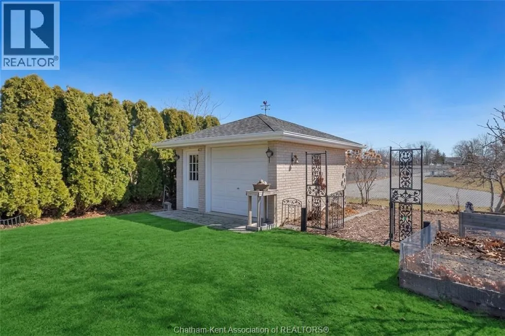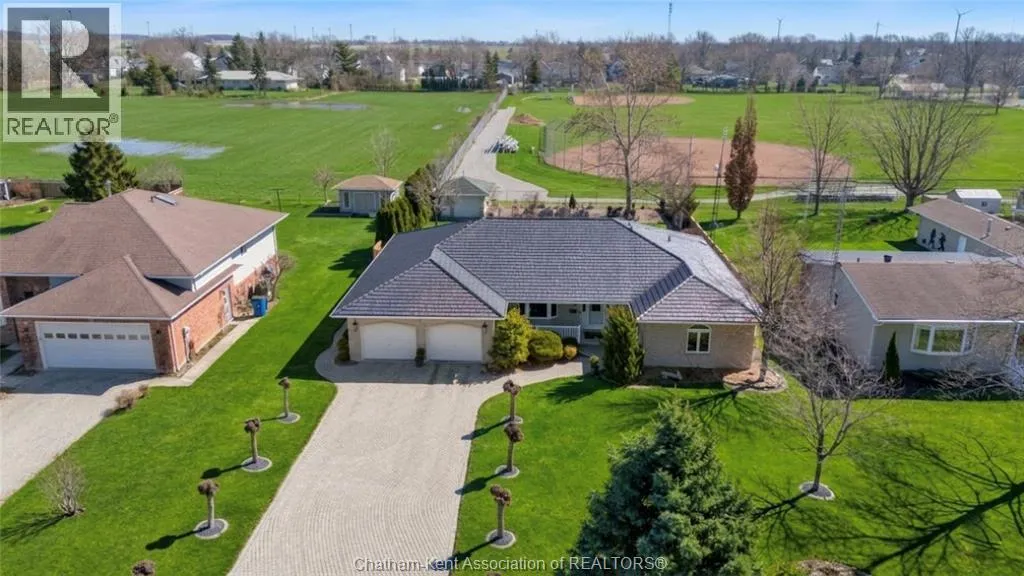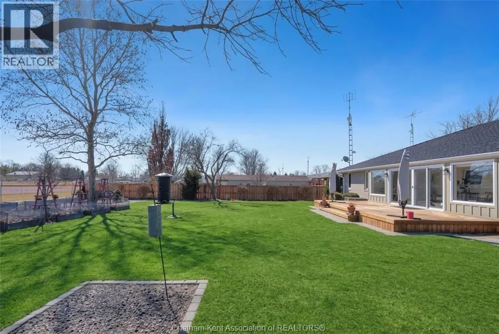 Erie Street North (Merlin Road) to Campbell Street Nestled on a quiet dead-end street and backing onto an expansive park, this renovated 2500 sf ranch is a masterpiece of craftsmanship. With great attention to detail, this 3 bedroom 3 bathroom residence showcases timeless designer finishes installed with professional precision. The heart of the home is a chefâs dream; a central kitchen featuring Thomasville custom cabinetry, large centre island, quartz countertops, full height Italian tile backsplash, walk-in pantry, and premium wifi compatible appliances. The kitchen is open to an intimate dining area which flows seamlessly into the spacious front living room. Relax and unwind in the warm embrace of the stunning family room with a coffered ceiling and beautiful floor-to-ceiling wainscotting, while a stone-faced gas fireplace sets the perfect vibe. Retreat to the primary bedroom where a brand new ensuite offers a spa-like experience with double vanity, burnished gold fixtures, and an oversized custom shower. Prepare to seize the day with morning coffee in the large four season sunroom bathed in natural light. Entertain guests or simply enjoy some fresh air on the new 26 ft x 12 ft deck which overlooks the manicured yard with perennial gardens, vegetable boxes, fruit trees, and an impressive brick workshop. A mudroom with a walk-in coat/shoe closet and full bathroom off the oversized 2 car garage provides a level of convenience that you will come to love. With a Generac whole-home generator, Level 2 EV charger, and a digital management/security system, this home is as smart as it is beautiful. Located in a quiet community-spirited small town with full municipal services, excellent public school, and a lovely public park with pavilion and splash pad. A full list of features and upgrades is available upon request, but this home must be seen in person to be fully appreciated. Inquire today! (id:27476)