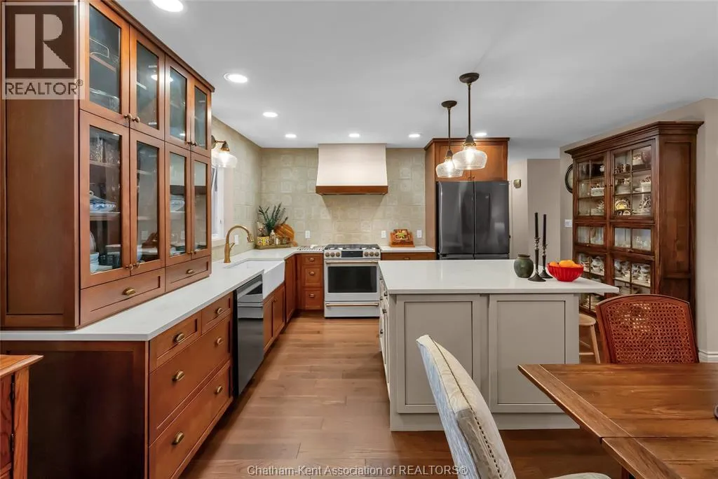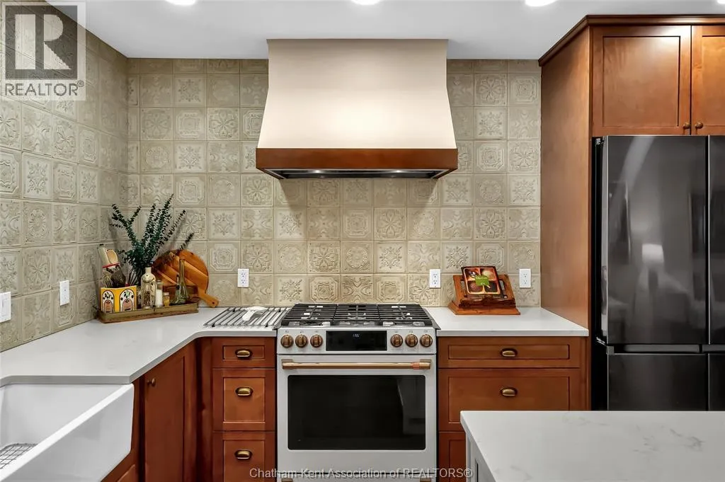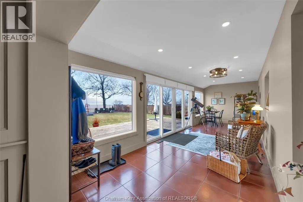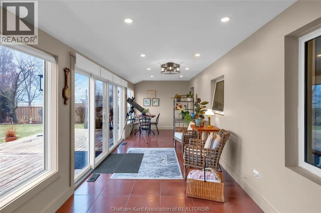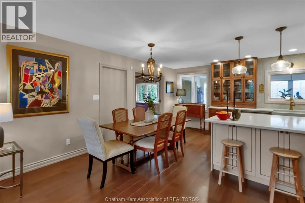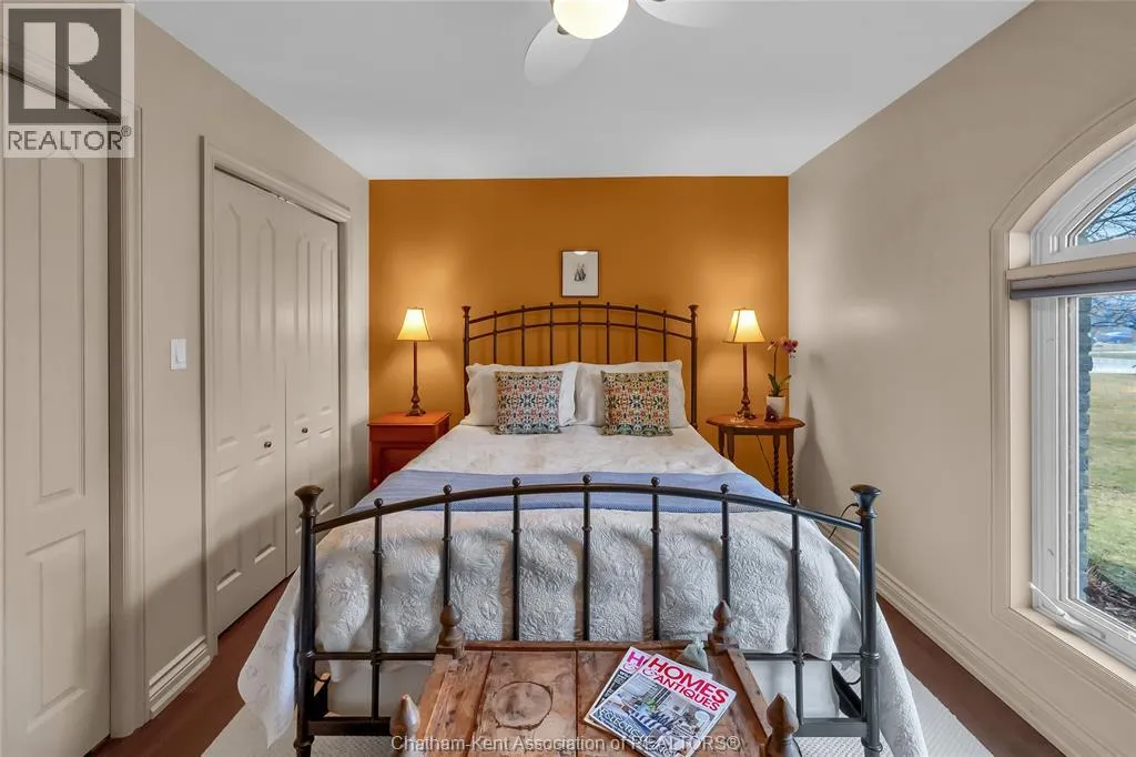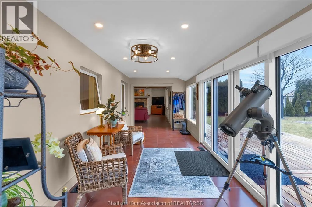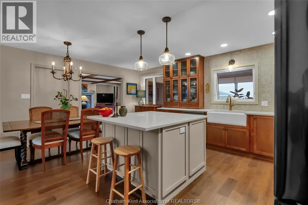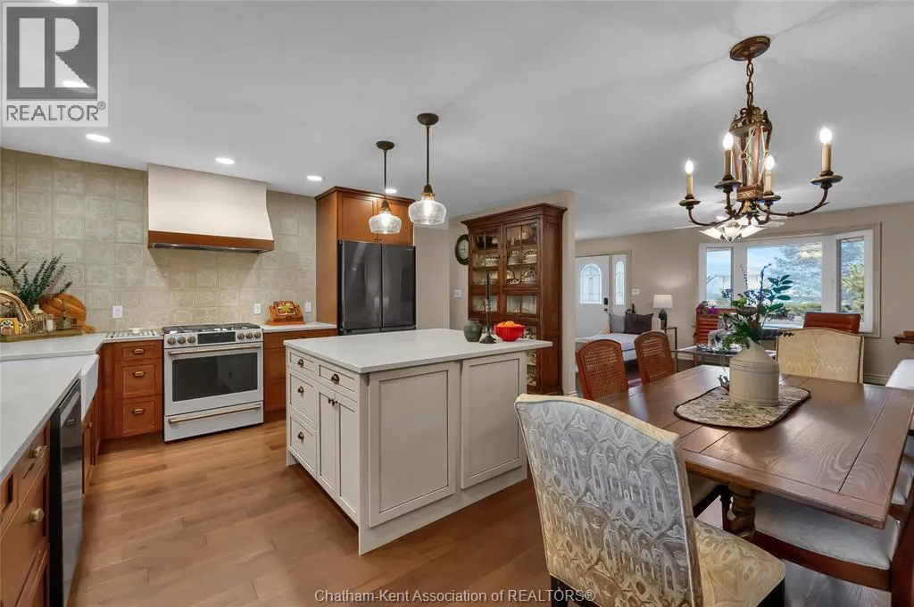 Erie Street North (Merlin Road) to Campbell Street Nestled on a quiet dead-end street and backing onto an expansive park, this renovated 2500 sf ranch is a masterpiece of craftsmanship. With great attention to detail, this 3 bedroom 3 bathroom residence showcases timeless designer finishes installed with professional precision. The heart of the home is a chefâs dream; a central kitchen featuring Thomasville custom cabinetry, large centre island, quartz countertops, full height Italian tile backsplash, walk-in pantry, and premium wifi compatible appliances. The kitchen is open to an intimate dining area which flows seamlessly into the spacious front living room. Relax and unwind in the warm embrace of the stunning family room with a coffered ceiling and beautiful floor-to-ceiling wainscotting, while a stone-faced gas fireplace sets the perfect vibe. Retreat to the primary bedroom where a brand new ensuite offers a spa-like experience with double vanity, burnished gold fixtures, and an oversized custom shower. Prepare to seize the day with morning coffee in the large four season sunroom bathed in natural light. Entertain guests or simply enjoy some fresh air on the new 26 ft x 12 ft deck which overlooks the manicured yard with perennial gardens, vegetable boxes, fruit trees, and an impressive brick workshop. A mudroom with a walk-in coat/shoe closet and full bathroom off the oversized 2 car garage provides a level of convenience that you will come to love. With a Generac whole-home generator, Level 2 EV charger, and a digital management/security system, this home is as smart as it is beautiful. Located in a quiet community-spirited small town with full municipal services, excellent public school, and a lovely public park with pavilion and splash pad. A full list of features and upgrades is available upon request, but this home must be seen in person to be fully appreciated. Inquire today! (id:27476)