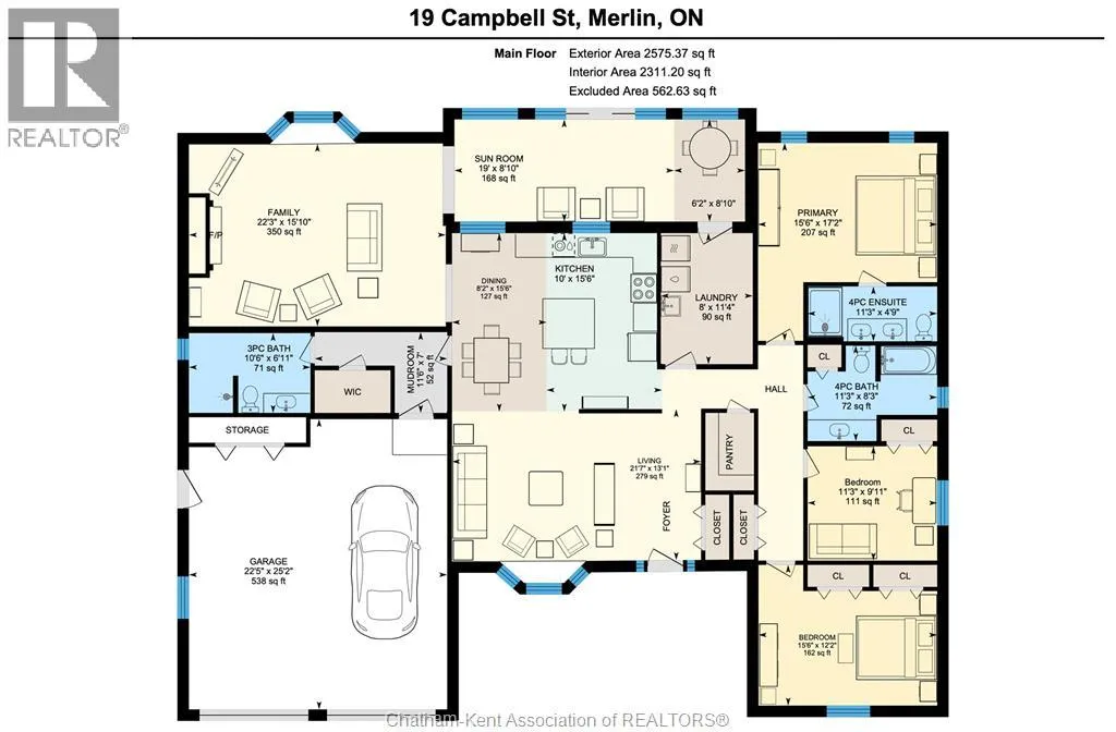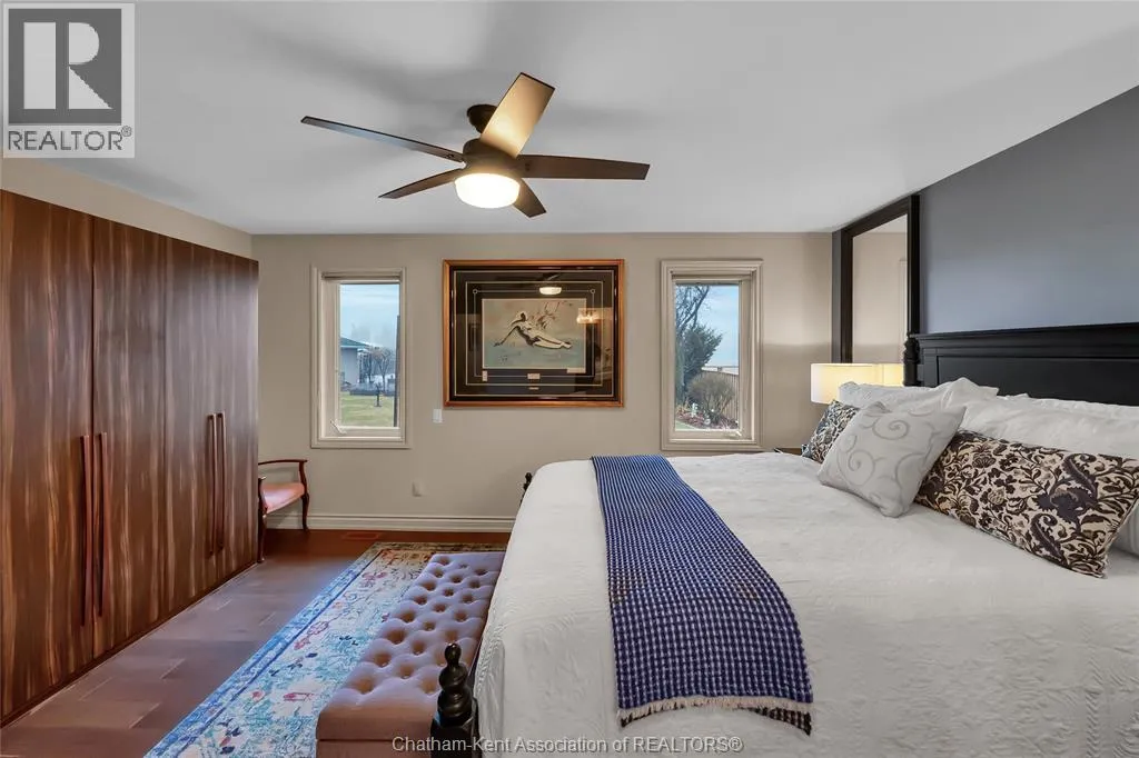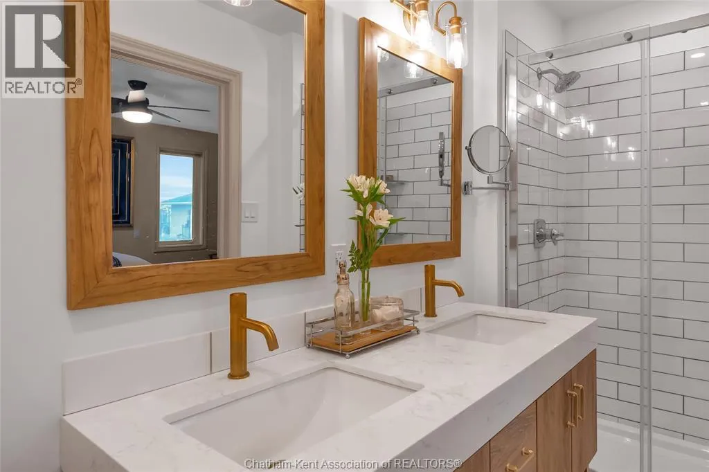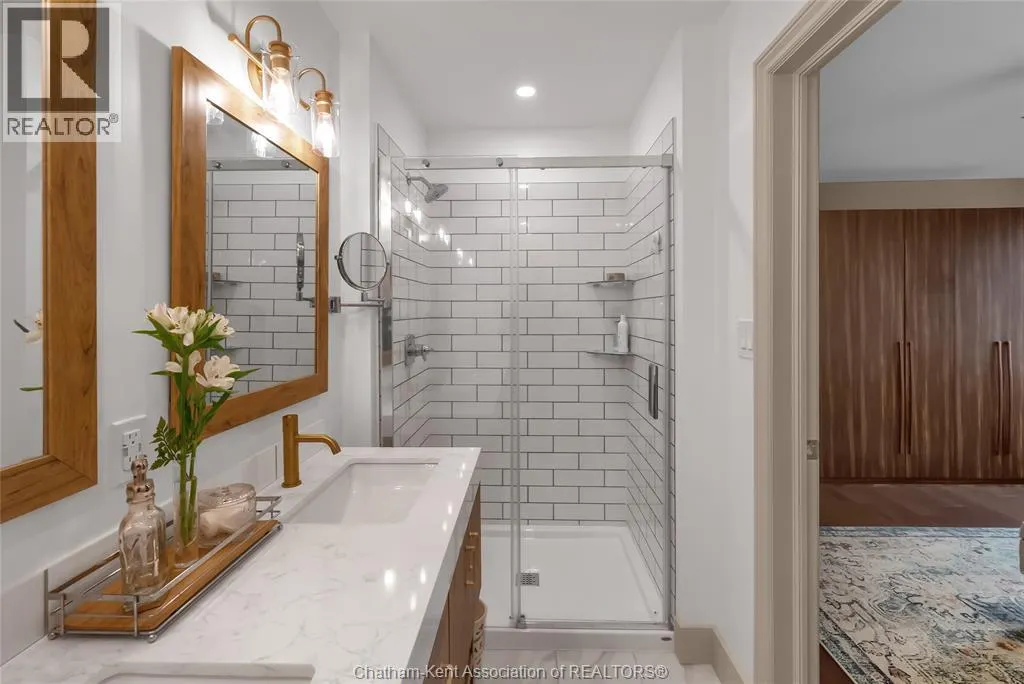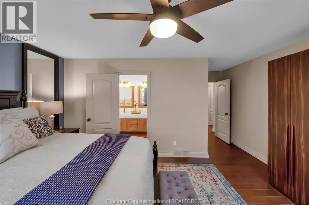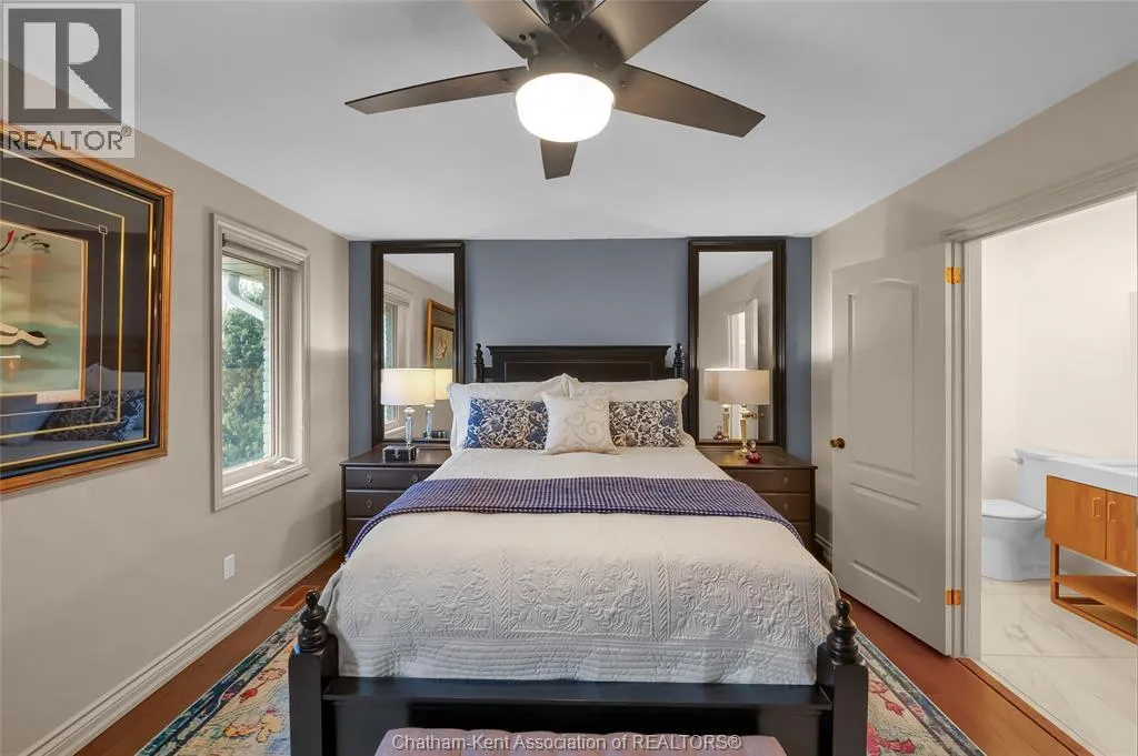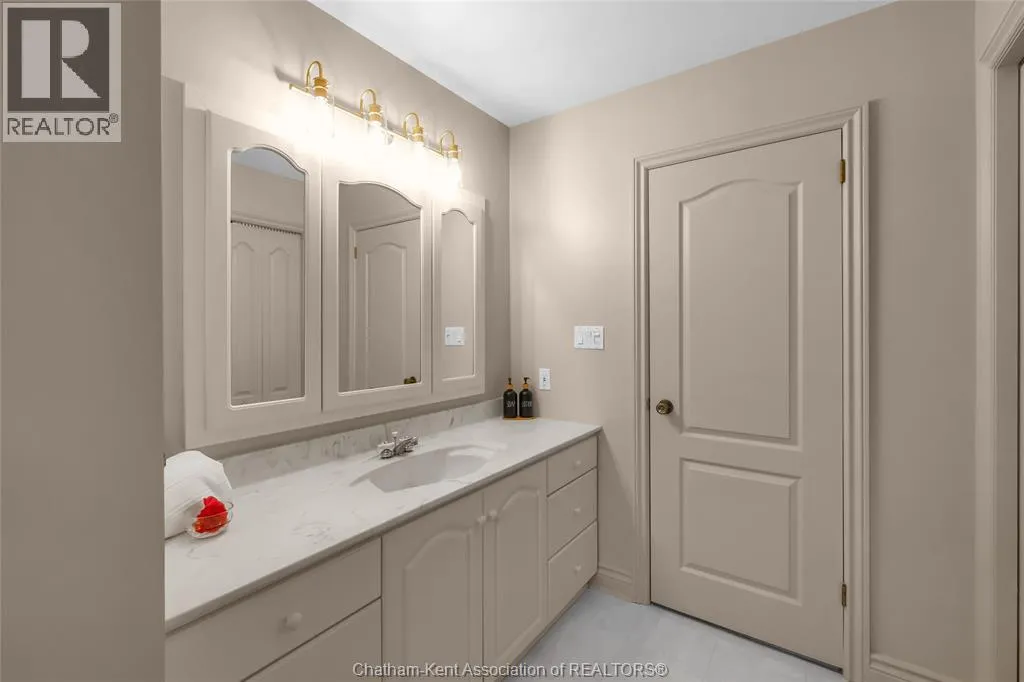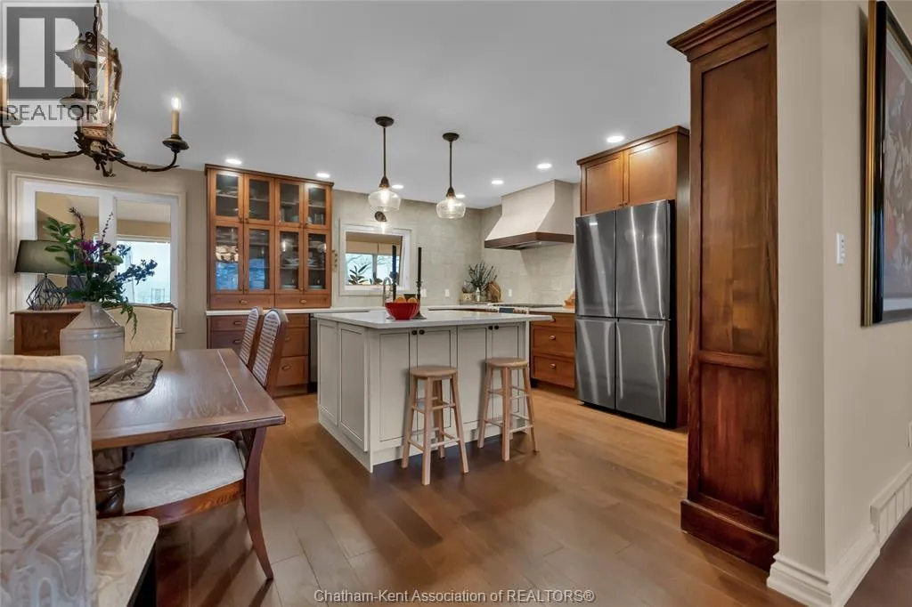 Erie Street North (Merlin Road) to Campbell Street Nestled on a quiet dead-end street and backing onto an expansive park, this renovated 2500 sf ranch is a masterpiece of craftsmanship. With great attention to detail, this 3 bedroom 3 bathroom residence showcases timeless designer finishes installed with professional precision. The heart of the home is a chefâs dream; a central kitchen featuring Thomasville custom cabinetry, large centre island, quartz countertops, full height Italian tile backsplash, walk-in pantry, and premium wifi compatible appliances. The kitchen is open to an intimate dining area which flows seamlessly into the spacious front living room. Relax and unwind in the warm embrace of the stunning family room with a coffered ceiling and beautiful floor-to-ceiling wainscotting, while a stone-faced gas fireplace sets the perfect vibe. Retreat to the primary bedroom where a brand new ensuite offers a spa-like experience with double vanity, burnished gold fixtures, and an oversized custom shower. Prepare to seize the day with morning coffee in the large four season sunroom bathed in natural light. Entertain guests or simply enjoy some fresh air on the new 26 ft x 12 ft deck which overlooks the manicured yard with perennial gardens, vegetable boxes, fruit trees, and an impressive brick workshop. A mudroom with a walk-in coat/shoe closet and full bathroom off the oversized 2 car garage provides a level of convenience that you will come to love. With a Generac whole-home generator, Level 2 EV charger, and a digital management/security system, this home is as smart as it is beautiful. Located in a quiet community-spirited small town with full municipal services, excellent public school, and a lovely public park with pavilion and splash pad. A full list of features and upgrades is available upon request, but this home must be seen in person to be fully appreciated. Inquire today! (id:27476)