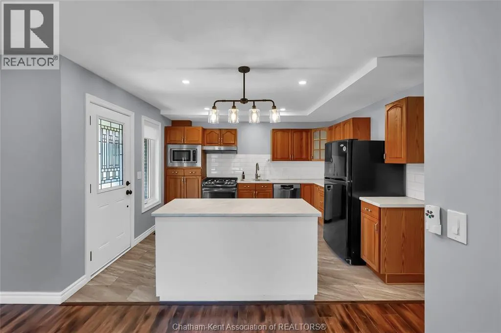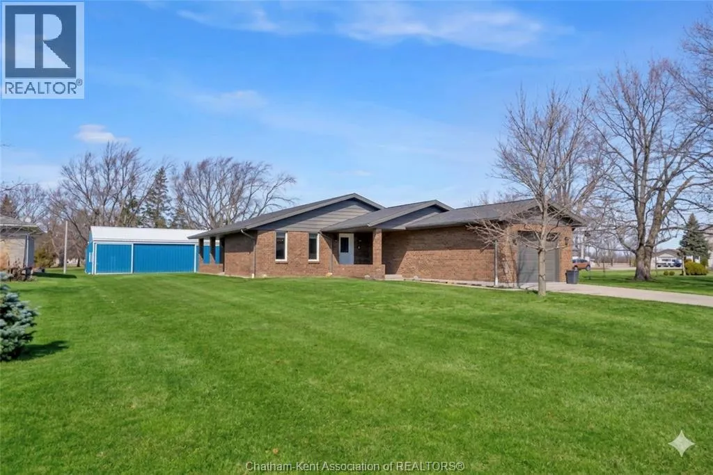 Erie St N (Merlin Road) to Circle Drive Welcome to 1 Circle Drive, where small-town charm meets big-city amenities. This meticulously maintained 1,500 sq. ft. brick bungalow offers the perfect ""Story of Twos"": 2 bedrooms, 2 full baths, 2 inviting living areas, 2 garages, and 2 peaceful covered porches to enjoy your morning coffee. Inside, the home is anchored by an open concept kitchen/living/dining room with rich wood cabinetry, island, updated counters and a handsome tile backsplash. Youâll enjoy features such as a gas fireplace in the family room, a central laundry room with a built-in pantry, large lighted bedroom closets, and beautifully updated bathrooms. Major updates include furnace and AC 2014, roof/soffit/eaves 2017, windows 2022 and a 50 gallon owned water heater 2022. Outside, your nearly half-acre oasis provides the privacy you crave with plenty of room between neighbours. The showstopper? A 40x40 detached shop providing endless possibilities for your hobbies and storage needs. With full municipal services and a location on a low-traffic street near an excellent school and park, this isn't just a houseâit's the lifestyle upgrade youâve been waiting for. Call now! (id:27476)