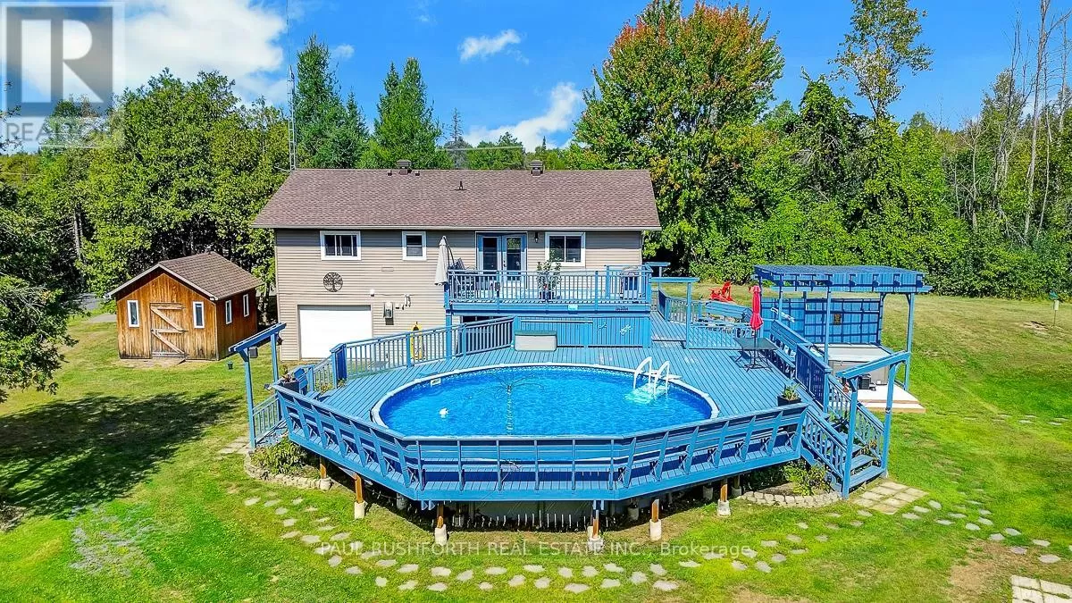 Cross Streets: County rd 15. ** Directions: 416 south to exit 42 Dilworth Rd/Ottawa 13, right on Dilworth Road to Route 5, left on Route 5/Donnelly Road into Merrickville, left on County Road 15 and continue south to County Road 41. Just outside the charming Town of Merrickville, this 2+1 bedroom, 3 bathroom home offers the perfect balance of country privacy and everyday convenience. Set on just under an acre, the property is designed for both relaxation and functionality, with plenty of room indoors and out. The private backyard is an entertainers dream, featuring oversized multi level cedar decks, an above ground pool, hot tub, and space for gardens. For those needing extra room for hobbies or storage, the property delivers: a very large wired detached workshop, a deep garage with inside entry and overhead doors at both the front and back, plus an additional shed. Inside, the home features a bright, expansive kitchen with two pantry closets and newer flooring. The efficiently designed floor plan provides easy flow through the living spaces. The lower level is fully finished, complete with a family room, bedroom, full bath with stand up shower, and walk out access to the yard. With the option to convert back to an in law suite, the home offers flexibility to suit your needs. Located less than 25 minutes from Brockville, Smiths Falls, and Kemptville, commuting is simple while still enjoying the quiet of country living. This property presents a wonderful opportunity to make a home your own, in a location that offers lifestyle, space, and convenience. Feature Sheet Attached. (id:27476)