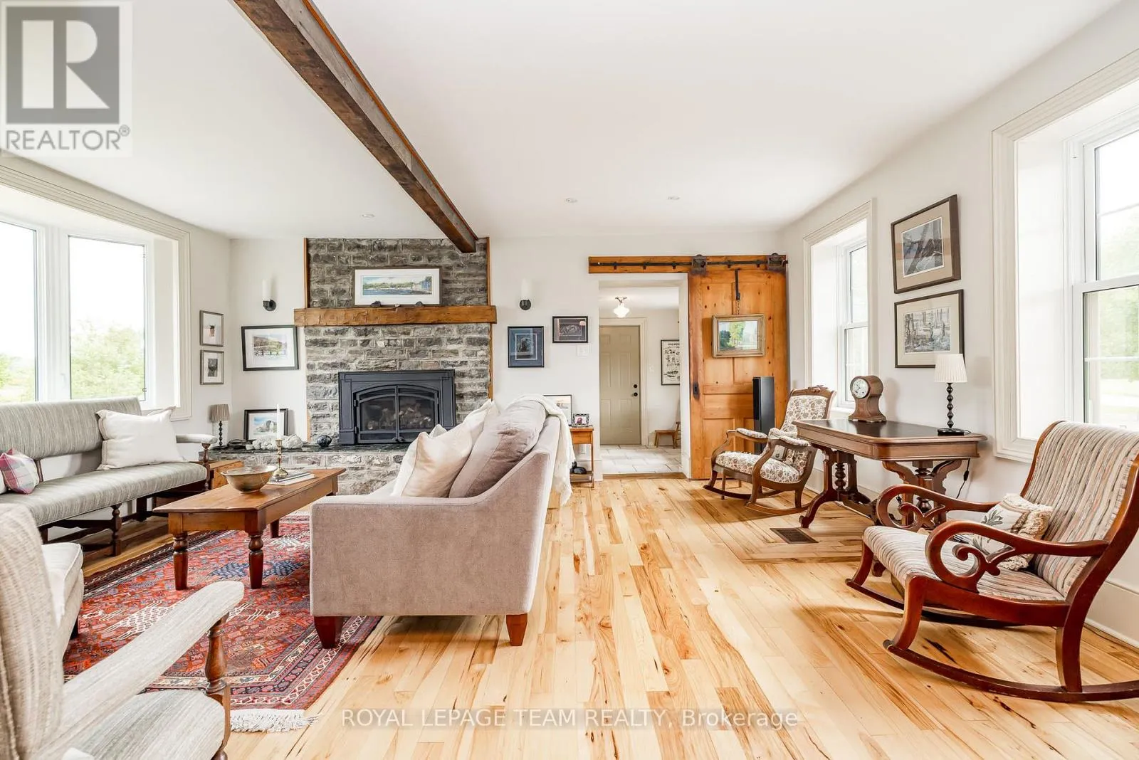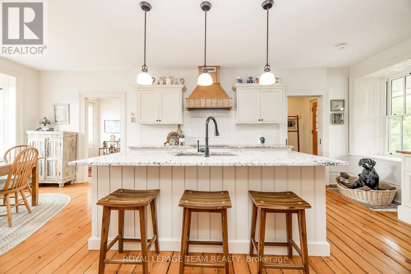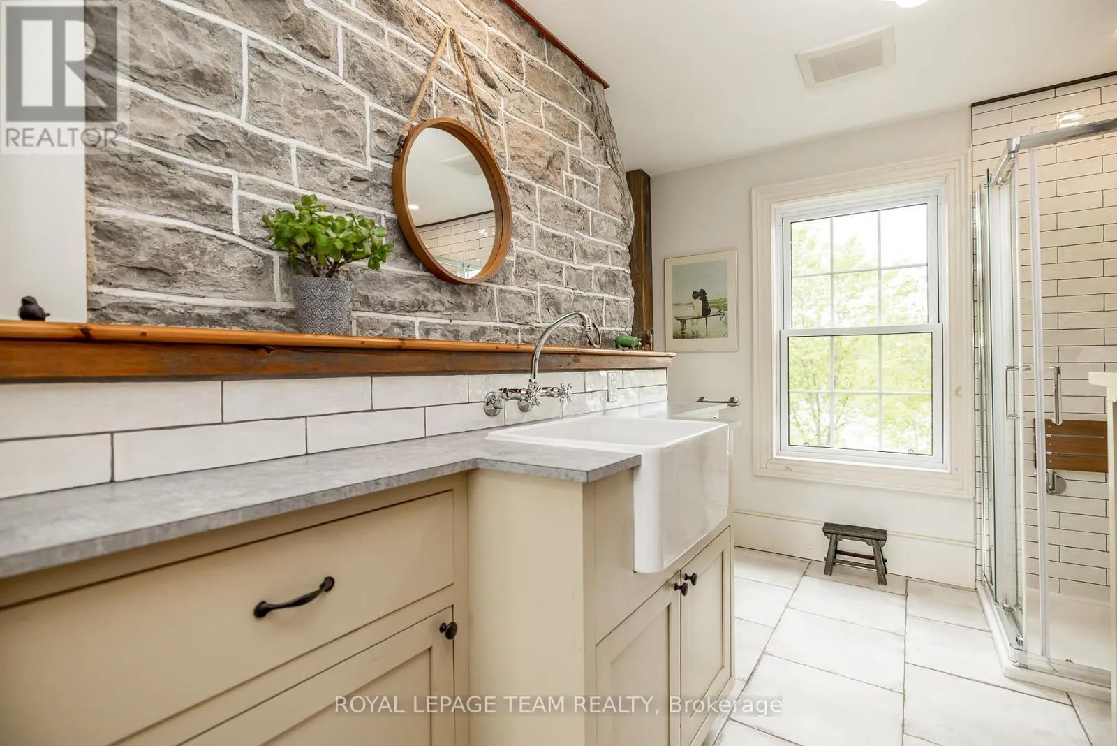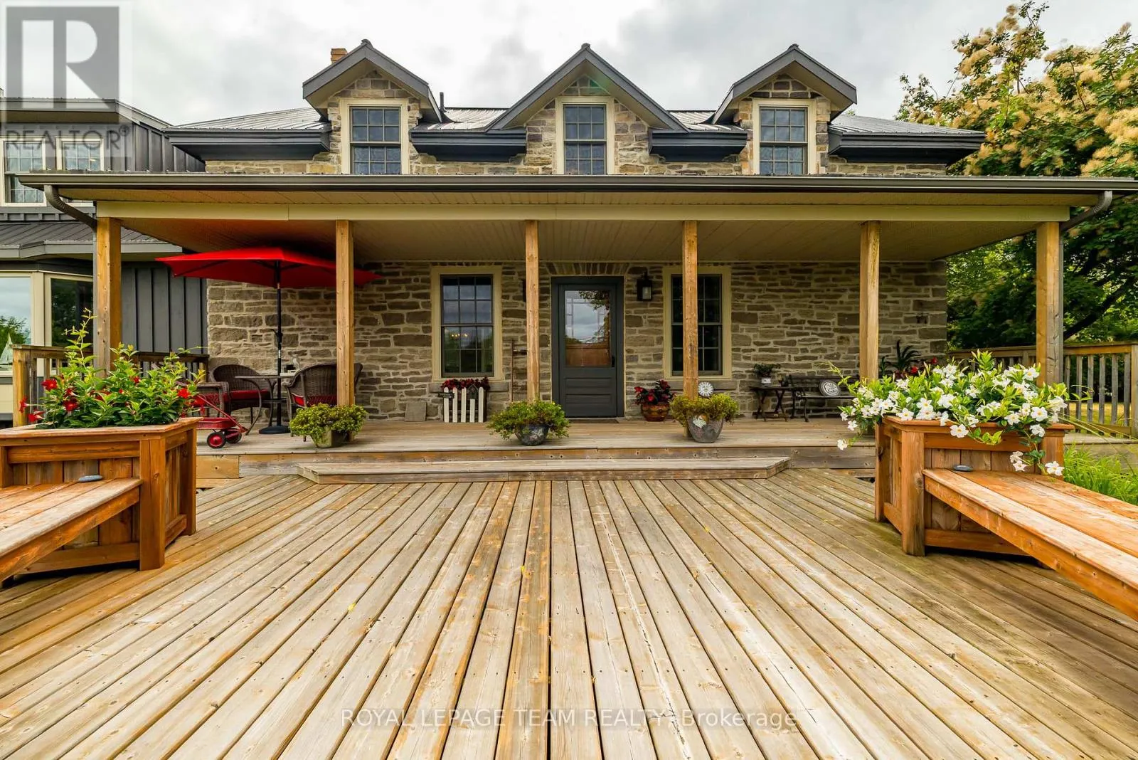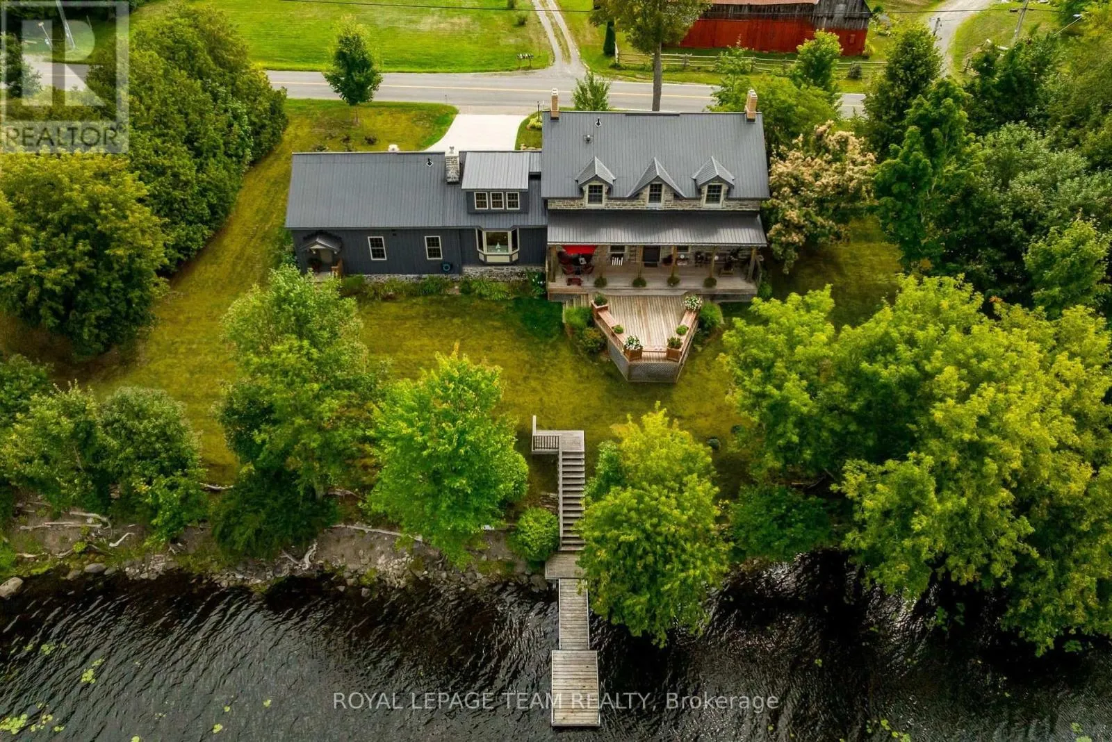 Cross Streets: Hwy 43. ** Directions: From Ottawa 416 South to Dilworth, west on Dilworth to stop sign and turn left/follow and veer right onto Donnelly Dr. Follow to Burritts Rapids turn left through village & cross swing bridge to turn rt on County Rd 23. Property on the right. Welcome to Spillway Farm, circa 1835, a stunning waterfront stone home w/ exquisite custom renovations by Hubbard & Co! Located along the Rideau System, UNESCO World Heritage site, this breathtaking waterfront home offers a rare blend of preservation of historic allure w/contemporary convenience & design. Featuring 4 bedrooms + den, 3 full bathrooms & many elegant rooms for entertaining, this home is filled with natural light accentuating its inherent warmth & rich heritage. The custom kitchen w/waterfront view & exposed stone wall showcases luxury cabinetry, granite countertops, an island w/seating, refurbished wood floors & a pantry w/artistic coffee bar! The kitchen leads seamlessly to the elegant dining room w/deep window sills, wide baseboards & refurbished flooring, or to the majestic living room w/stone fireplace, wood hewn mantle & exceptional waterfront views! A side entrance w/inside entry to a garage w/additional loft storage space is conveniently adjacent a full bath/laundry room w/exposed stone wall, farmhouse drop sink & ample cupboard/counter space for laundry area. An office/den off the rear entry deck offers water views, deep window sills & refurbished original floors. The spacious second level showcases 4 bedrooms, one presently utilized as an office, a main bath w/sliding wood door, ample closet & storage space, deep window sills & refurbished floors. The primary bedroom leads to a gorgeous 4-piece ensuite bathroom w/penny round flooring, tiled shower, & a claw tub w/waterfront view! Landscaped w/stunning perennials, rose bushes, numerous tree varieties & a flag stone entry w/full concrete driveway. Rear tiered deck & porch offer many spaces for entertaining; aesthetic stairs lead to expansive dock for unparalleled sunset views! Spillway Farm is a paradise where you can watch loons, osprey, blue herons or traverse the spectacular Rideau waterway via boat from your Fendock; this tranquil waterfront oasis in a historic community awaits! (id:27476)