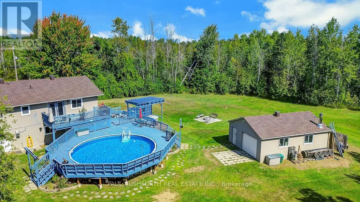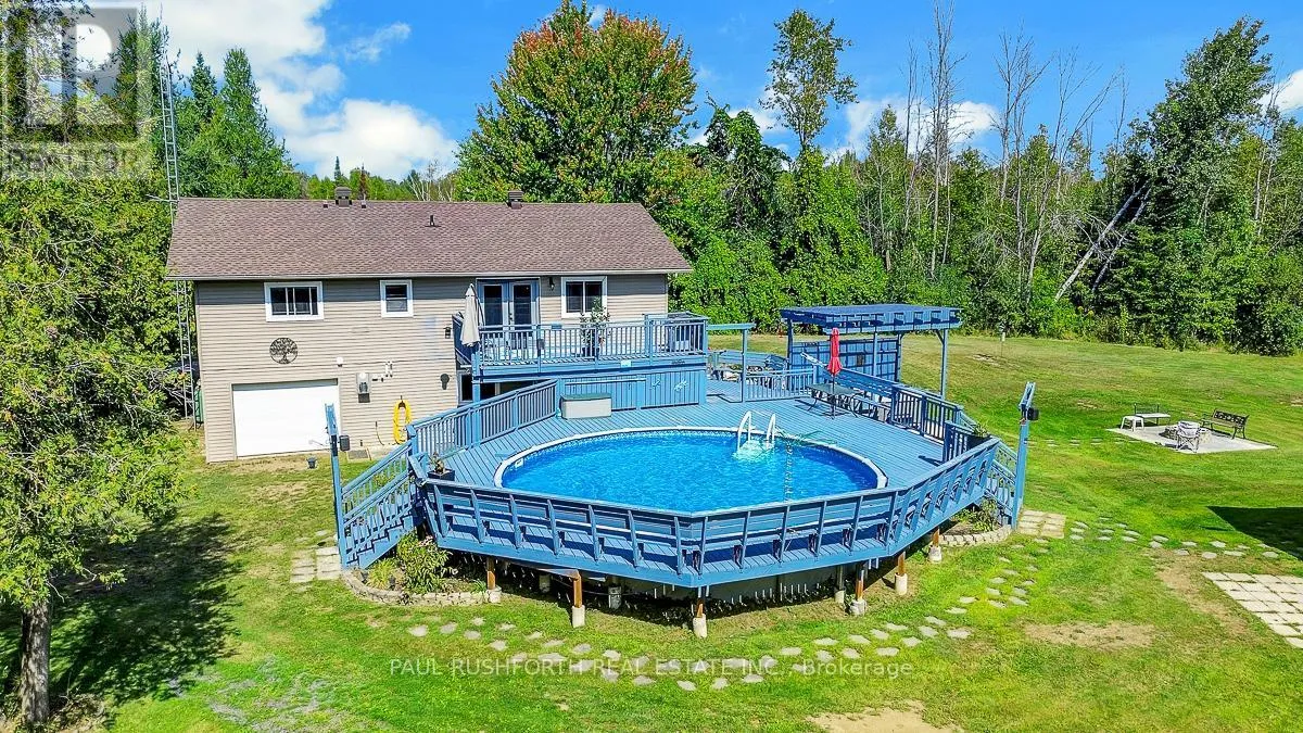 Cross Streets: County rd 15. ** Directions: 416 south to exit 42 Dilworth Rd/Ottawa 13, right on Dilworth Road to Route 5, left on Route 5/Donnelly Road into Merrickville, left on County Road 15 and continue south to County Road 41. Just outside the charming Town of Merrickville, this 2+1 bedroom, 3 bathroom home offers the perfect balance of country privacy and everyday convenience. Set on just under an acre, the property is designed for both relaxation and functionality, with plenty of room indoors and out. The private backyard is an entertainers dream, featuring oversized multi level cedar decks, an above ground pool, hot tub, and space for gardens. For those needing extra room for hobbies or storage, the property delivers: a very large wired detached workshop, a deep garage with inside entry and overhead doors at both the front and back, plus an additional shed. Inside, the home features a bright, expansive kitchen with two pantry closets and newer flooring. The efficiently designed floor plan provides easy flow through the living spaces. The lower level is fully finished, complete with a family room, bedroom, full bath with stand up shower, and walk out access to the yard. With the option to convert back to an in law suite, the home offers flexibility to suit your needs. Located less than 25 minutes from Brockville, Smiths Falls, and Kemptville, commuting is simple while still enjoying the quiet of country living. This property presents a wonderful opportunity to make a home your own, in a location that offers lifestyle, space, and convenience. Feature Sheet Attached. (id:27476)