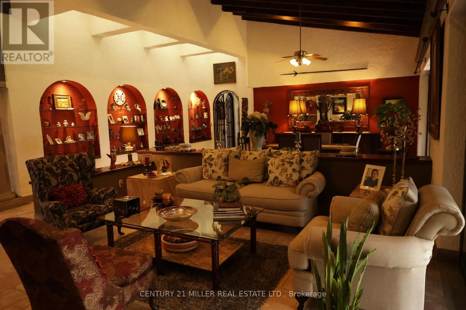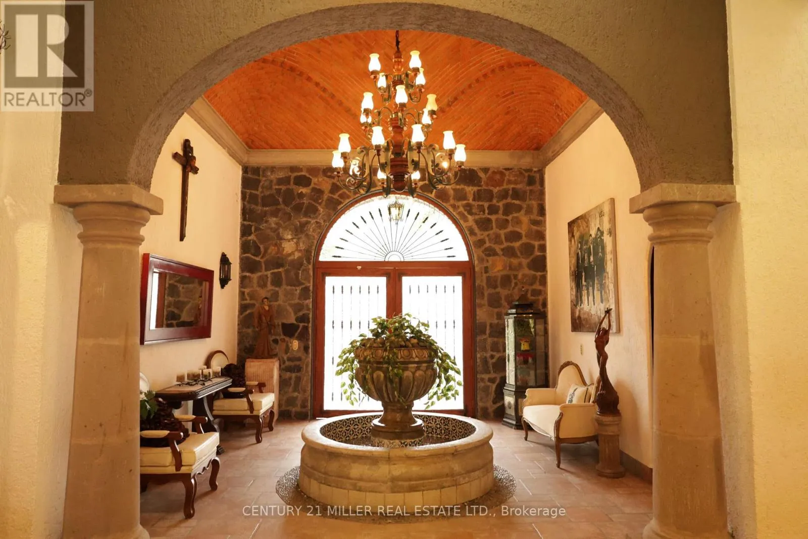 Morelos, Cuernavaca, Jiutepec, Col. San Gaspar. Welcome to Hacienda en la Montaña in the exclusive Club de Golf San Gaspar!Just one hour south of Mexico City, discover the perfect vacation escape or full-time residence only minutes from the City of Eternal Spring, Cuernavaca, famous for its year-round sunny weather, lush landscapes, and vibrant cultural scene the ideal backdrop for this incredible hacienda-style home. Experience timeless Mexican charm in this one-of-a-kind bungalow sitting on an expansive 17,000 sq ft lot and offering over 7,000 sq ft of living space, this home blends traditional elegance with modern comfort, fine craftsmanship, and resort-style amenities. Architectural highlights include Catalan vaulted ceilings, exposed wooden beams, beautiful stonework throughout, and a hand-carved fountain at the main entrance.Offering 4 bedrooms, 6.5 bathrooms, a great room, a formal dining room an office, TV and family rooms, a storage room, and more. the layout is designed for both relaxation and entertaining. The primary bedroom is a private retreat, complete with a walk-in closet, spa-like ensuite, and a serene terrace overlooking the landscaped gardens. The three additional bedrooms each feature their own bathroom and ample closet space. Outdoors, enjoy resort-style living: a sparkling pool, inviting jacuzzi, and breathtaking views of the surrounding mountains and golf course. A massive terrace overlooking the gardens is fully equipped perfect for alfresco dining and entertaining. The property also offers parking for up to 8 vehicles. Nestled within the exclusive San Gaspar gated community, the residence enjoys privacy, security, and direct access to the prestigious San Gaspar Golf Club. Residents of this sought-after enclave appreciate its tranquil atmosphere, manicured grounds, and sweeping views of the valley. Hacienda en la Montaña is more than a house, its a lifestyle of sun, tranquility, and leisure, all within easy reach of Mexico City. (id:27476)