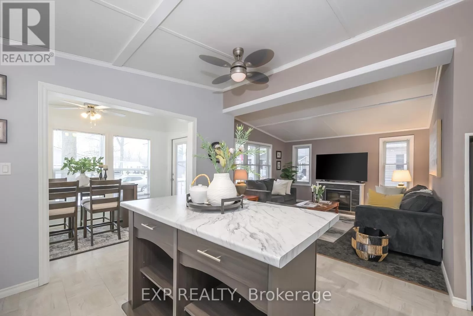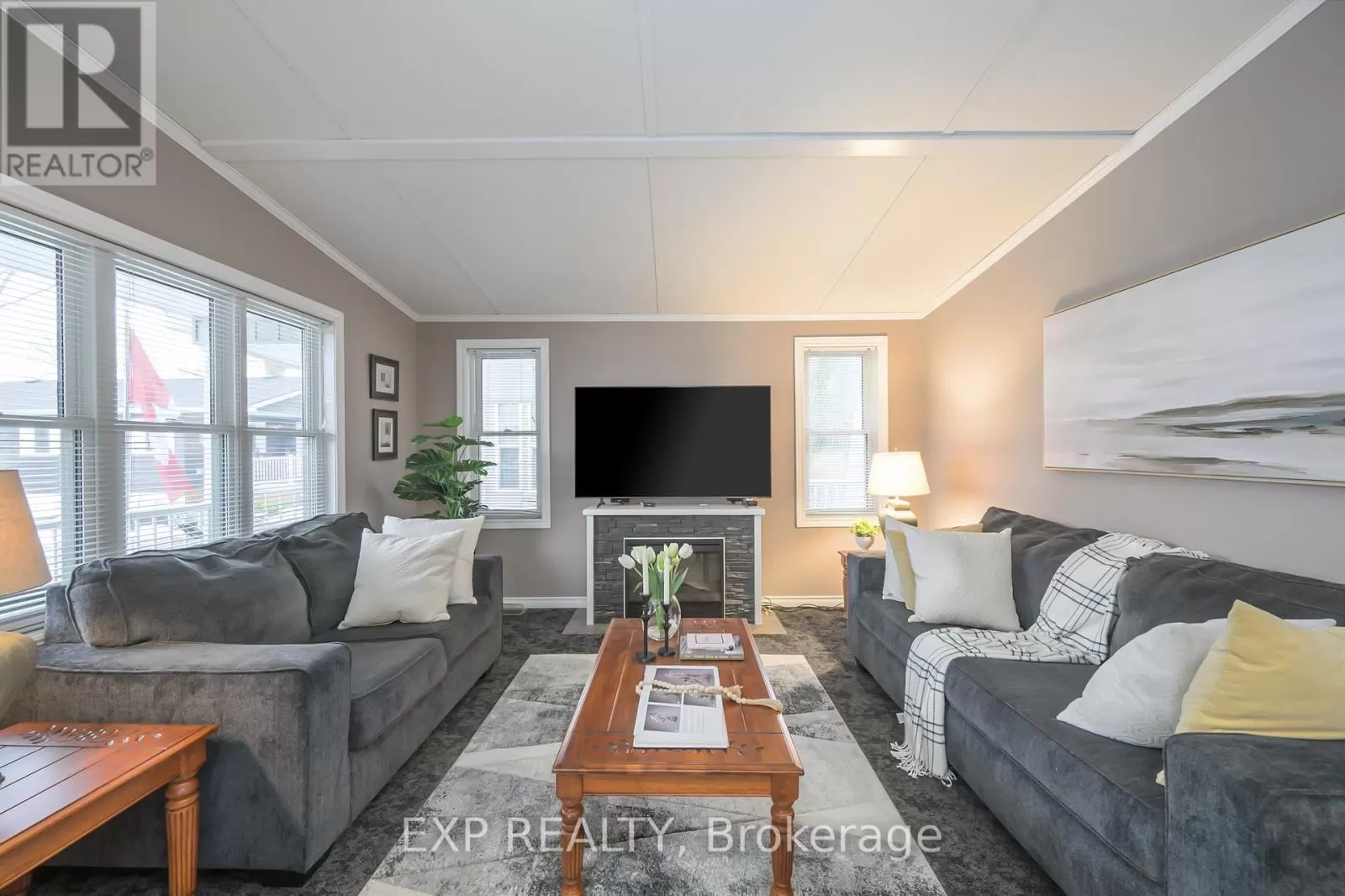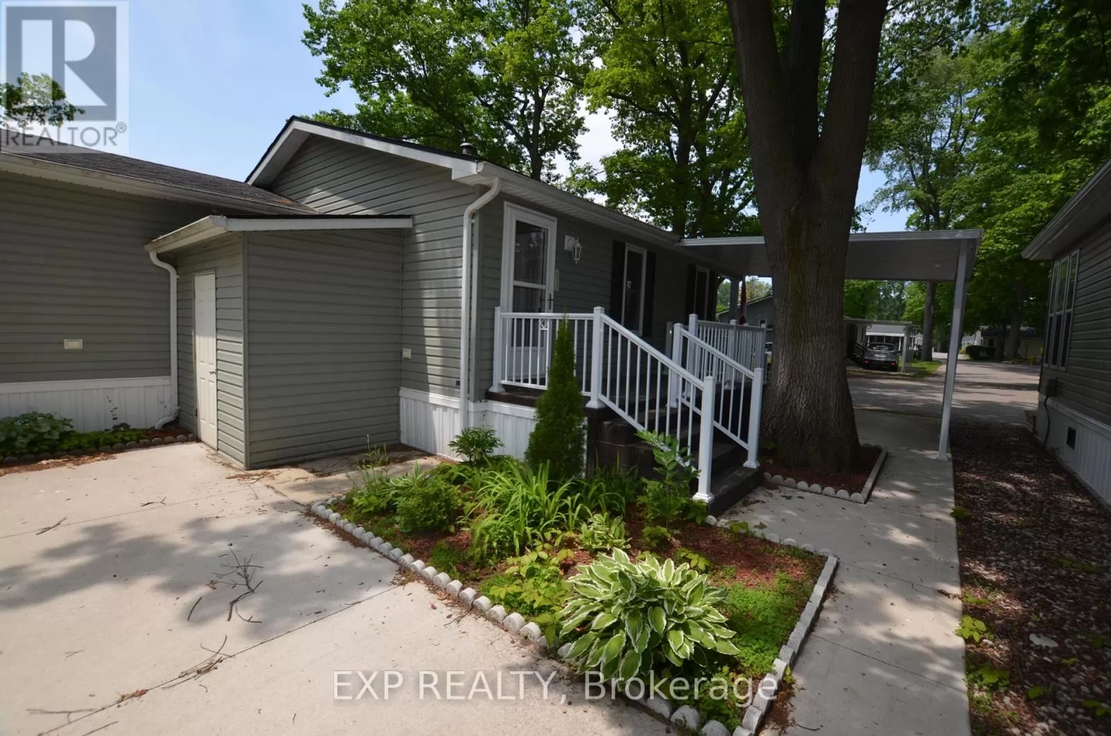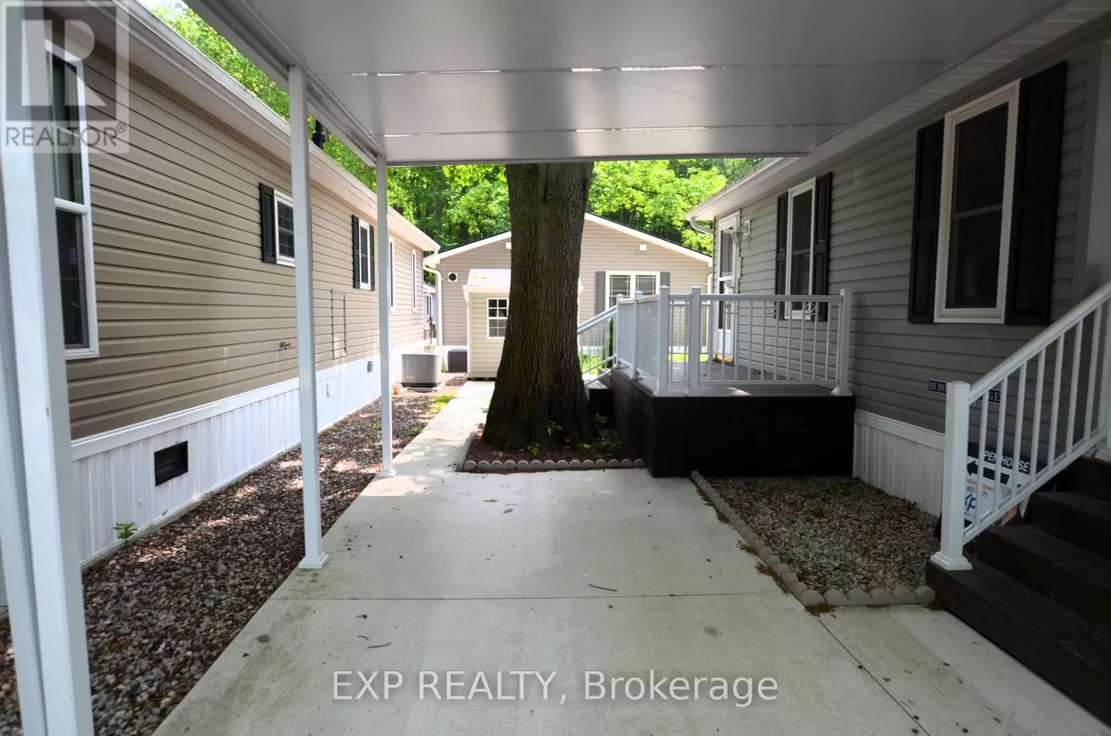 Cross Streets: Oxbow Drive. ** Directions: Turn North off Glendon Drive onto Amiens Rd. Oriole Park is on East side of Amiens. Property is 51 Memory Lane. Six months of park fees included! Amazing value in the beautiful Oriole Park Resort in Komoka. This upscale year-round 55+ Adult Community with gated entry has much to offer retirees or those looking to downsize. With 1103 sqft of living space, this lovely bungalow style modular home is bright and spacious with cathedral ceilings and many windows. Enter the home off the side entrance into a large foyer with double closets, through to the open concept kitchen, with a centre island, gas stove, ample cupboards and counter space. Theres also a separate dining room at the front for home cooked meals or cards night, plus living room with fireplace for those cozy evenings with friends. Down the hallway is an office or den with a built-in desk and cabinetry, a 2pc powder room and stacked laundry. The Master bedroom features a large closet and a 3 piece ensuite with shower and plenty of storage. Outside has a carport and a front covered porch, with a side deck, two small storage sheds for gardening & tools, a concrete pathway and large patio for relaxing or entertainment. Oriole Park offers a vibrant lifestyle with numerous activities, games, tournaments, and festivities hosted by residents throughout the year. Theres an extensive range of clubhouse amenities including a salon & spa, golf simulator, dog groomers, bakery, event stage, exercise room, pickle ball court, library and licensed bistro/bar with pool table, big screen TV and darts. The beautifully landscaped grounds include koi ponds, gardens, shuffleboard court, off-leash dog park, inground pool, community BBQ & firepit areas. With dedicated management and a welcoming community, this resort-style park offers the perfect blend of relaxation and social life. (id:27476)