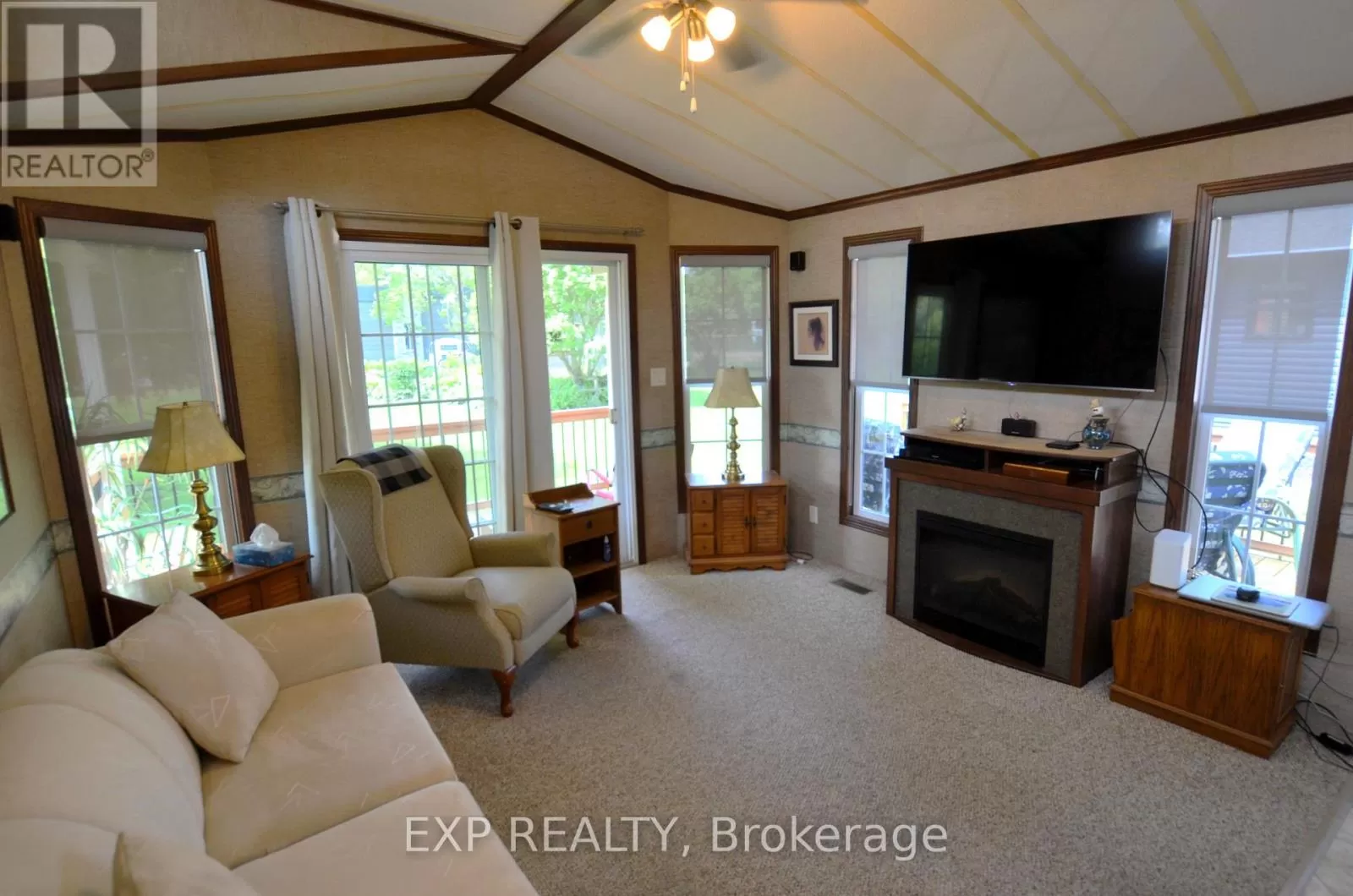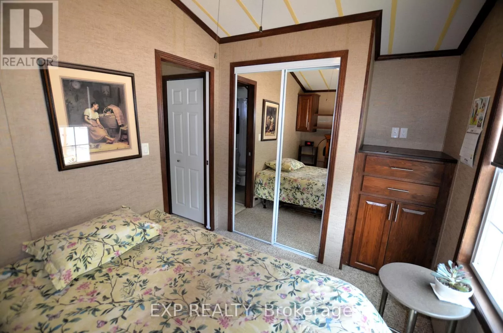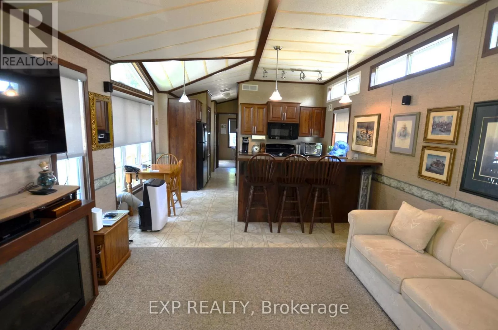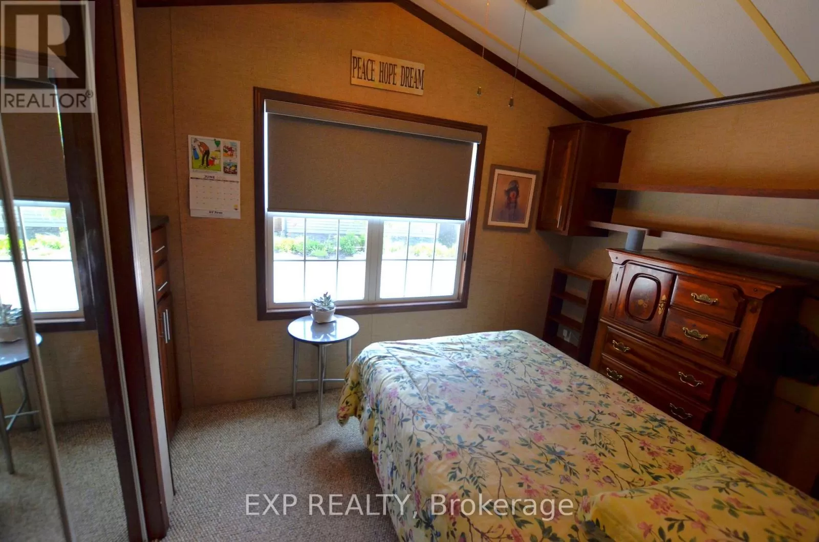 Cross Streets: Oxbow Drive. ** Directions: Glendon Drive to Amiens Road. Experience maintenance free living in the retirement community of Oriole Park. Enjoy your morning coffee on the covered back deck overlooking the beautiful landscaped grounds. This well-maintained home features an open concept floor plan with cathedral ceilings, kitchen with breakfast bar and gas stove, spacious living room with electric fireplace and patio doors to deck. Brand new roof! All appliances included. The master bedroom includes built in mirrored closets and drawers. Laundry room with plenty of storage. Forced air heating and portable AC unit included as well. Concrete driveway plus storage shed and additional storage under deck. Ample guest parking on site. Low property taxes! This is a fantastic opportunity for quality retirement living in a 55+ community with incredible amenities including an inground pool, pickle ball court, community centre, dog grooming, golf simulator, bistro & bar, pool table, dart board, and more. Schedule your retirement today! (id:27476)