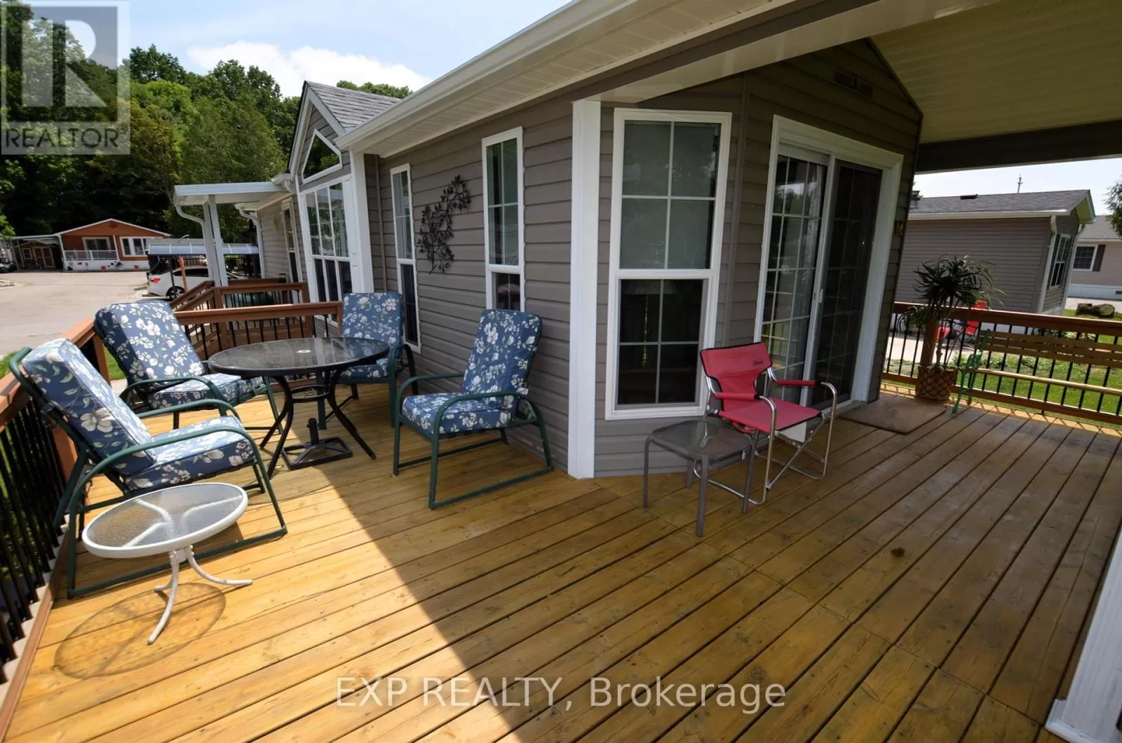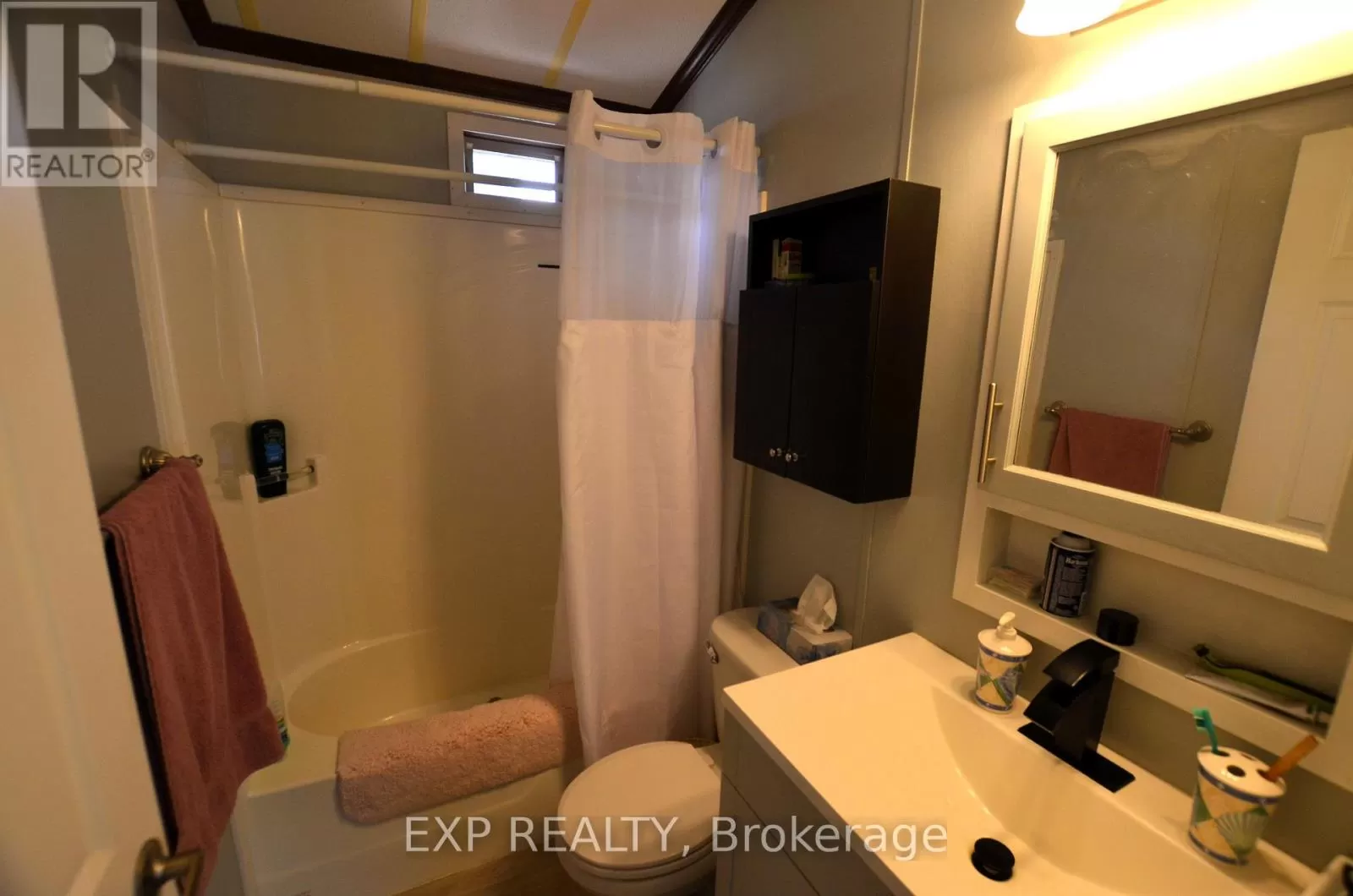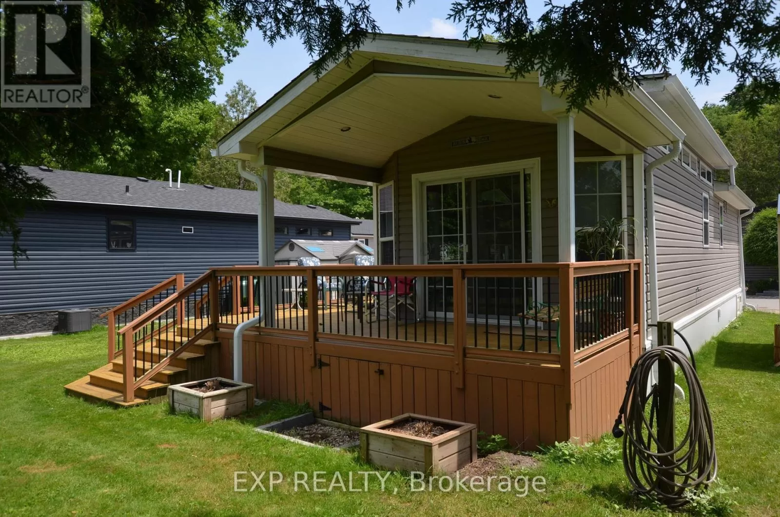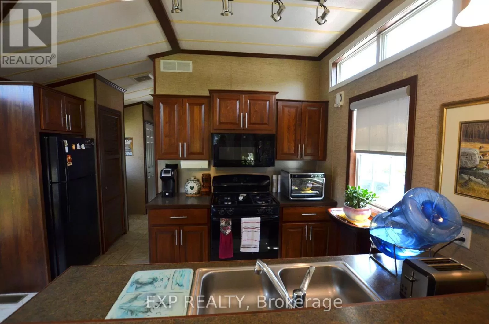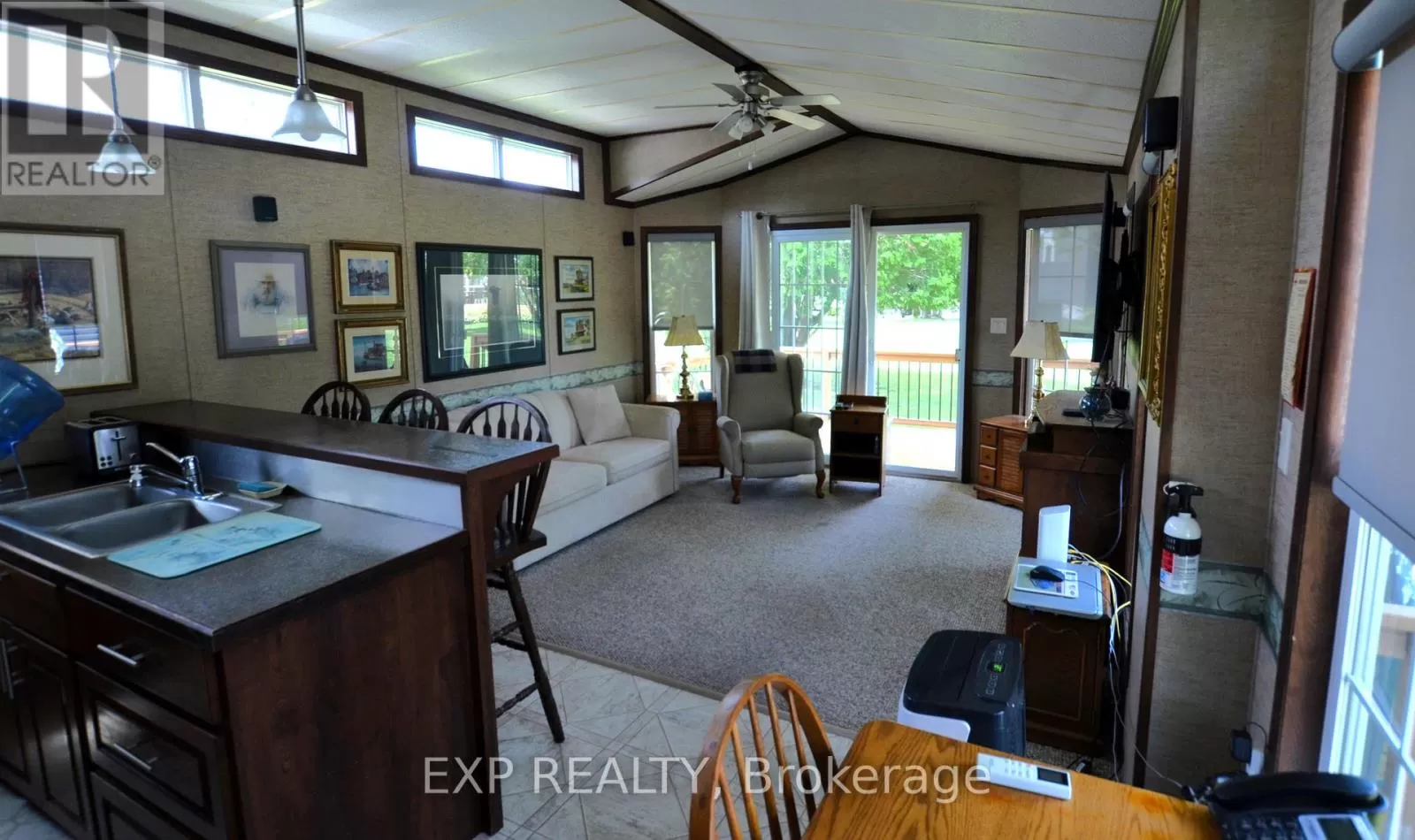 Cross Streets: Oxbow Drive. ** Directions: Glendon Drive to Amiens Road. Experience maintenance free living in the retirement community of Oriole Park. Enjoy your morning coffee on the covered back deck overlooking the beautiful landscaped grounds. This well-maintained home features an open concept floor plan with cathedral ceilings, kitchen with breakfast bar and gas stove, spacious living room with electric fireplace and patio doors to deck. Brand new roof! All appliances included. The master bedroom includes built in mirrored closets and drawers. Laundry room with plenty of storage. Forced air heating and portable AC unit included as well. Concrete driveway plus storage shed and additional storage under deck. Ample guest parking on site. Low property taxes! This is a fantastic opportunity for quality retirement living in a 55+ community with incredible amenities including an inground pool, pickle ball court, community centre, dog grooming, golf simulator, bistro & bar, pool table, dart board, and more. Schedule your retirement today! (id:27476)