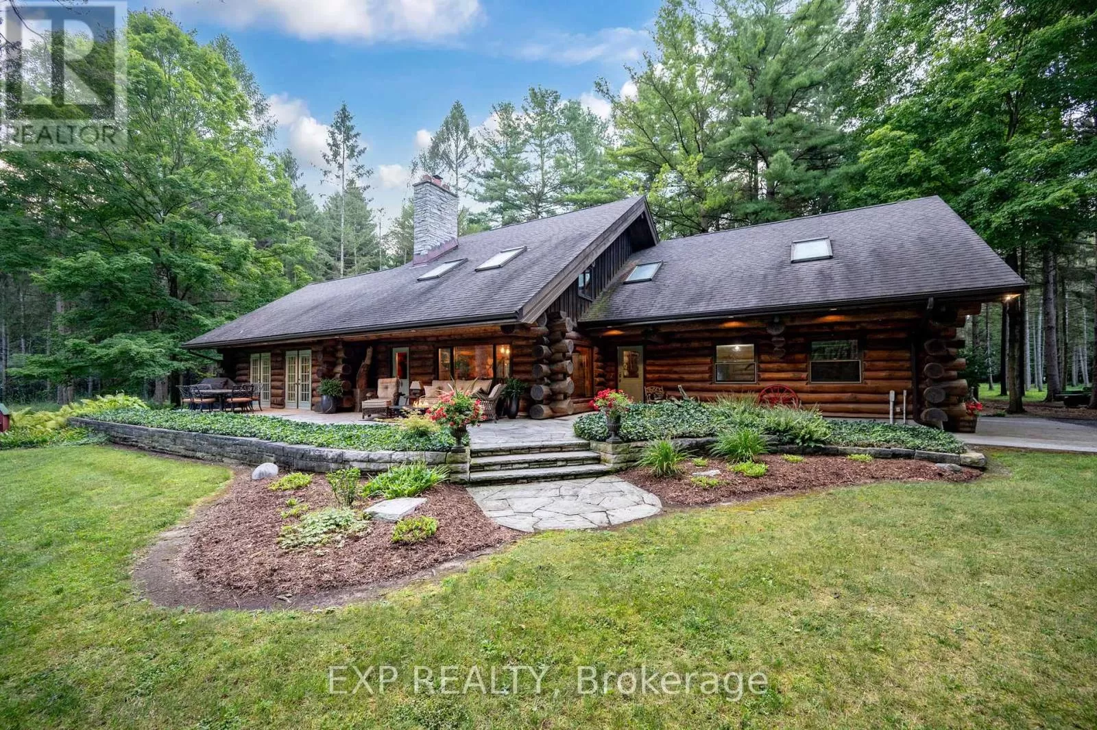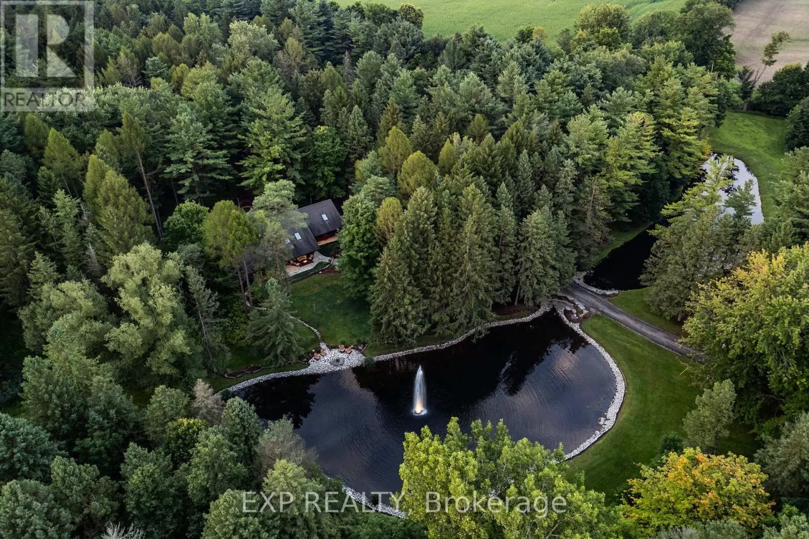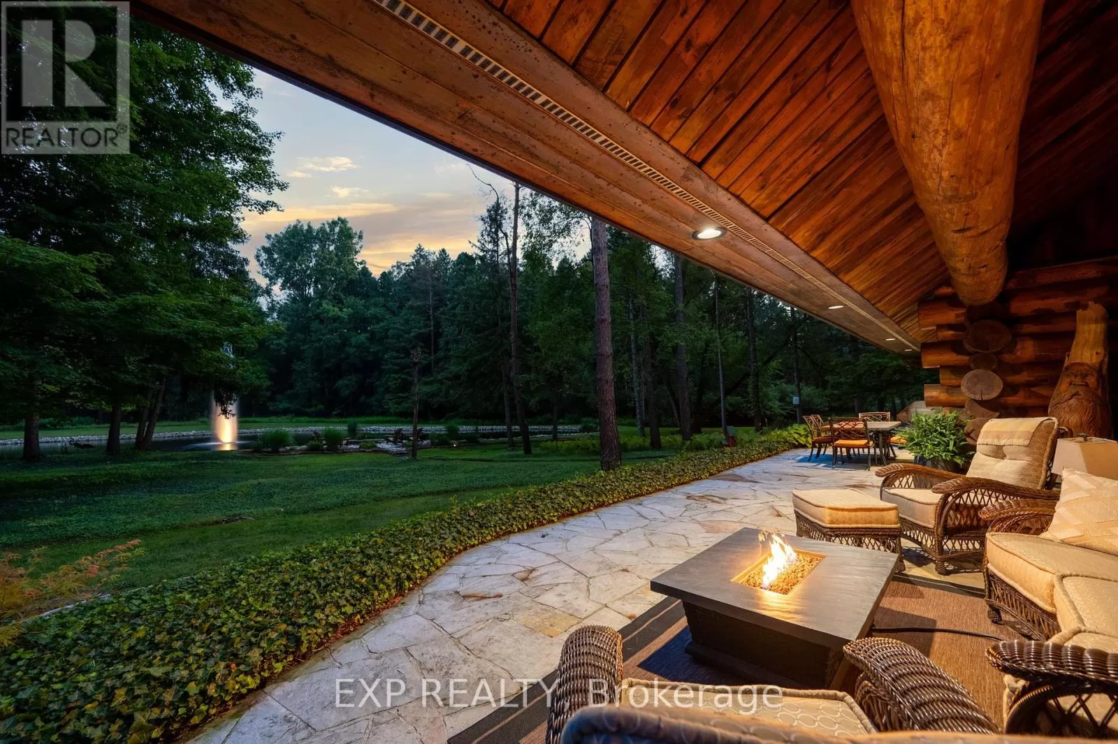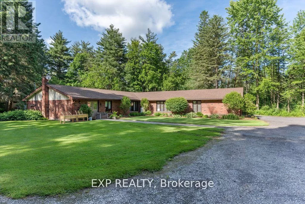 CARRIAGE ROAD Hidden down a private tree-lined driveway deep in the Carolinian forest on the edge of London and minutes from Delaware, this one-of-a-kind property offers TWO HOMES with a combined 6,300 sq. ft. of finished space. Situated on 42.4 acres of private bush and lush forests, the property features interconnecting trails that lead down a ravine to Dingman Creek. At the back of the property, a magnificent log home overlooks various ponds with a stunning fountain that glows at night. Every window offers priceless views, and the front of the home provides peaceful tranquility. The log home is exceptionally well-built, featuring two staircases and a vaulted two-story great room with a mirrored fireplace into the formal dining room. The kitchen has been tastefully redesigned with beautiful wood cabinets and granite countertops. The second level offers three spacious bedrooms and a versatile primary suite with a dressing room that could be converted into a fourth bedroom, walk-in closet, or ensuite.The home at the front of the property is separated into two parts: one side is a sprawling ranch-style home with three bedrooms potential for a 4th and a private patio, while the other side offers a separate space with endless potential. This first home is completely hidden from the back home, set off to the side and surrounded by lush forest. This property feels like another world, with deer spotted several times a day, wild turkeys that roam and graze, and flying squirrels gliding from branch to branch. The trails, beautifully maintained, run all the way down to the river. There is even a fully finished hunting shack, high up on posts and lined with cedar and wood floors, perfect for wildlife watching or hunting. There is a look-out point at the back of the property with breathtaking views of the river. Situated on the edge of London and Delaware, this location cannot be beat and is extremely hard to come by. (Both houses, bedrooms and bathrooms are combined) (id:27476)