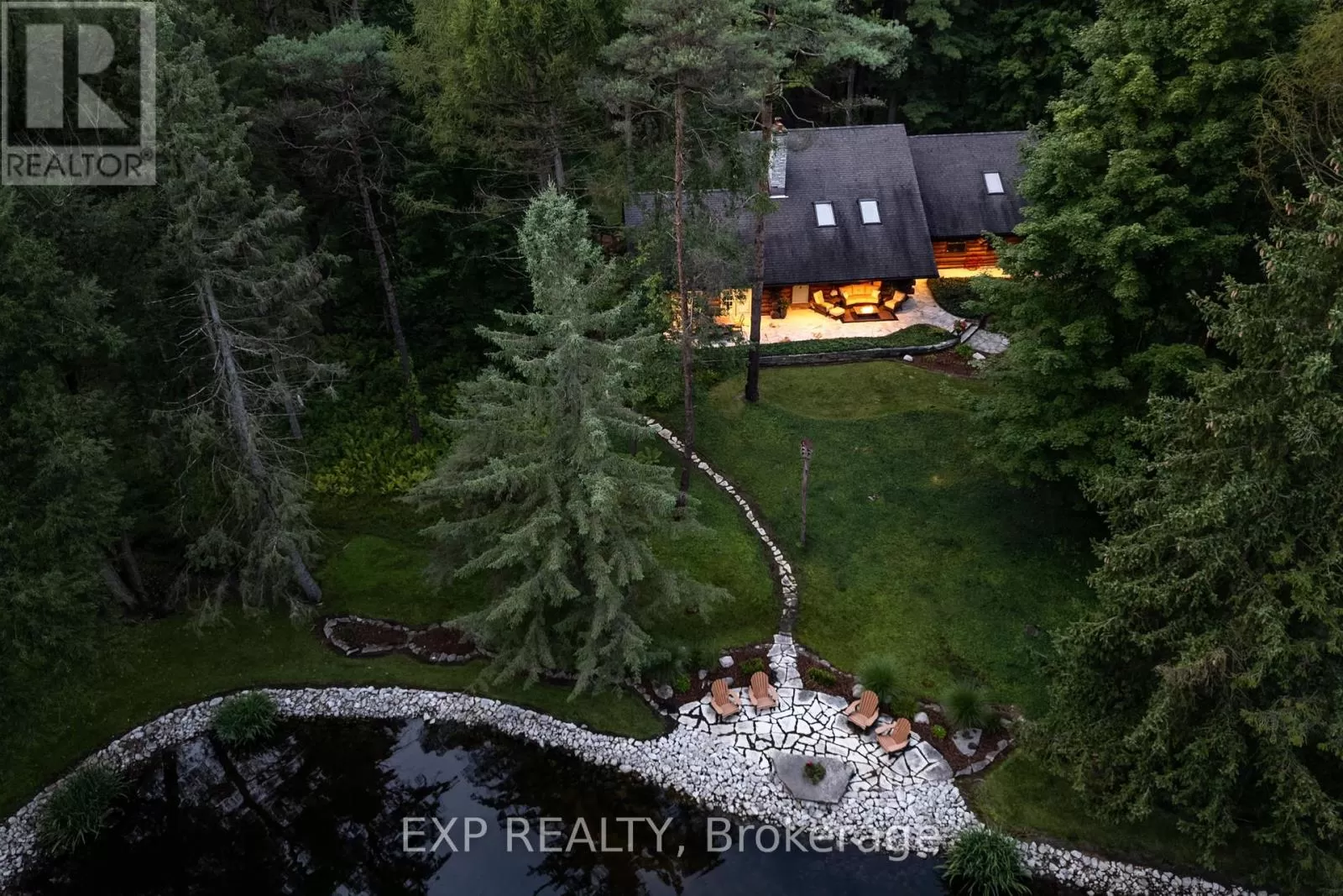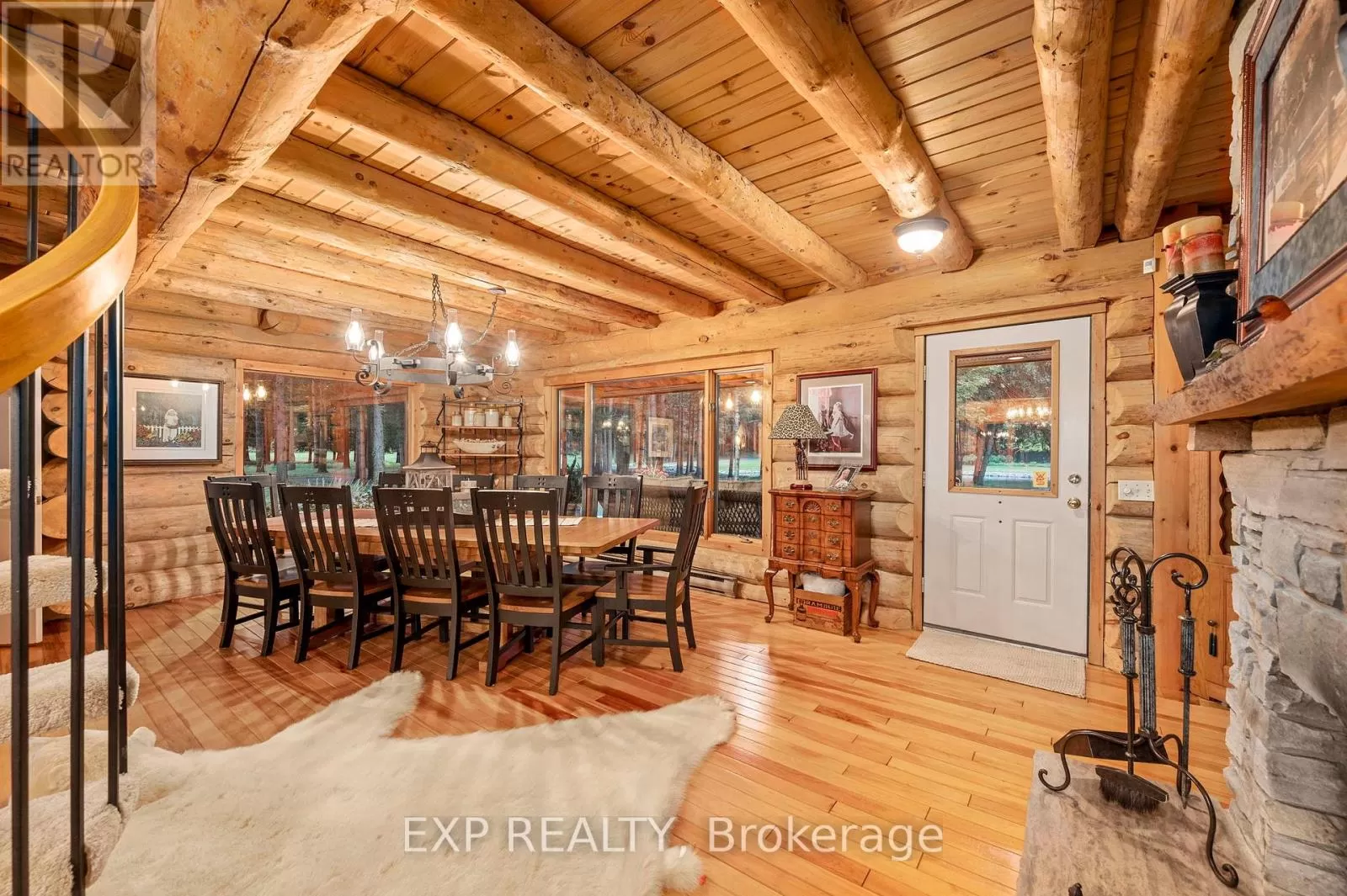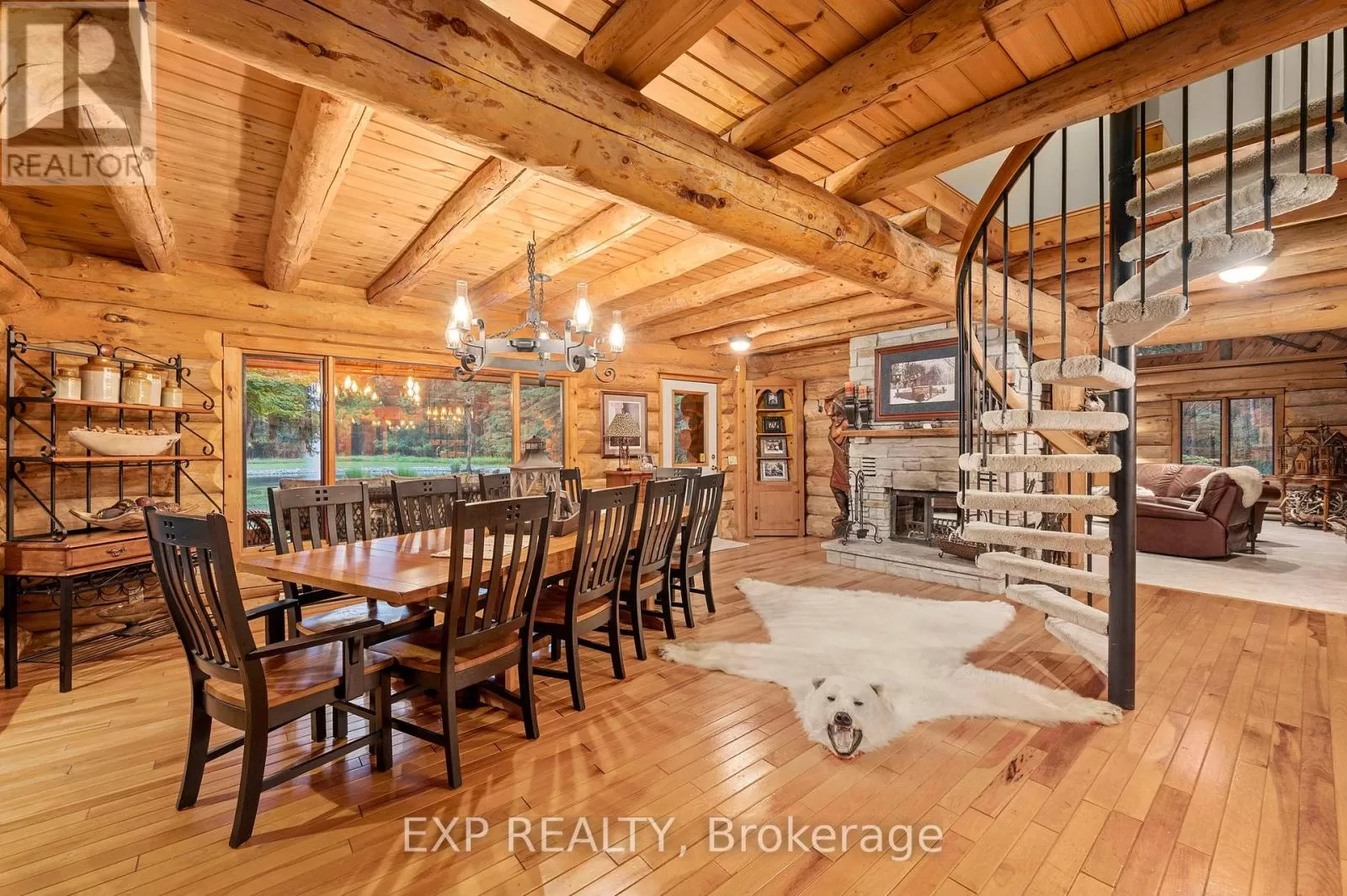 CARRIAGE ROAD Hidden down a private tree-lined driveway deep in the Carolinian forest on the edge of London and minutes from Delaware, this one-of-a-kind property offers TWO HOMES with a combined 6,300 sq. ft. of finished space. Situated on 42.4 acres of private bush and lush forests, the property features interconnecting trails that lead down a ravine to Dingman Creek. At the back of the property, a magnificent log home overlooks various ponds with a stunning fountain that glows at night. Every window offers priceless views, and the front of the home provides peaceful tranquility. The log home is exceptionally well-built, featuring two staircases and a vaulted two-story great room with a mirrored fireplace into the formal dining room. The kitchen has been tastefully redesigned with beautiful wood cabinets and granite countertops. The second level offers three spacious bedrooms and a versatile primary suite with a dressing room that could be converted into a fourth bedroom, walk-in closet, or ensuite.The home at the front of the property is separated into two parts: one side is a sprawling ranch-style home with three bedrooms potential for a 4th and a private patio, while the other side offers a separate space with endless potential. This first home is completely hidden from the back home, set off to the side and surrounded by lush forest. This property feels like another world, with deer spotted several times a day, wild turkeys that roam and graze, and flying squirrels gliding from branch to branch. The trails, beautifully maintained, run all the way down to the river. There is even a fully finished hunting shack, high up on posts and lined with cedar and wood floors, perfect for wildlife watching or hunting. There is a look-out point at the back of the property with breathtaking views of the river. Situated on the edge of London and Delaware, this location cannot be beat and is extremely hard to come by. (Both houses, bedrooms and bathrooms are combined) (id:27476)