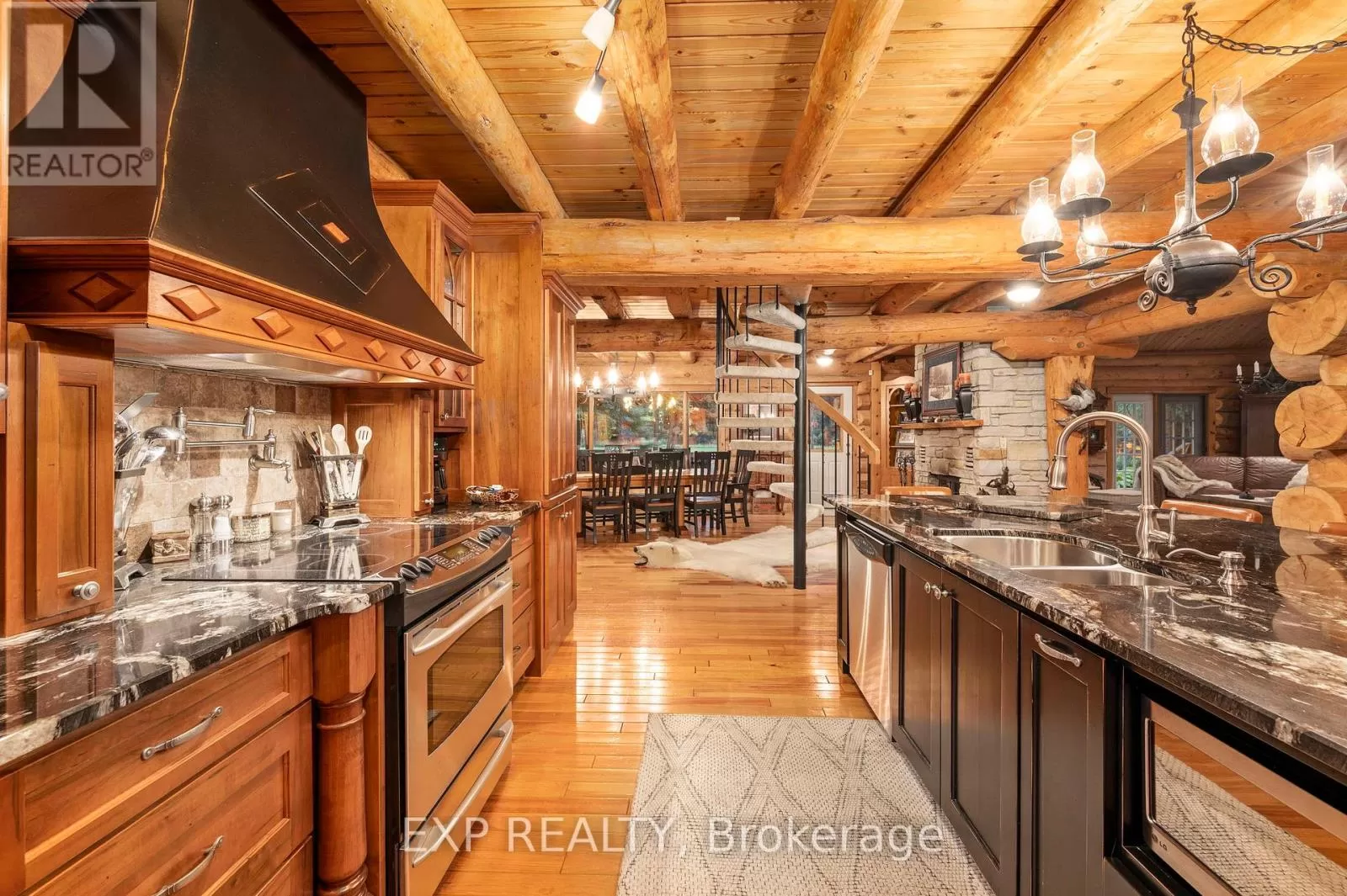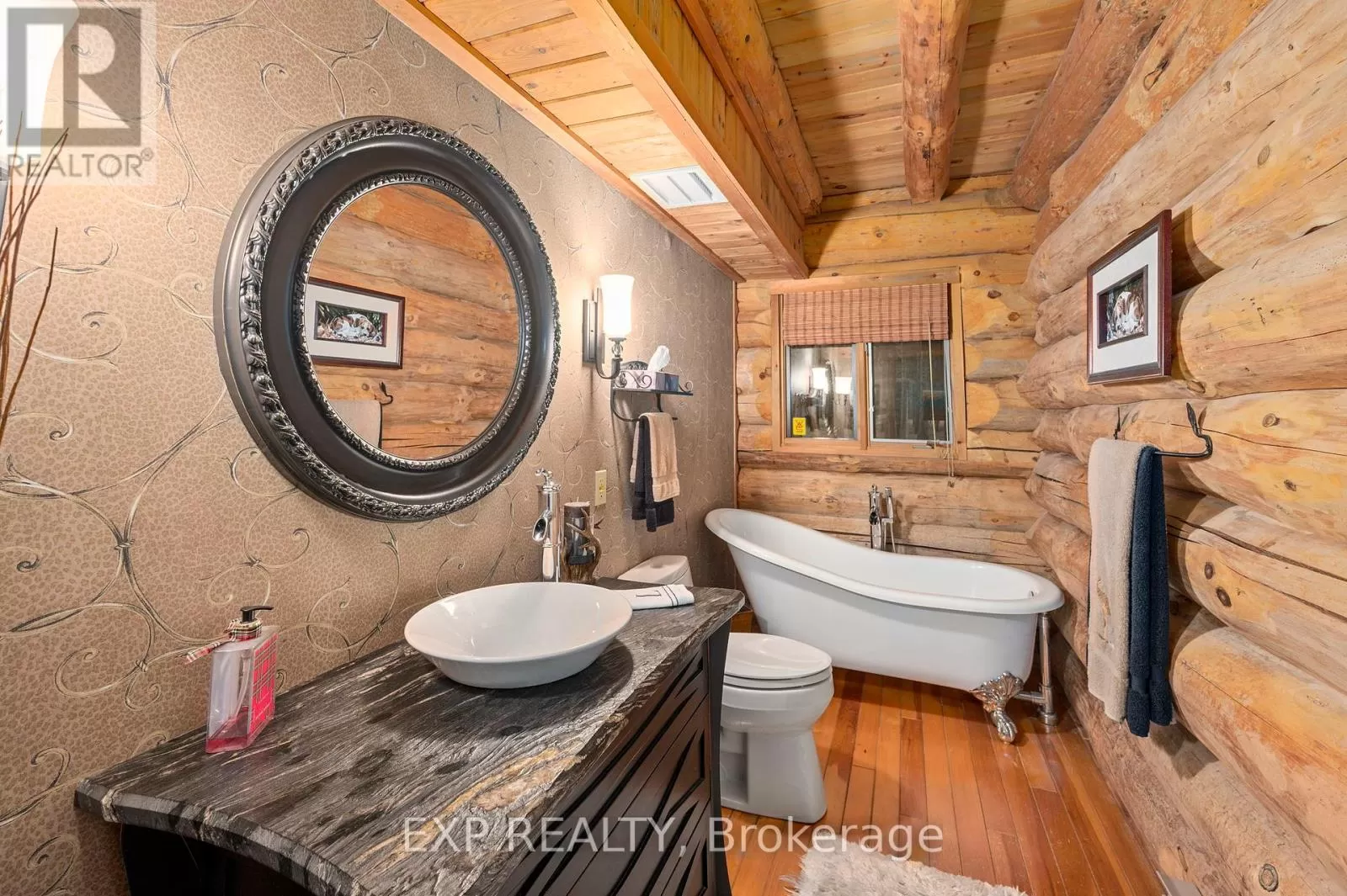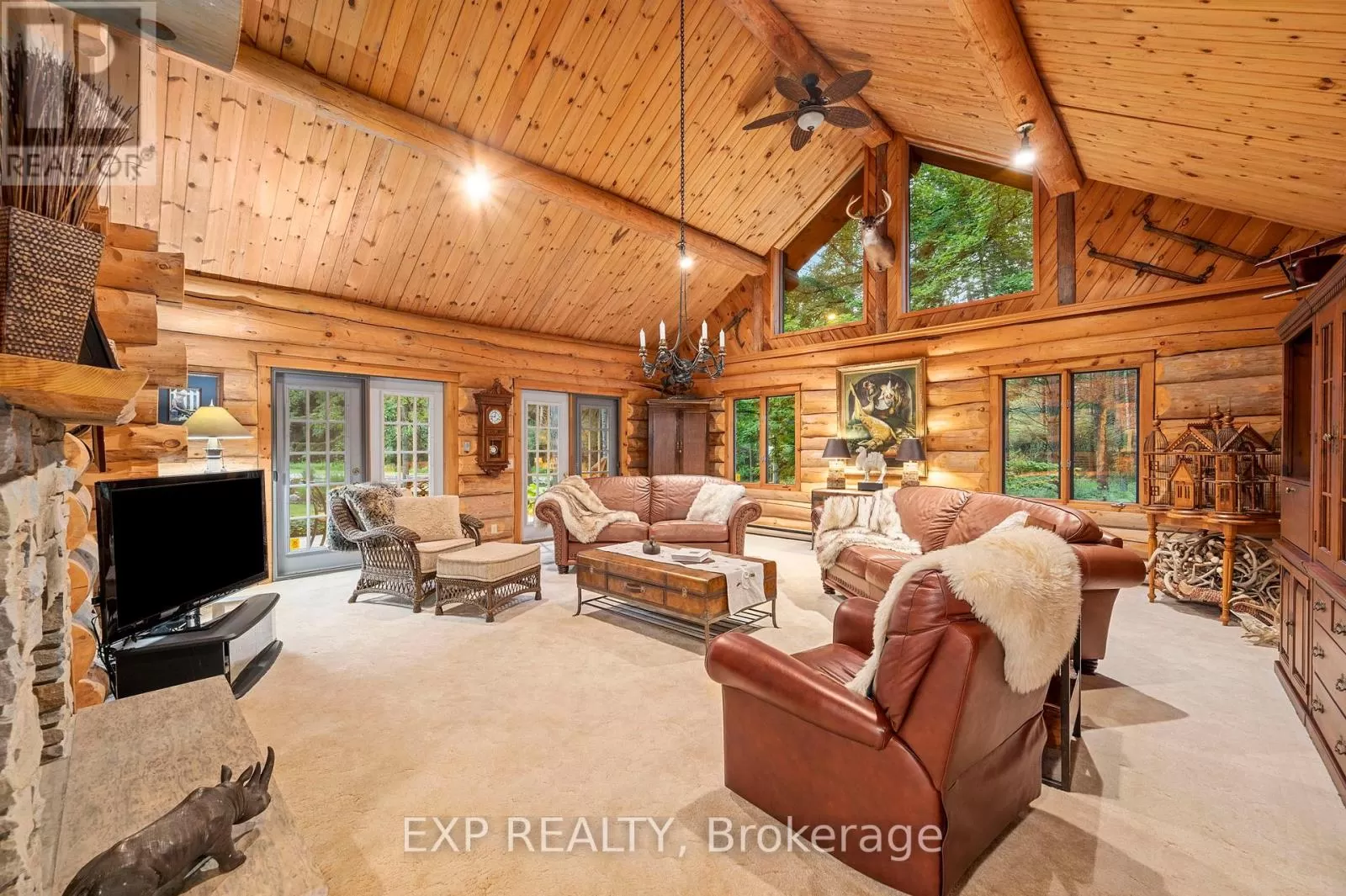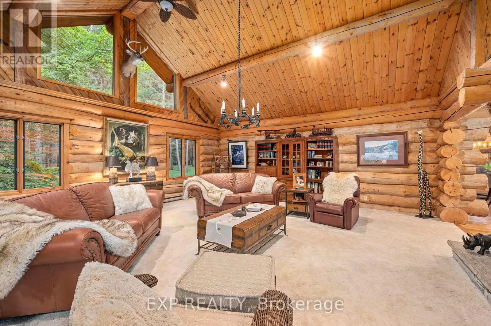 CARRIAGE ROAD Hidden down a private tree-lined driveway deep in the Carolinian forest on the edge of London and minutes from Delaware, this one-of-a-kind property offers TWO HOMES with a combined 6,300 sq. ft. of finished space. Situated on 42.4 acres of private bush and lush forests, the property features interconnecting trails that lead down a ravine to Dingman Creek. At the back of the property, a magnificent log home overlooks various ponds with a stunning fountain that glows at night. Every window offers priceless views, and the front of the home provides peaceful tranquility. The log home is exceptionally well-built, featuring two staircases and a vaulted two-story great room with a mirrored fireplace into the formal dining room. The kitchen has been tastefully redesigned with beautiful wood cabinets and granite countertops. The second level offers three spacious bedrooms and a versatile primary suite with a dressing room that could be converted into a fourth bedroom, walk-in closet, or ensuite.The home at the front of the property is separated into two parts: one side is a sprawling ranch-style home with three bedrooms potential for a 4th and a private patio, while the other side offers a separate space with endless potential. This first home is completely hidden from the back home, set off to the side and surrounded by lush forest. This property feels like another world, with deer spotted several times a day, wild turkeys that roam and graze, and flying squirrels gliding from branch to branch. The trails, beautifully maintained, run all the way down to the river. There is even a fully finished hunting shack, high up on posts and lined with cedar and wood floors, perfect for wildlife watching or hunting. There is a look-out point at the back of the property with breathtaking views of the river. Situated on the edge of London and Delaware, this location cannot be beat and is extremely hard to come by. (Both houses, bedrooms and bathrooms are combined) (id:27476)