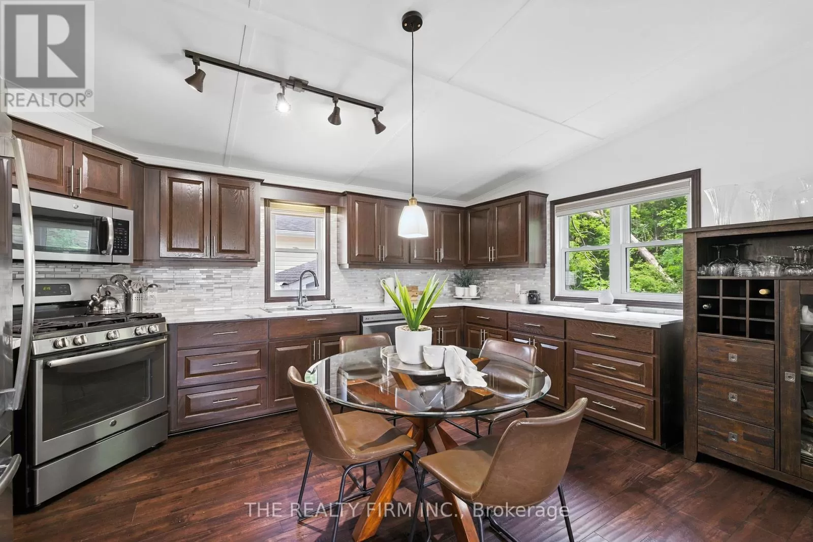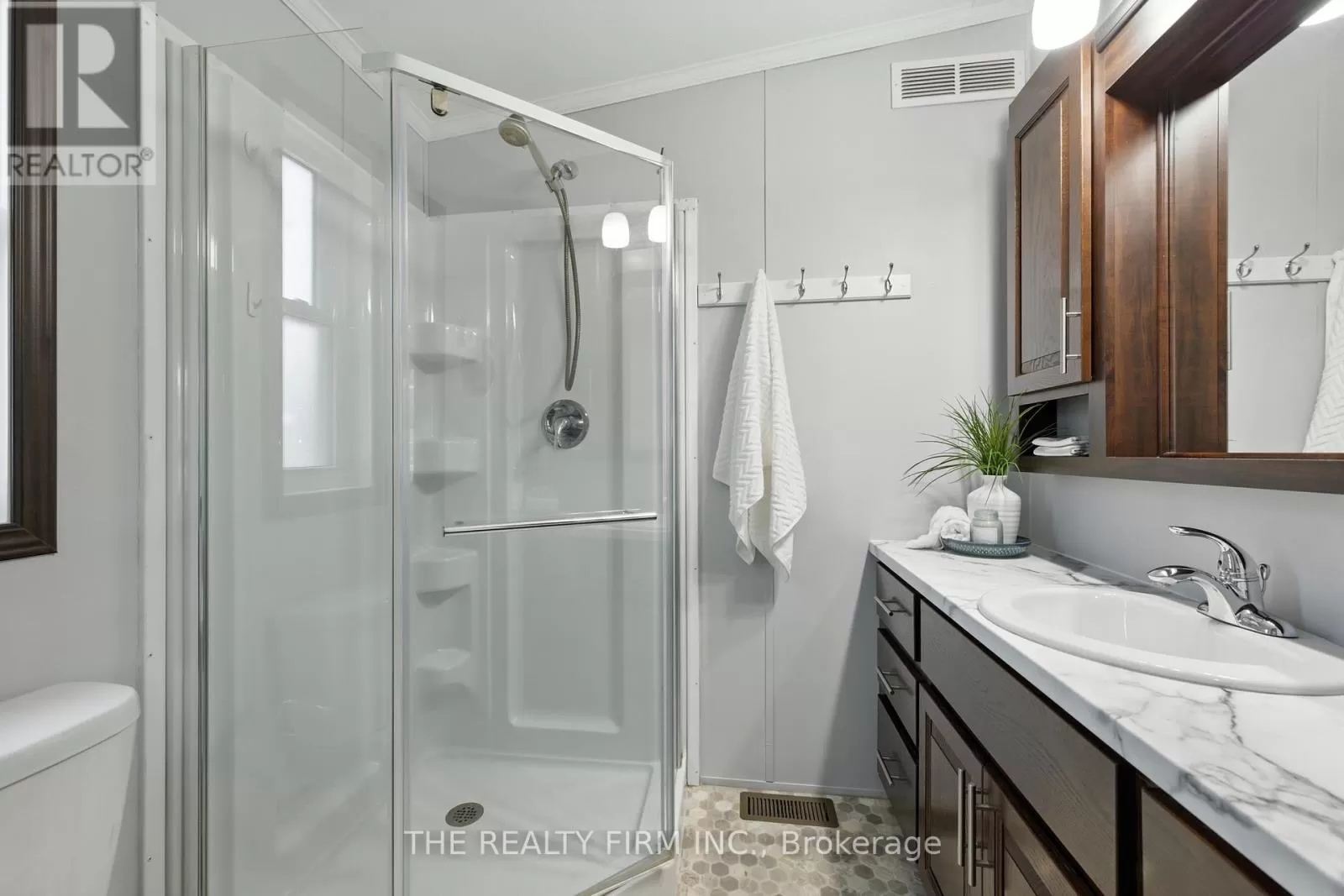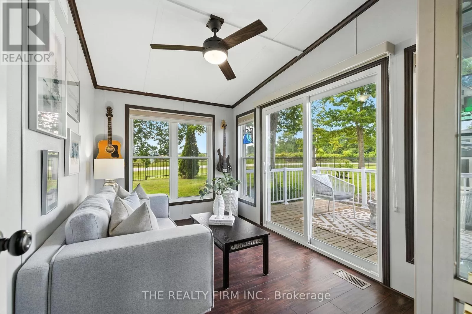 Cross Streets: Amiens Rd & Oriole Dr. ** Directions: Turn North off Glendon Drive onto Amiens Rd. Oriole Park is on East side of Amiens. The home is located on Haviture Way Unit #1. Live the resort lifestyle year-round in Unit #1 at Oriole Park Resort--a rare gem in Komoka just 10 minutes west of London. This vibrant four-season retirement community offers a peaceful, cottage-like setting and this 3-bedroom, 2-bathroom modular home is packed with features that make everyday living feel like a getaway. Inside, enjoy hand-scraped laminate floors, an open-concept living, dining, and kitchen area filled with natural light, plus generous closet space at the entrance. The kitchen features stainless steel appliances, tile backsplash, and ample cabinetry. Off the dining area, step onto a private back deck with patio space and a nearby propane hook-up--perfect for summer BBQs.The main 4-piece bathroom is equipped with built-in storage and a convenient stacked washer/dryer. All bedrooms are bright and spacious, with great closet space. One room functions beautifully as a sunroom, an office or third bedroom--your choice! From there, sliding doors lead to a cozy enclosed deck for even more outdoor enjoyment. The primary suite features vaulted ceilings, generous closet space, and 3-piece ensuite. Enjoy unobstructed outdoor views with a neighbouring lot that will remain vacant--offering extra privacy and serenity. A storage shed adds practical outdoor space for tools and gear and two parking spaces is a bonus! But what truly sets this home apart is the unmatched lifestyle Oriole Park offers: clubhouse amenities like a salon and spa, golf simulator, dog grooming station, fitness centre, pickleball court, event space, library, and a fully licensed bistro/bar with a pool table and darts. Stroll the beautifully landscaped grounds, complete with koi ponds, shuffleboard, an off-leash dog park, saltwater pool, community fire pit and garden, and BBQ areas.If youre ready to downsize without compromise, Unit #1 is your ticket to affordable, stylish, and social living in one of the regions most unique communities. (id:27476)