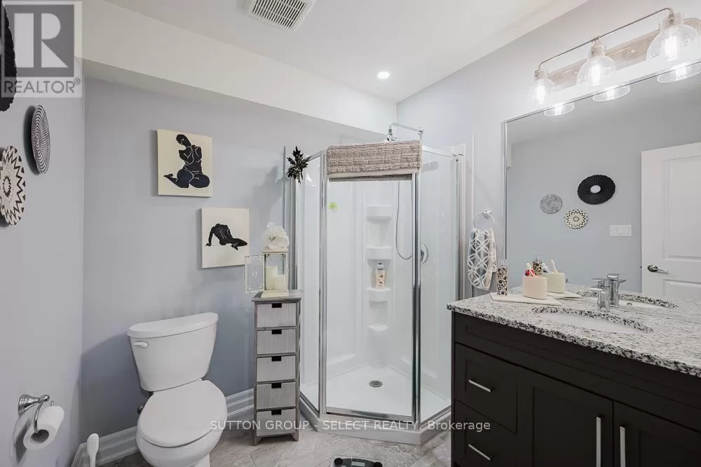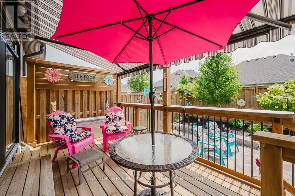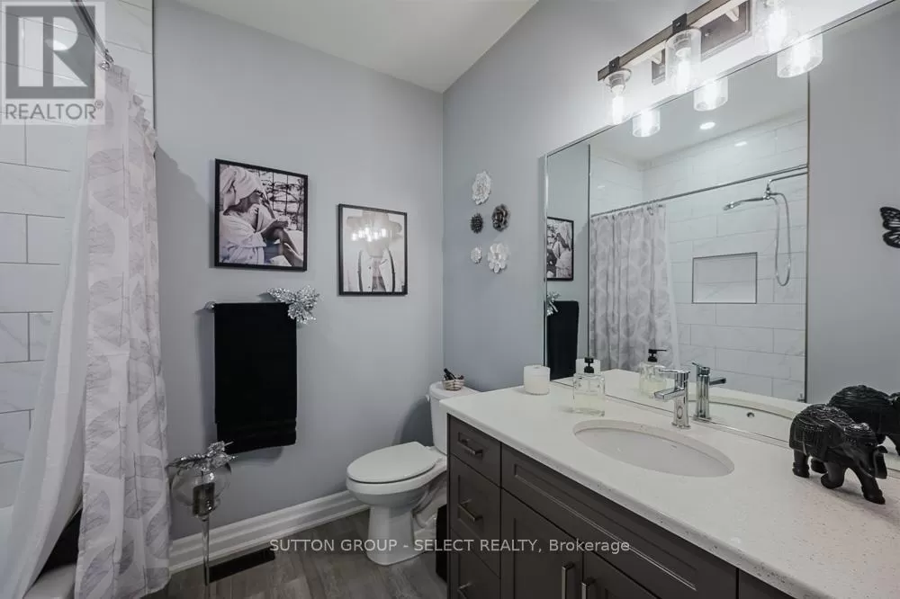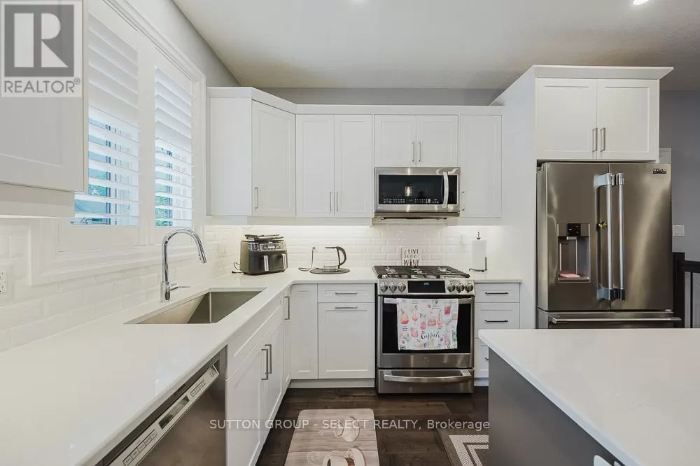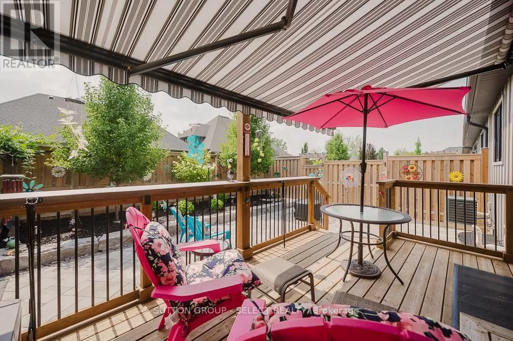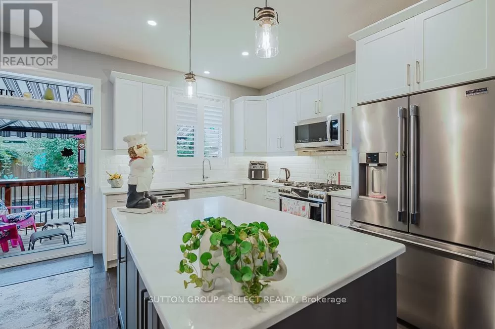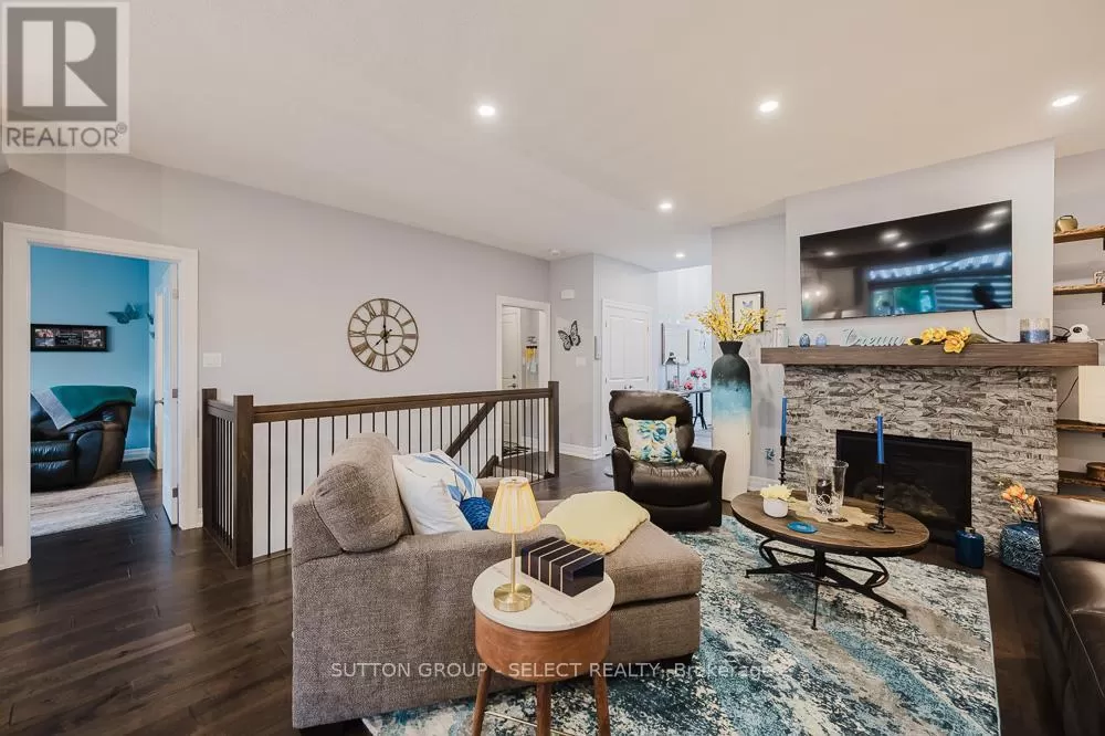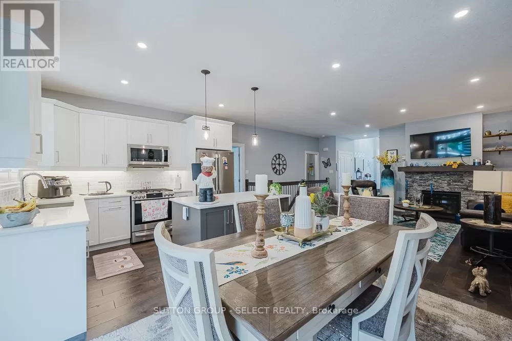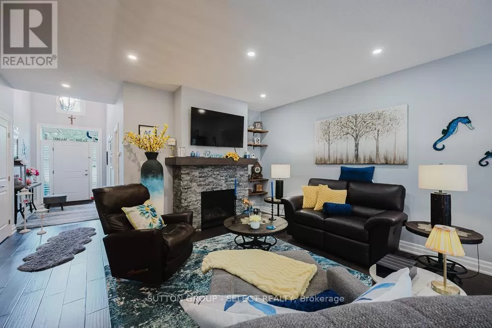 Cross Streets: Komoka Rd. ** Directions: Glendon Dr heading West, turn left just West of Komoka Rd. Meticulously maintained 4-bed, 3-bath ranch-style condo-only five years old and showing like new. Exceptionally clean and move-in ready, maintained to pristine standards throughout. Engineered hardwood floors add warmth and durability across the main living areas. Spacious open-plan living room, anchored by a gas fireplace-ideal for cozy gatherings. Chef's kitchen with oversized island, perfect for meal prep or casual entertaining. Calacatta quartz countertops offer a sleek, high-end touch. Built-in dishwasher and ample cabinetry combine style with practicality. The large primary bedroom features a beautiful ensuite and walk-in closet. There is an additional bedroom and a 4 piece bathroom on the main level. + two additional bedrooms, bathroom and family room on the lower level, ideal for guests, multigenerational living, or a quiet home office space. Beautiful wood deck flows to a stone patio, offering generous entertaining space. The owner has spent an additional $40,000 plus on upgrades including storm door, deck awning, Profession Frigidaire refrigerator. Power-operated awning covers the deck for shade and comfort, rain or shine. Attached garage with inside entry, featuring an auto-opening door-providing convenience and security. Low monthly condo fees, $120, keeping ongoing costs highly affordable. This thoughtfully designed unit delivers luxury finishes, smart living spaces, and impeccable upkeep at a remarkable value. It's an opportunity to own a spacious, modern layout with 4 bedrooms and 3 full baths plus a lower-level bonus family room. Perfect for families, downsizers, or anyone seeking flexibility, comfort, and ease of living. Offering a modern design, generous living space, and low fees make this home a great value. (id:27476)