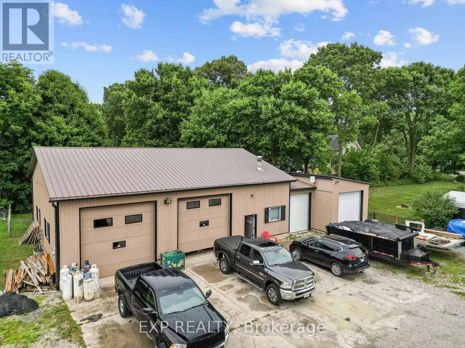 Cross Streets: Longwoods Rd. ** Directions: Turn left onto Wilson Street. Set on a beautifully landscaped 0.72-acre corner lot right on the edge of the Village of Delaware, this versatile two-storey home comes with a massive, heated shop perfect for hobbyists, home-based businesses, or those seeking income potential. Just minutes from the 402, it's a quick 10-minute drive to London and only 40 minutes to Sarnia, making it an ideal location for commuters or investors looking for accessibility and flexibility.Inside the home, the main floor features a functional layout with a spacious kitchen, 4-piece bath, dining area, cozy living room, and a den. Upstairs, you'll find three bedrooms with solid oak doors, and the attic has recently been re-insulated for added efficiency. The basement is impressively dry, spray foam insulated, and ready for storage or future plans. Updates include a newer furnace, AC, and windows making this home move-in ready or easily rentable. The real standout here is the shop: 46' x 36' of heated workspace with an additional 24' x 26' workshop area, complete with large bay doors, an office, and a washroom. Tons of parking on-site.Both the home and shop are currently rented month-to-month, offering flexibility for investors or end users.Whether you're looking to live, work, or invest this property delivers options. (id:27476)