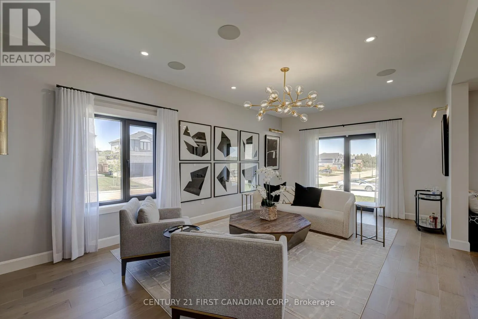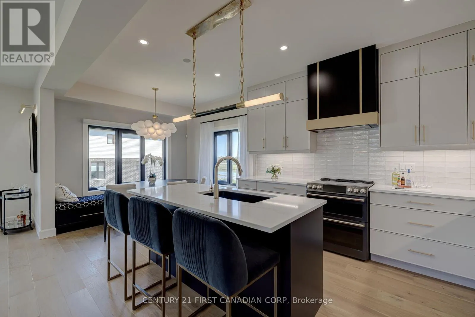 Cross Streets: Bowman. ** Directions: Stonefield, right onto Bowman. Luxury at its finest! BUILDER'S MODEL for sale. Welcome to The Hillcrest, our 4 Bedroom, heavily upgraded 1802 sq ft show piece by Vranic Homes. On a prestige corner lot, this home is filled with immeasurable upgrades including: upgraded kitchen cupboards, custom range hood, quartz counters, incredible appliance package by GE Cafe (fridge, stove, dishwasher, microwave, washer, dryer); engineered hardwood throughout both floors, epoxy garage floor, built-in dining bench, window treatments, family room fireplace, barn-door for primary walk-in closet, upgraded lighting throughout the home, and German-engineered high security Raven windows and Doors. (id:27476)