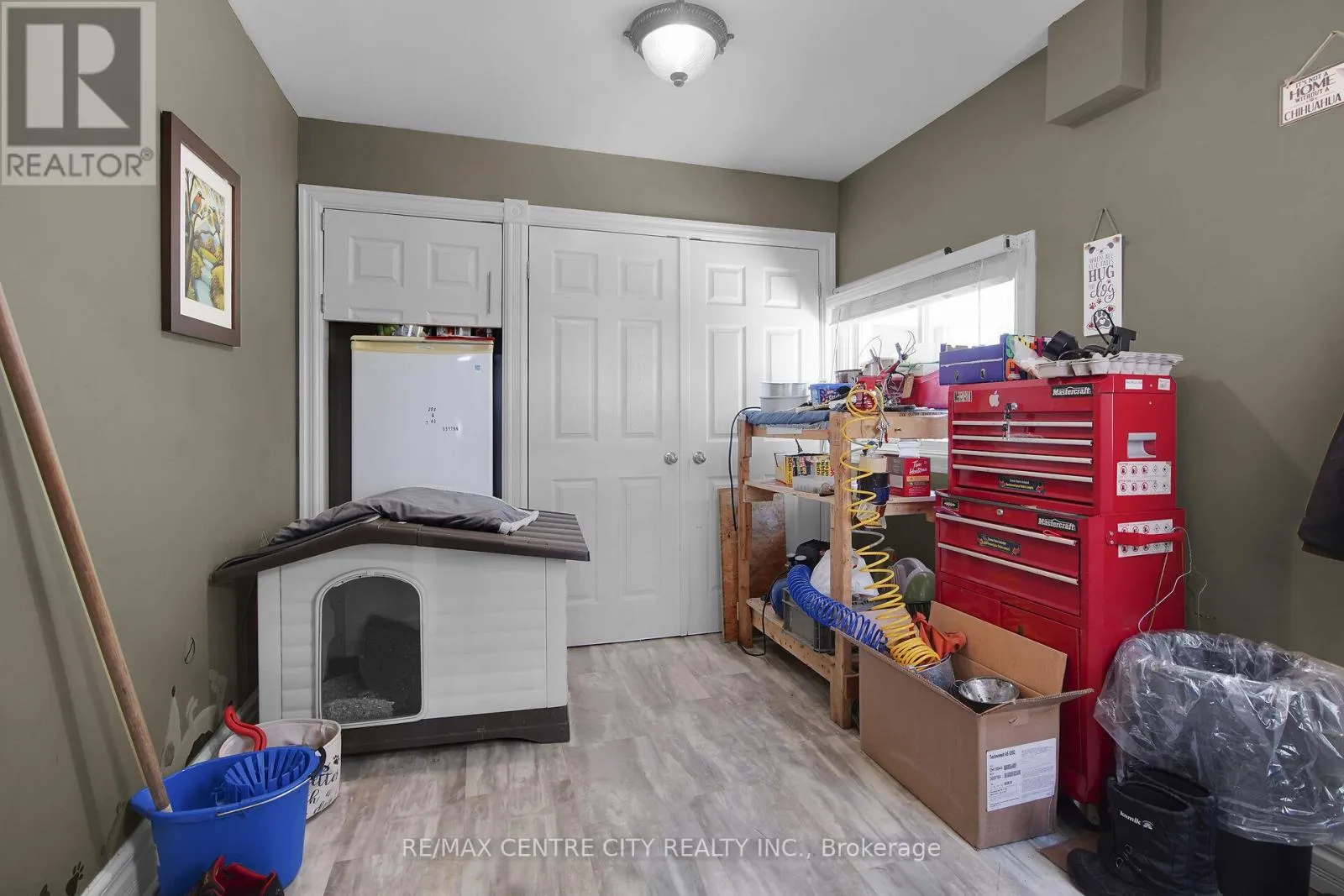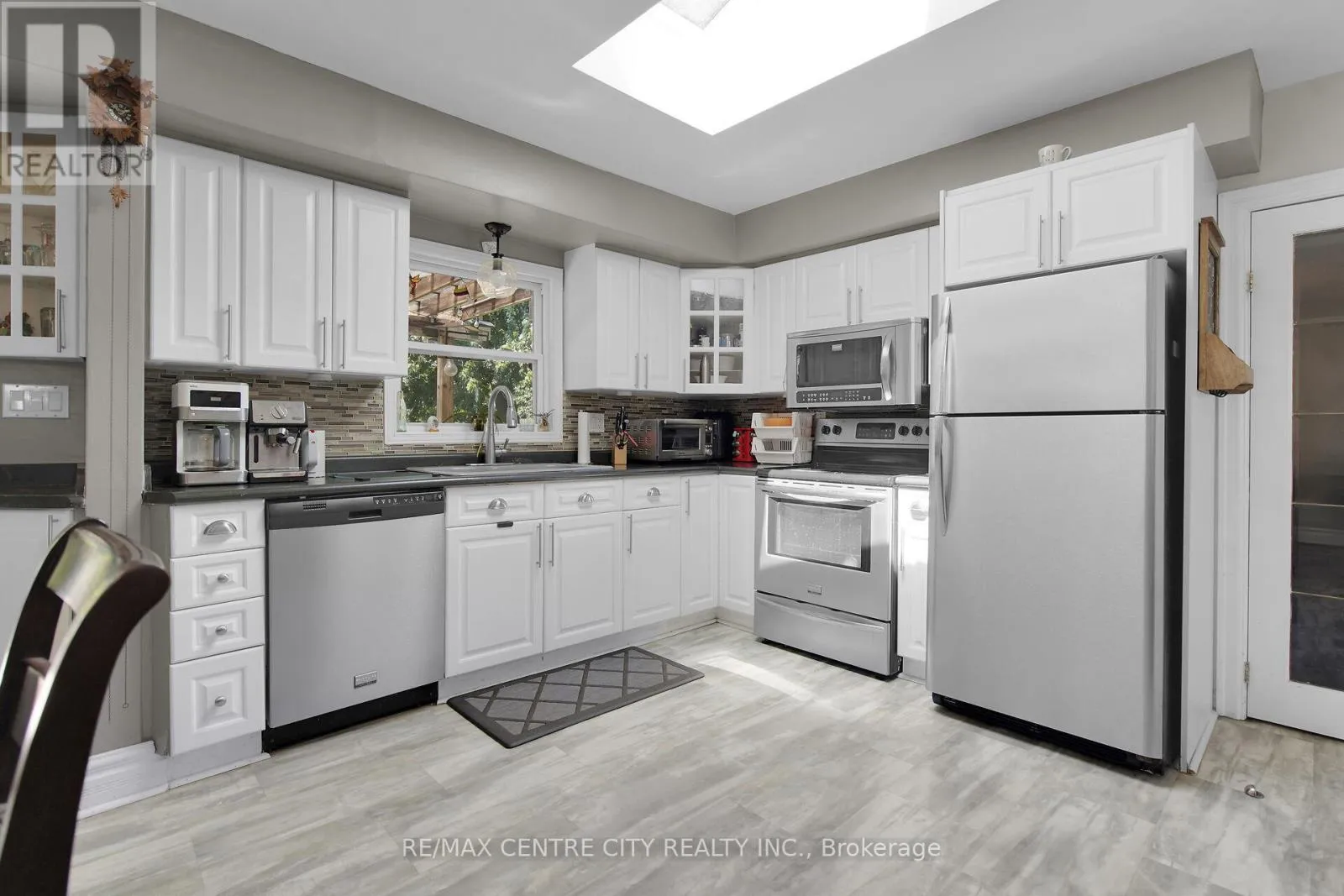 Cross Streets: Denfield Road. ** Directions: Drive west on Fanshawe Park Road. The house is on the right hand side before Denfield Rd. Welcome to the perfect blend of country living and practical functionality! Situated on 1/2 acre and set just outside the city limits (only 3 minutes from Hyde Park), this 3-bedroom side split offers incredible value for anyone needing space to create, build, or tinker. Featuring a massive 32' x 18' heated workshop, ideal for woodworking, auto projects, or your growing business or hobby. Plus, a triple car garage provides even more room for tools, toys, and vehicles. Inside, you'll find a bright and welcoming layout with a well lit living room, spacious eat-in kitchen and large mudroom. There are three generous bedrooms with hardwood floors, an updated main bathroom. The lower level features a finished rec room with a wood-burning fireplace and also includes a walk-up to the backyard and lots of extra storage in a crawl space. Most windows have been updated, the roof on the main house was replaced in 2019. Enjoy serene views from your fully fenced backyard, which backs onto open farmland (no rear neighbours!). With ample parking for trailers, RVs, or work vehicles, this property checks all the boxes for the hobbyist or tradesperson looking to escape the city without sacrificing convenience. There is an additional 2 piece washroom in the shop. (id:27476)