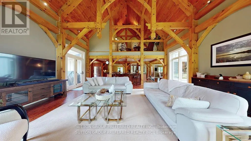 Cross Streets: Elviage dr. ** Directions: Take Oxford Street W. Turn Left onto Gideon Drive Turn Left onto Brigham Road. Magnificent, custom-built post and beam home, masterfully designed by Steve Sims of The Barnswallow Company, is a true architectural masterpiece waiting to be your personal sanctuary. Step into the awe-inspiring great room, where a soring 23'9" ceiling frames the majestic river rock gas fireplace that reaches for the sky, complimented by soaring custom Anderson Windows that invite natural light to dance across the expansive space. Chef's kitchen with U shaped island with granite counters and back splash, double ovens, coffee bar, wine bar, walk in pantry with second fridge. Main floor Master Bedroom with Vaulted Decorative ceiling and 5 pc ensuite, heated floor, designer walk in closet. Formal dining and living room. Main floor office with separate entrance from breezeway/mudroom. Second floor loft overlooking great room with reading area and 2 large bedrooms, 3 pc bath. Lower level family, floor to ceiling river rock gas fireplace, over sized windows, gym, 3pc bath with sauna, plenty of storage. 3 season bonus room over the garage. The backyard grounds offer a 24' x 28' deck overlooking 18' x 45' salt water pool. Shed, 2 furnaces, 2 air conditioners and back up natural gas generator **EXTRAS** Inclusions: Chest Freezer, Dishwasher. (id:27476)