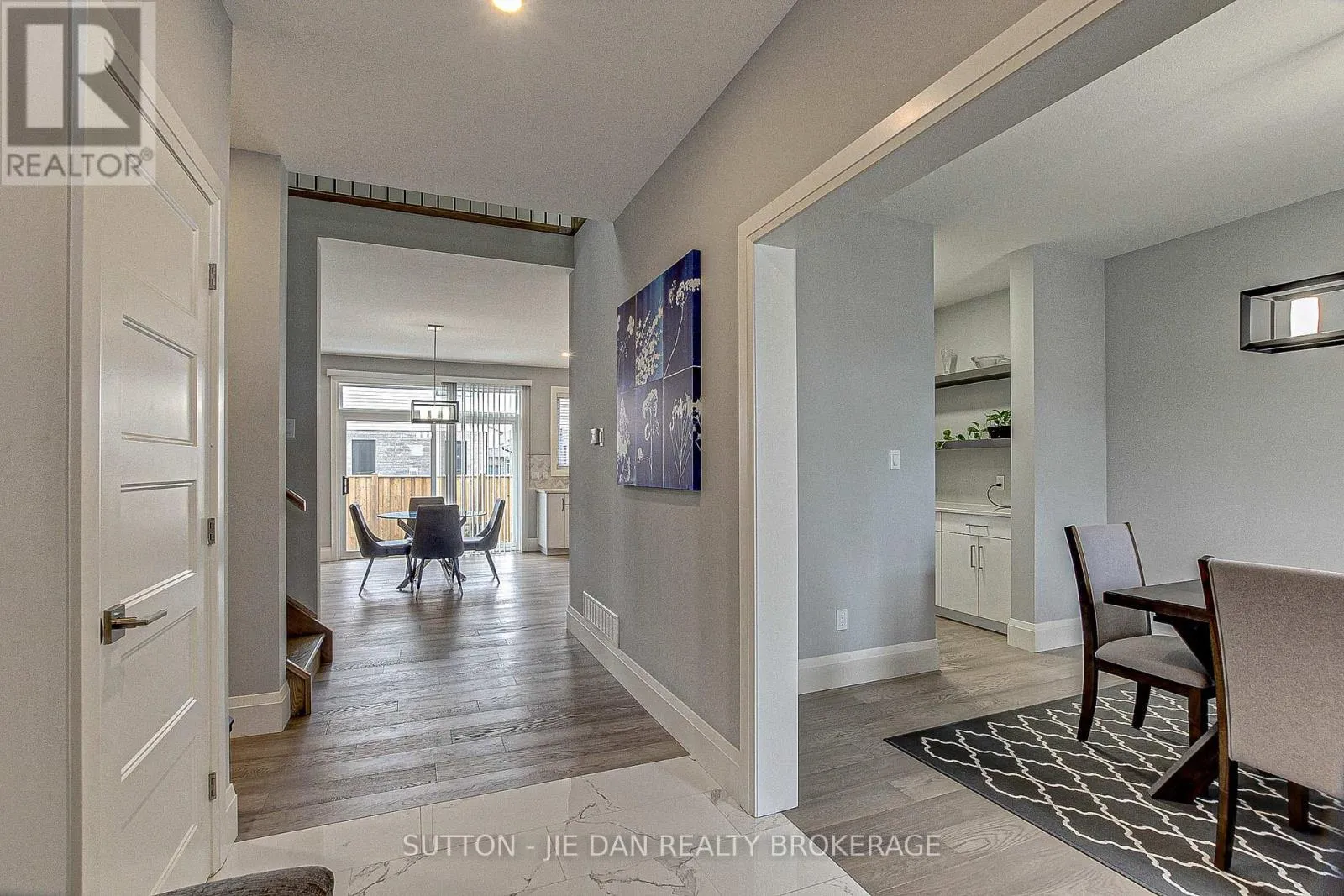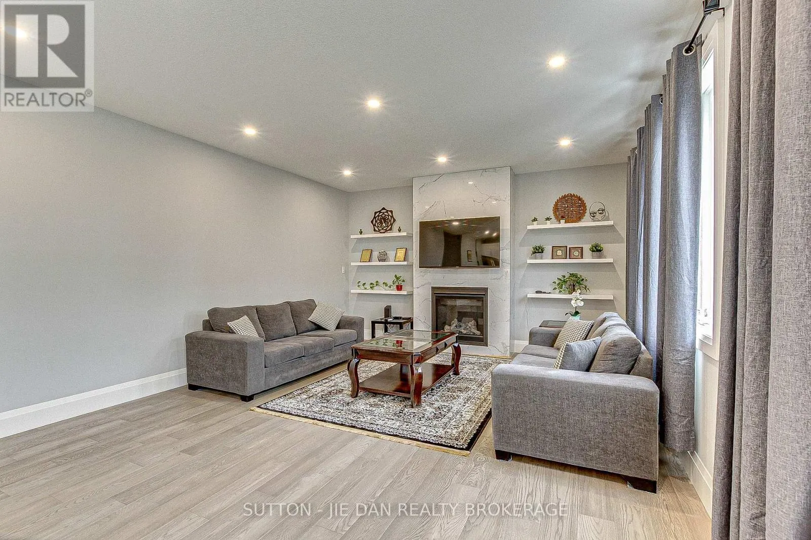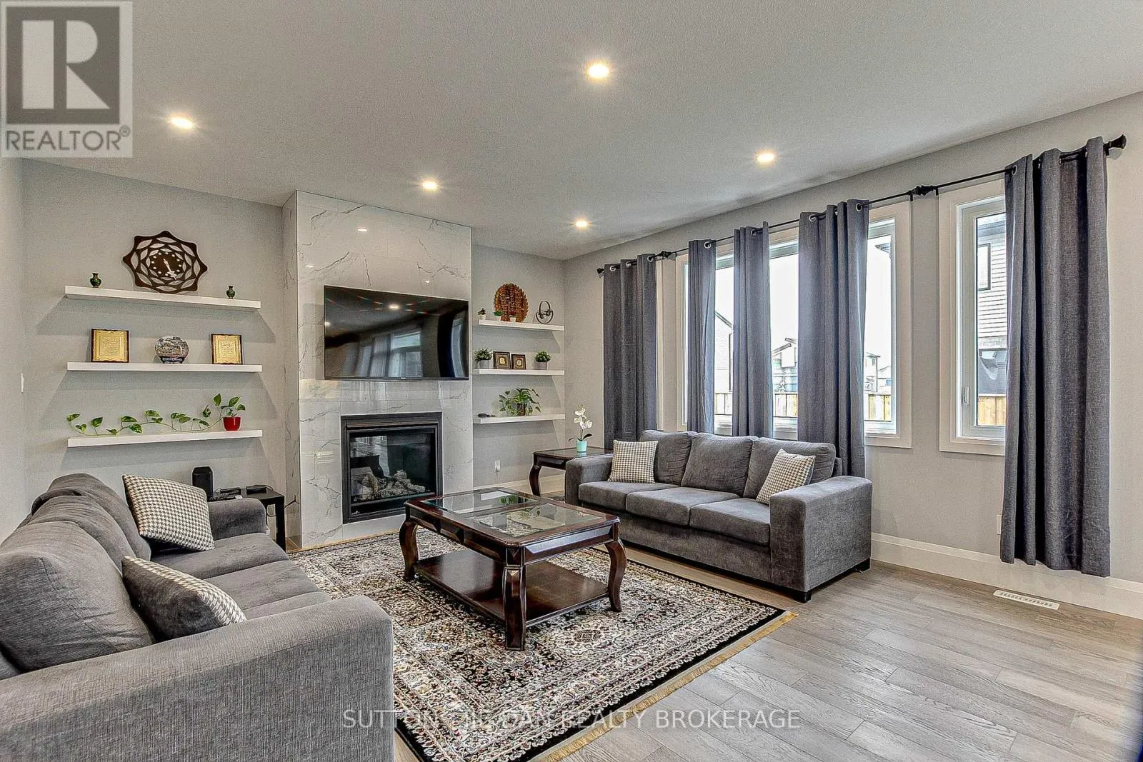 BENNER BLVD/ LOCKY LANE Only 4 years old! 2656 SqFt plus 1152 SqFt fully finished basement! This beautiful home located on a quiet crescent features a concrete front porch, concrete driveway and a concrete path to the backyard along the left side of the house. Enter through a welcoming foyer next to a spacious dining room before entering a designer kitchen with a butlers pantry. A huge living room with a cozy fireplace opens up from the kitchen. The second floor includes four bedrooms as well as a family/media room. A luxury ensuite and spacious his and hers walk-in-closets compliment the primary bedroom. The other three bedrooms boast their own walk-in-closets. The second floor bathroom consists of two sinks and plenty of space. The main floor has a spacious laundry room. Separate entrance to the fully finished basement with two bedrooms, recreation room, and bathroom. Kilworth Heights West is the perfect union of urban and rural living. A fitness facility, a community centre for outdoor team sports, scenery trails in Komoka Provincial Park and along Thames River, grocery store, LCBO, and various retail stores are only 3-4 minutes away. Quick access to Highway 402. Call now for your showing (id:27476)