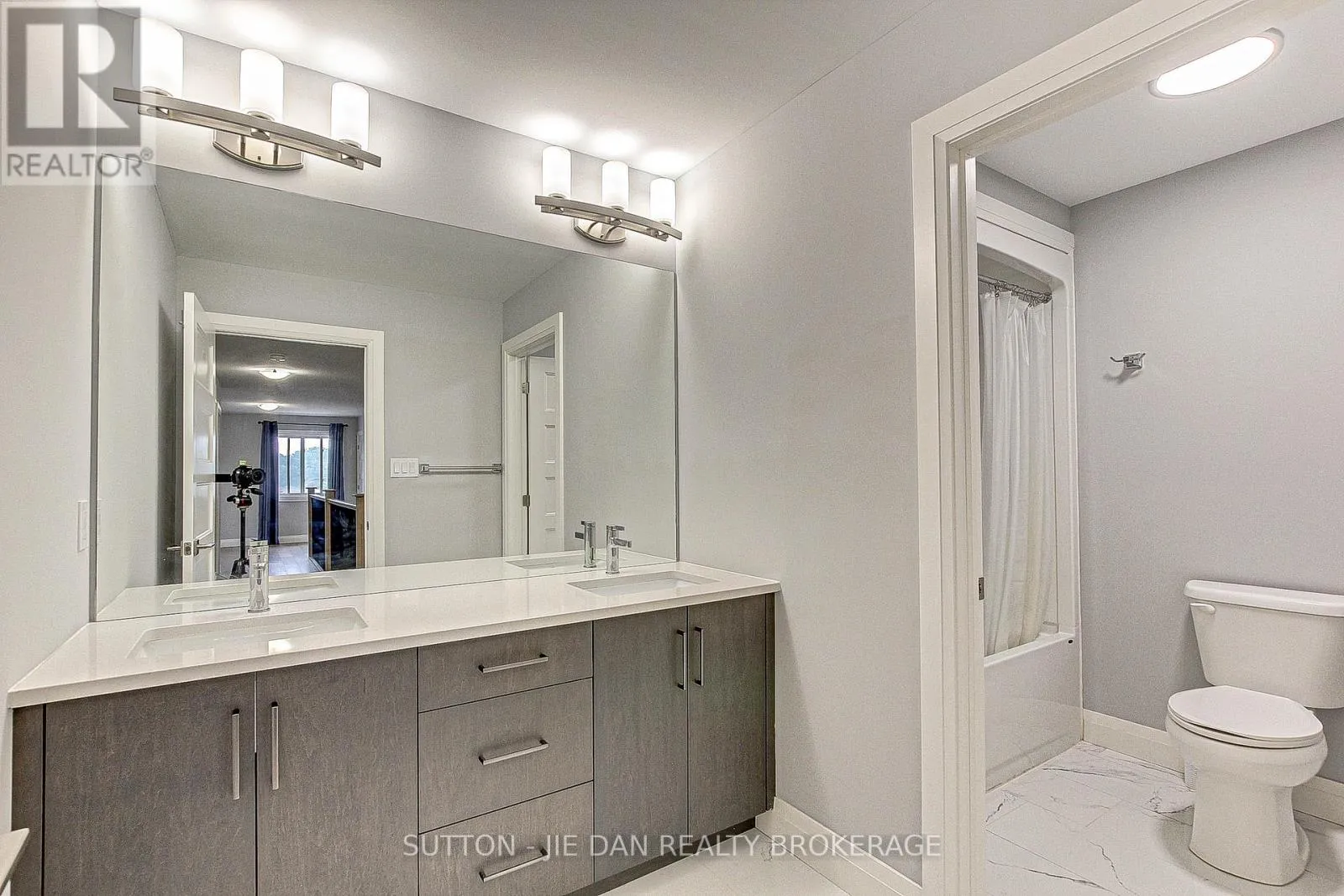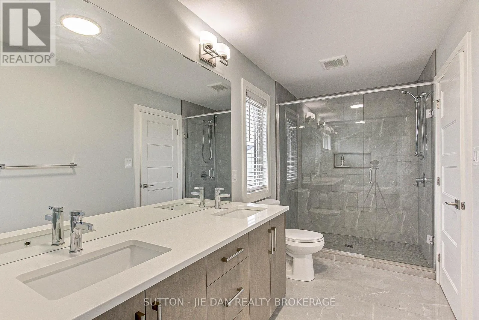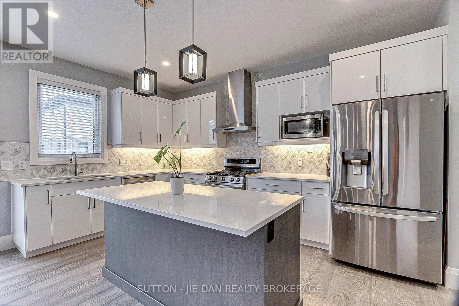 BENNER BLVD/ LOCKY LANE Only 4 years old! 2656 SqFt plus 1152 SqFt fully finished basement! This beautiful home located on a quiet crescent features a concrete front porch, concrete driveway and a concrete path to the backyard along the left side of the house. Enter through a welcoming foyer next to a spacious dining room before entering a designer kitchen with a butlers pantry. A huge living room with a cozy fireplace opens up from the kitchen. The second floor includes four bedrooms as well as a family/media room. A luxury ensuite and spacious his and hers walk-in-closets compliment the primary bedroom. The other three bedrooms boast their own walk-in-closets. The second floor bathroom consists of two sinks and plenty of space. The main floor has a spacious laundry room. Separate entrance to the fully finished basement with two bedrooms, recreation room, and bathroom. Kilworth Heights West is the perfect union of urban and rural living. A fitness facility, a community centre for outdoor team sports, scenery trails in Komoka Provincial Park and along Thames River, grocery store, LCBO, and various retail stores are only 3-4 minutes away. Quick access to Highway 402. Call now for your showing (id:27476)