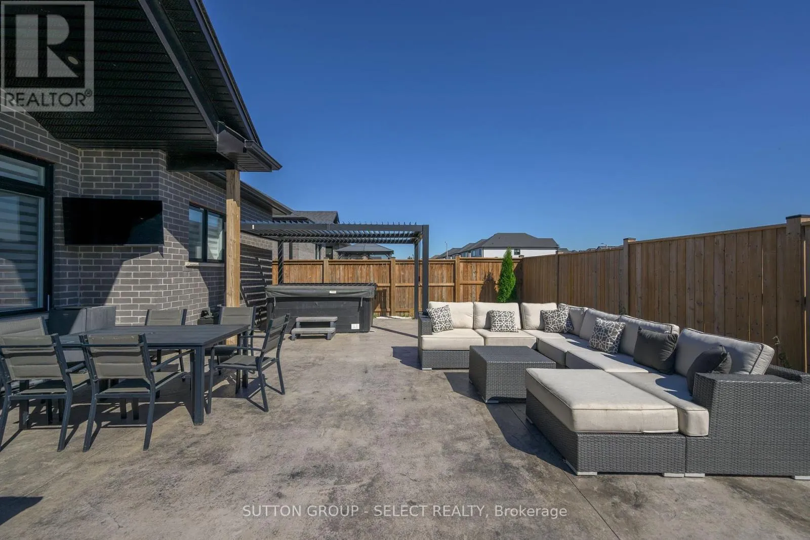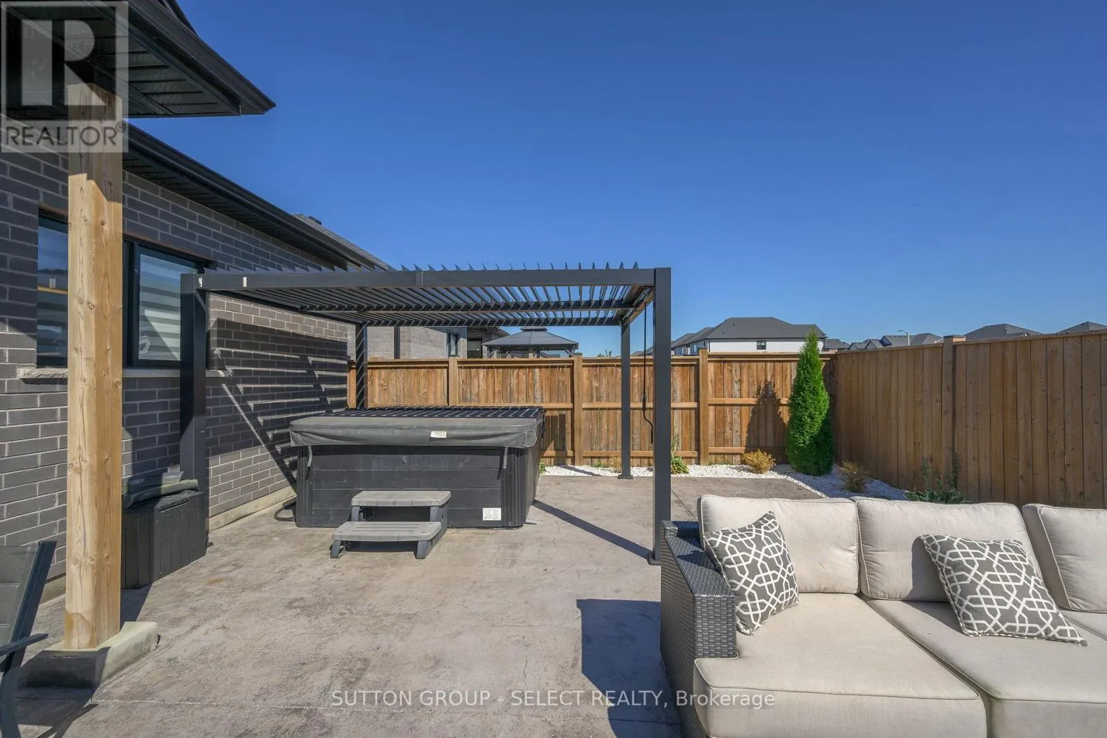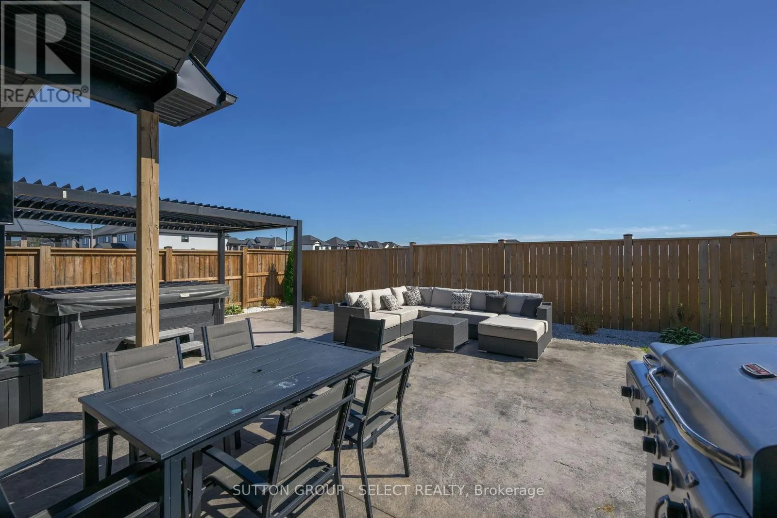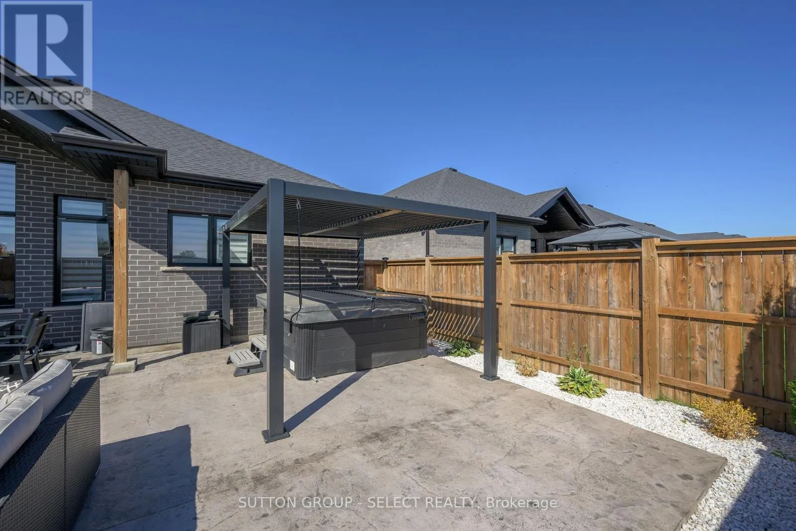 Cross Streets: Daventry Way & Allister Rd. ** Directions: From Glendon turn SE onto Crestview, Then turn SW onto Daventry, Then turn NW into the complex. Unit is on the Left when entering complex past the visitor parking spots. Exceptional Living in Tranquil Komoka! Welcome to 383 Daventry Way #77, an upscale vacant land condo in a desirable community just west of London, Ontario. This residence has been transformed with custom upgrades, designer finishes, and a smart layout that blends luxury with effortless living. Enter through a bright foyer with soaring ceilings, leading to an open-concept living space ideal for both daily living and entertaining. The gourmet kitchen features quartz countertops, premium Bosch appliances, and a floor-to-ceiling tiled pantry. The vaulted living room is a showpiece with a dramatic stone fireplace, mounted TV, and seamless sightlines from the kitchen island. The main-floor primary suite offers elegance and comfort with tray ceilings, a walk-in closet, and a spa-like six-piece ensuite complete with a deep soaker tub. Step outside to your private backyard oasis with professional landscaping, an expansive stamped concrete patio, gas BBQ, lounge and dining areas, hot tub, and outdoor television - perfect for year-round enjoyment. The fully finished lower level adds versatility with a spacious second living room, three bedrooms, a three-piece bath, and a stunning kitchenette with granite counters, double sink, two bar-sized fridges, and an island offering ample prep and storage space. This rare property combines the tranquility of Komoka with the sophistication of a fully upgraded luxury home. (id:27476)