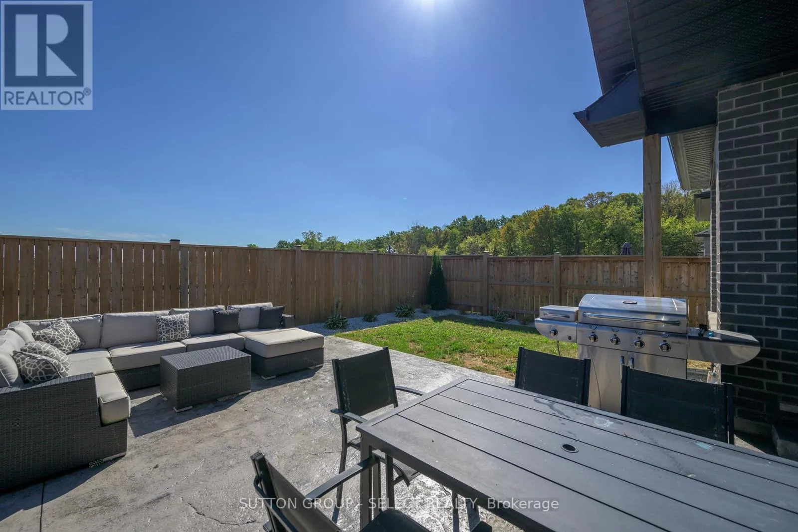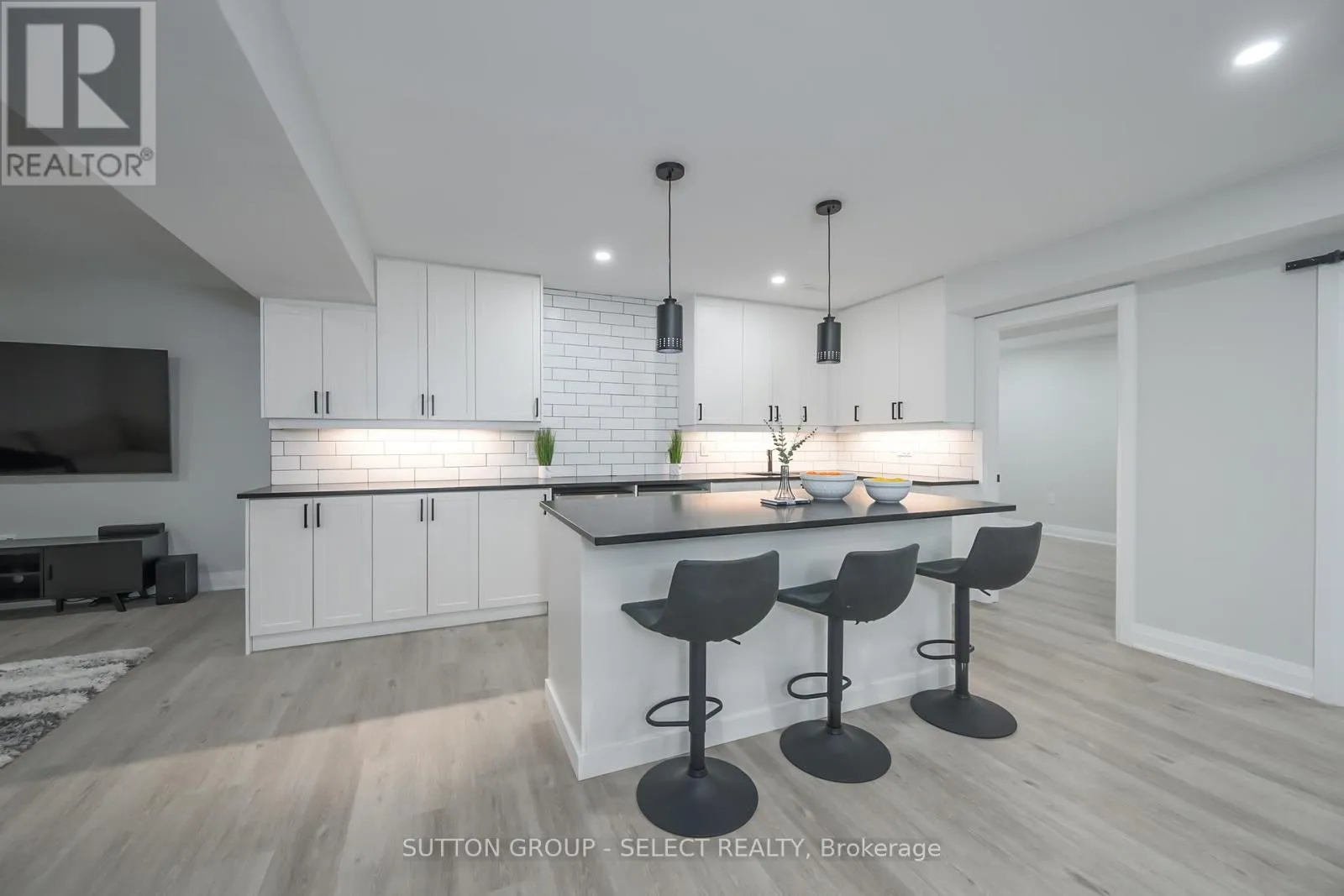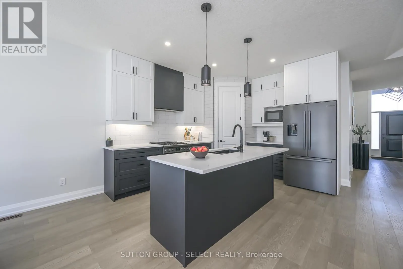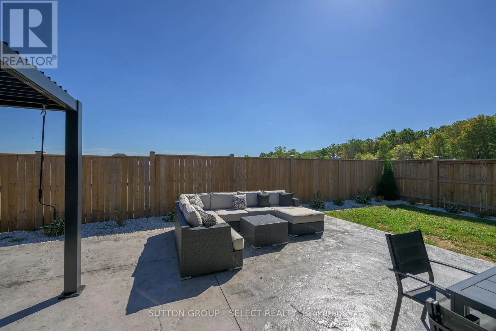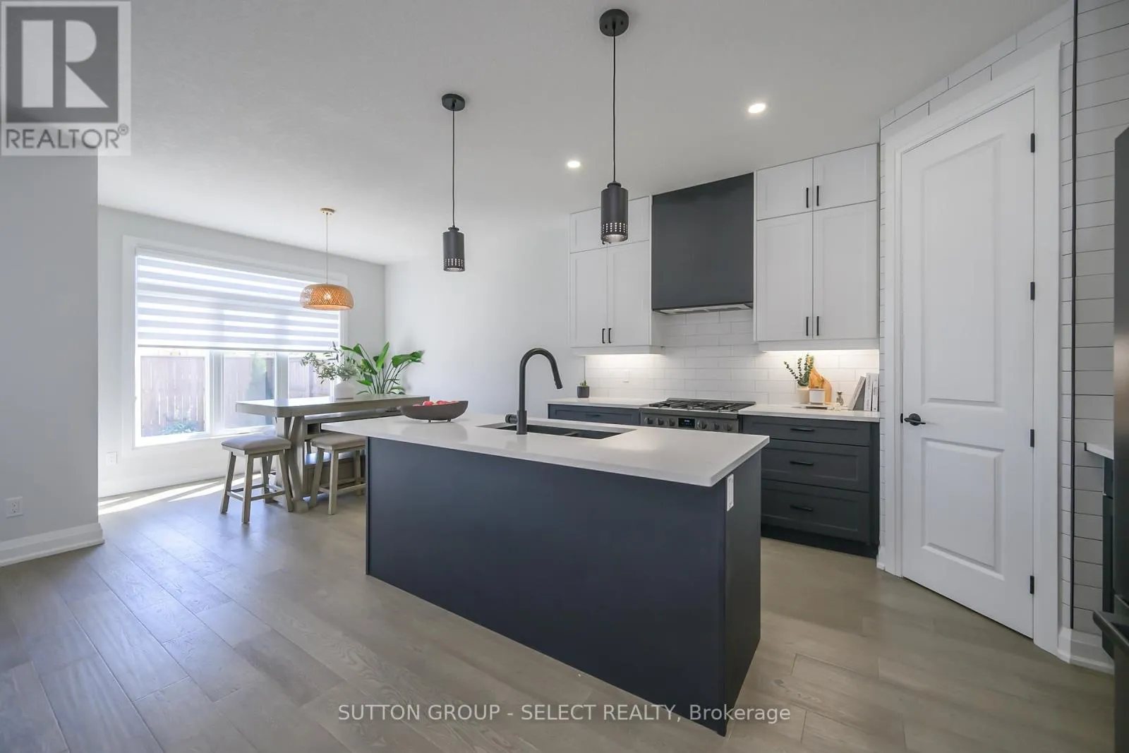 Cross Streets: Daventry Way & Allister Rd. ** Directions: From Glendon turn SE onto Crestview, Then turn SW onto Daventry, Then turn NW into the complex. Unit is on the Left when entering complex past the visitor parking spots. Exceptional Living in Tranquil Komoka! Welcome to 383 Daventry Way #77, an upscale vacant land condo in a desirable community just west of London, Ontario. This residence has been transformed with custom upgrades, designer finishes, and a smart layout that blends luxury with effortless living. Enter through a bright foyer with soaring ceilings, leading to an open-concept living space ideal for both daily living and entertaining. The gourmet kitchen features quartz countertops, premium Bosch appliances, and a floor-to-ceiling tiled pantry. The vaulted living room is a showpiece with a dramatic stone fireplace, mounted TV, and seamless sightlines from the kitchen island. The main-floor primary suite offers elegance and comfort with tray ceilings, a walk-in closet, and a spa-like six-piece ensuite complete with a deep soaker tub. Step outside to your private backyard oasis with professional landscaping, an expansive stamped concrete patio, gas BBQ, lounge and dining areas, hot tub, and outdoor television - perfect for year-round enjoyment. The fully finished lower level adds versatility with a spacious second living room, three bedrooms, a three-piece bath, and a stunning kitchenette with granite counters, double sink, two bar-sized fridges, and an island offering ample prep and storage space. This rare property combines the tranquility of Komoka with the sophistication of a fully upgraded luxury home. (id:27476)