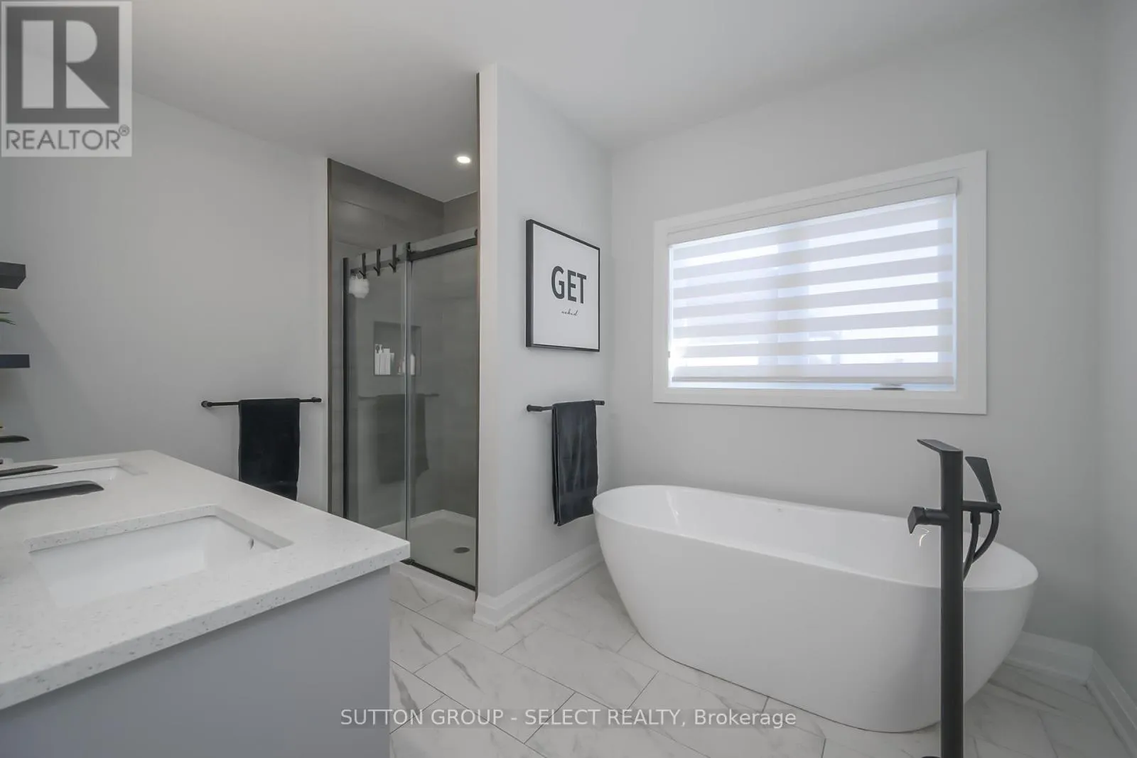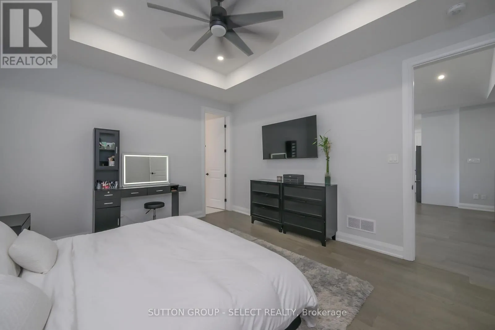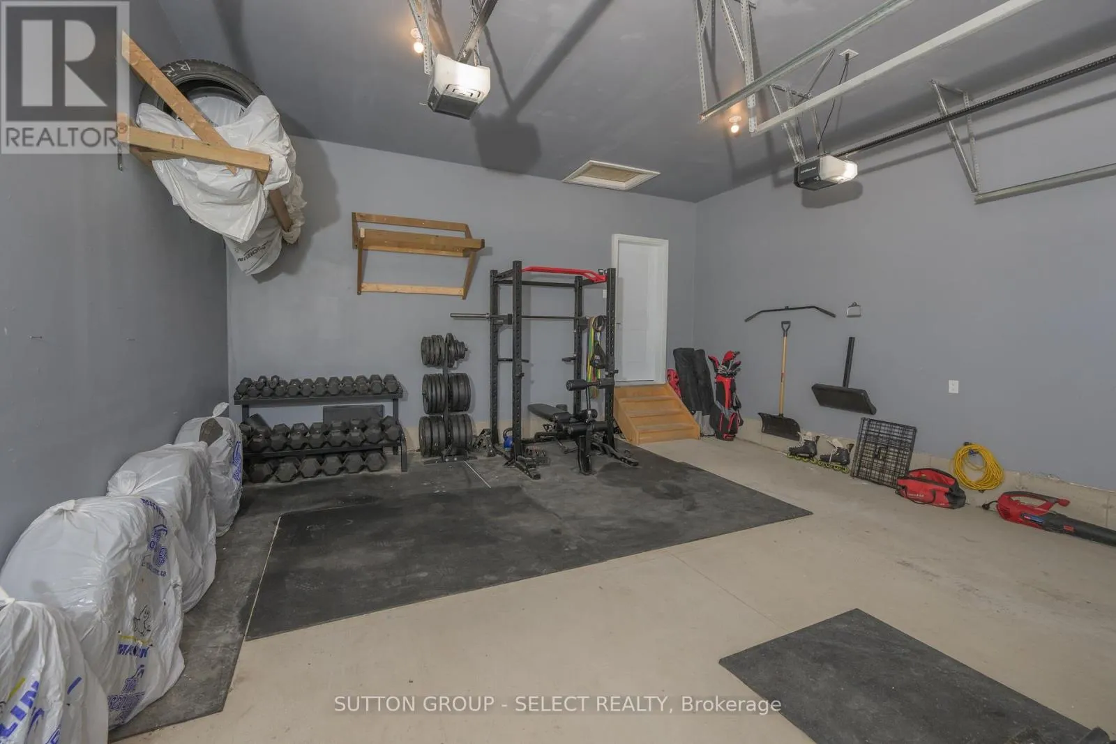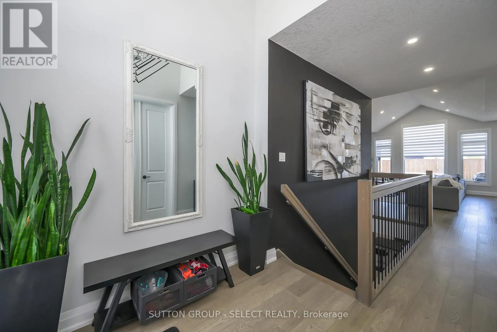 Cross Streets: Daventry Way & Allister Rd. ** Directions: From Glendon turn SE onto Crestview, Then turn SW onto Daventry, Then turn NW into the complex. Unit is on the Left when entering complex past the visitor parking spots. Exceptional Living in Tranquil Komoka! Welcome to 383 Daventry Way #77, an upscale vacant land condo in a desirable community just west of London, Ontario. This residence has been transformed with custom upgrades, designer finishes, and a smart layout that blends luxury with effortless living. Enter through a bright foyer with soaring ceilings, leading to an open-concept living space ideal for both daily living and entertaining. The gourmet kitchen features quartz countertops, premium Bosch appliances, and a floor-to-ceiling tiled pantry. The vaulted living room is a showpiece with a dramatic stone fireplace, mounted TV, and seamless sightlines from the kitchen island. The main-floor primary suite offers elegance and comfort with tray ceilings, a walk-in closet, and a spa-like six-piece ensuite complete with a deep soaker tub. Step outside to your private backyard oasis with professional landscaping, an expansive stamped concrete patio, gas BBQ, lounge and dining areas, hot tub, and outdoor television - perfect for year-round enjoyment. The fully finished lower level adds versatility with a spacious second living room, three bedrooms, a three-piece bath, and a stunning kitchenette with granite counters, double sink, two bar-sized fridges, and an island offering ample prep and storage space. This rare property combines the tranquility of Komoka with the sophistication of a fully upgraded luxury home. (id:27476)