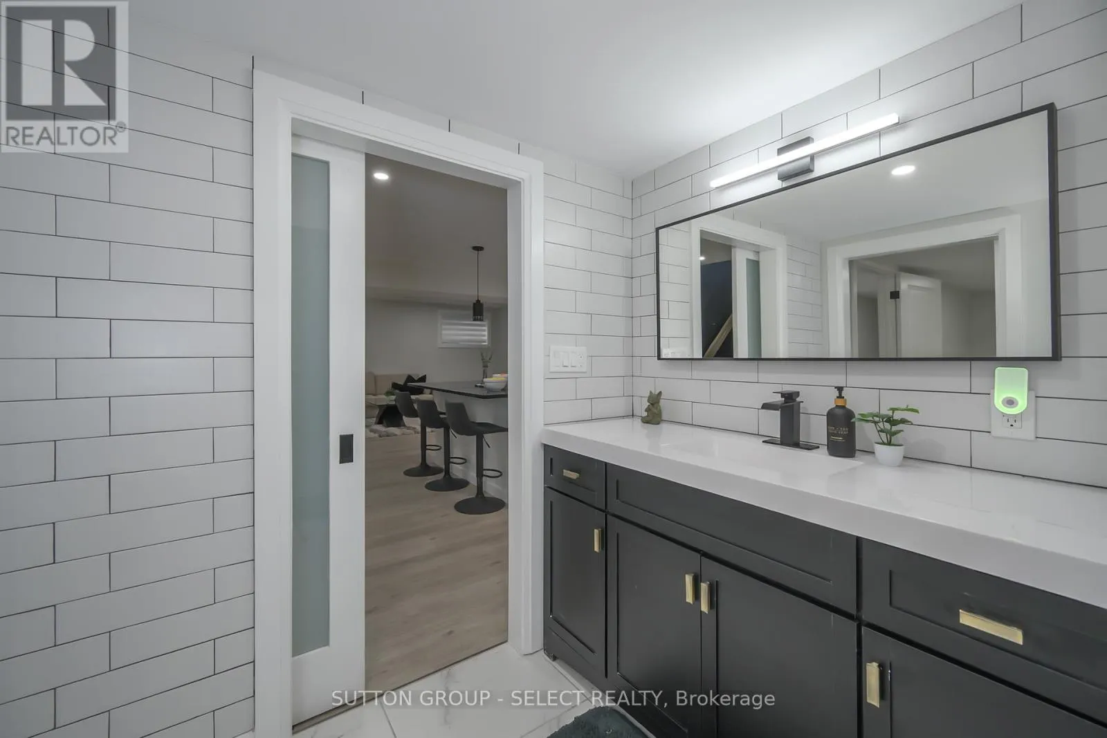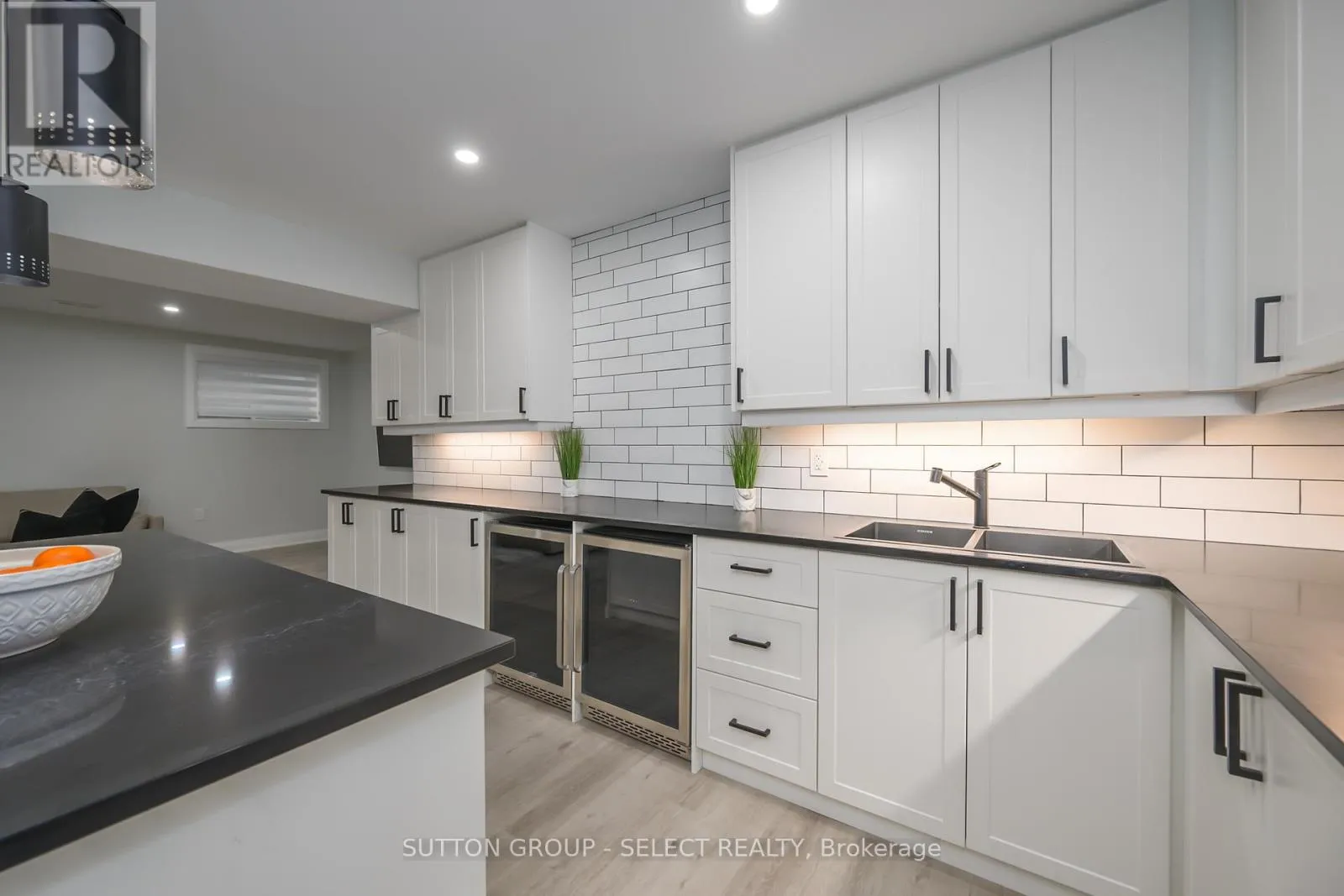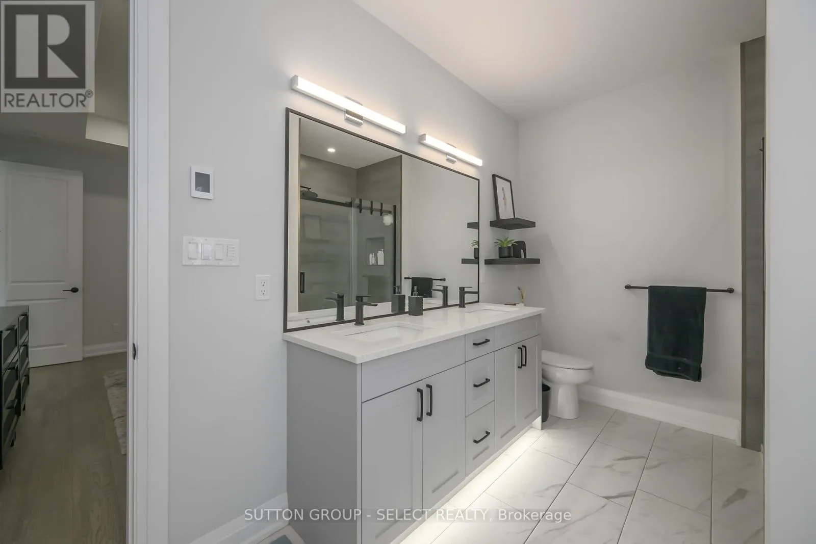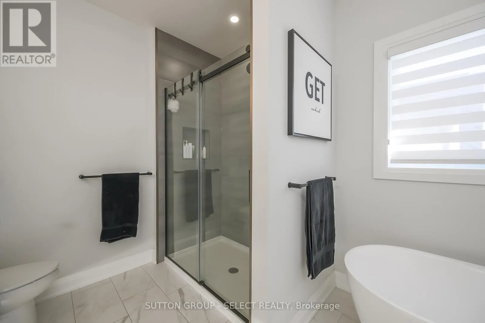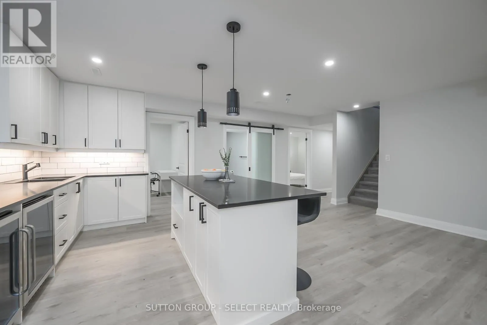 Cross Streets: Daventry Way & Allister Rd. ** Directions: From Glendon turn SE onto Crestview, Then turn SW onto Daventry, Then turn NW into the complex. Unit is on the Left when entering complex past the visitor parking spots. Exceptional Living in Tranquil Komoka! Welcome to 383 Daventry Way #77, an upscale vacant land condo in a desirable community just west of London, Ontario. This residence has been transformed with custom upgrades, designer finishes, and a smart layout that blends luxury with effortless living. Enter through a bright foyer with soaring ceilings, leading to an open-concept living space ideal for both daily living and entertaining. The gourmet kitchen features quartz countertops, premium Bosch appliances, and a floor-to-ceiling tiled pantry. The vaulted living room is a showpiece with a dramatic stone fireplace, mounted TV, and seamless sightlines from the kitchen island. The main-floor primary suite offers elegance and comfort with tray ceilings, a walk-in closet, and a spa-like six-piece ensuite complete with a deep soaker tub. Step outside to your private backyard oasis with professional landscaping, an expansive stamped concrete patio, gas BBQ, lounge and dining areas, hot tub, and outdoor television - perfect for year-round enjoyment. The fully finished lower level adds versatility with a spacious second living room, three bedrooms, a three-piece bath, and a stunning kitchenette with granite counters, double sink, two bar-sized fridges, and an island offering ample prep and storage space. This rare property combines the tranquility of Komoka with the sophistication of a fully upgraded luxury home. (id:27476)