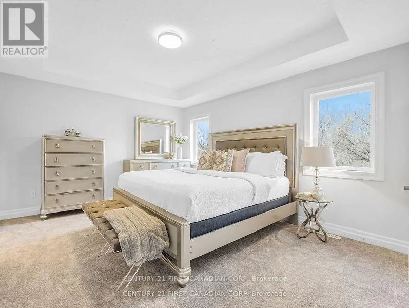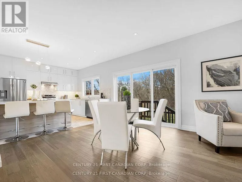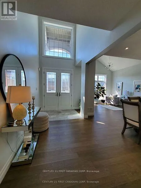 Cross Streets: OXBOW DRIVE. ** Directions: Northeast on Oxbow Dr toward Komoka Rd, Left on Union Ave, property on the right. Your Komoka dream home! 3150 sqft 2-stry incl 900 sqft finished lower lev in a park-like setting. Freshly painted and brand new carpets, it offers 4+1 bedrooms, 3+1 bathrooms, attached 2-car garage, a large deck, and fenced back yard Backing Onto Mature-Treed Greenspace. A soaring 18 ft. high foyer, open to the 2nd floor Juliette balcony, floods the space with natural light. Off the foyer, step into the formal living/dining area, perfect for entertaining. Located at the back, the family room is the heart of this home together with its large gas fireplace open to the bright open-concept kitchen/dining area. The fully-equipped kitchen offers two-tone cabinetry with loads of storage that extends to the adjoining walk-through butler's pantry with access also to the front dining room. Gleaming quartz countertops, stone backsplash, and large windows convey a light and airy space. Clear sightlines from the kitchen through to family room and backyard allow you to interact with everyone while cooking and entertaining. Extend family fun and entertaining to the back deck and yard through the sliding doors off the family room. Extra closets, built-in storage, 2-pc bath, and garage access add comfort and convenience to the main floor. Retreat upstairs to your primary bedroom with luxury spa-like 5-pc ensuite, including double vanity, large glass-doored shower and inviting soaker tub just beyond the walk-in closet and storage area. 3 additional generous-sized bedrooms , 4-pc main bathroom and a 2nd floor laundry complete the upstairs. The finished lower lev offers more space to entertain and unwind with a large flex space tastefully finished with a feature wall and electric fireplace, a generously-sized 5th bedroom, an office/den and a 3-pc bath. This fully landscaped property exudes beauty, comfort, safety and functionality. Komoka boasts top rated schools, recreational, wellness and fitness facilities, as well as pet, dental and other health services and just 20 mins to London! (id:27476)