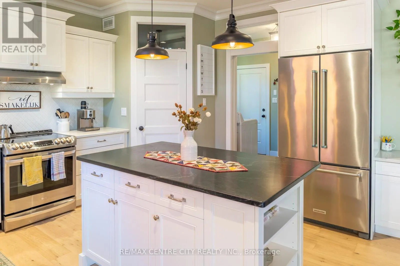 Cross Streets: Duke & Caverhill. ** Directions: Turn West On Duke Off Of Komoka Rd. Turn Right onto Caverhill. House located on East Side Of Road. Tucked into one of Komoka's quieter pockets, this home feels both rooted and welcoming - part of a small community where neighbours wave, trees stretch high, and children still ride bikes down the street.Built by Marquis Homes, its stone and Hardie board exterior gives it a timeless craftsman character, steady and sure against the seasons. A wide covered porch invites you to linger, while the triple car garage offers space for projects, storage, and the easy rhythm of everyday life.Inside, the home opens with light. Large windows frame the outdoors, and 9-foot ceilings lend a sense of calm and airiness. The main floor gathers around a beautiful fireplace with custom built-ins, while the white kitchen feels warm and grounded - a space that brings people together without trying too hard.Upstairs are four comfortable bedrooms, including a spacious primary suite with a walk-in closet and ensuite bath. The fully finished basement adds another layer of living space, featuring a generous rec room and a private guest suite complete with its own ensuite and walk-in closet - ideal for family or visitors.Step outside and you'll find a rare sense of privacy. Mature trees line the yard, wrapping the space in green and quiet, with a covered rear porch perfect for slow mornings or unhurried evenings. It's a peaceful setting, tucked away enough to feel like a retreat, yet only minutes from Komoka's trails, schools, and amenities. ***For more photo and floorplans click multimedia link.*** (id:27476)