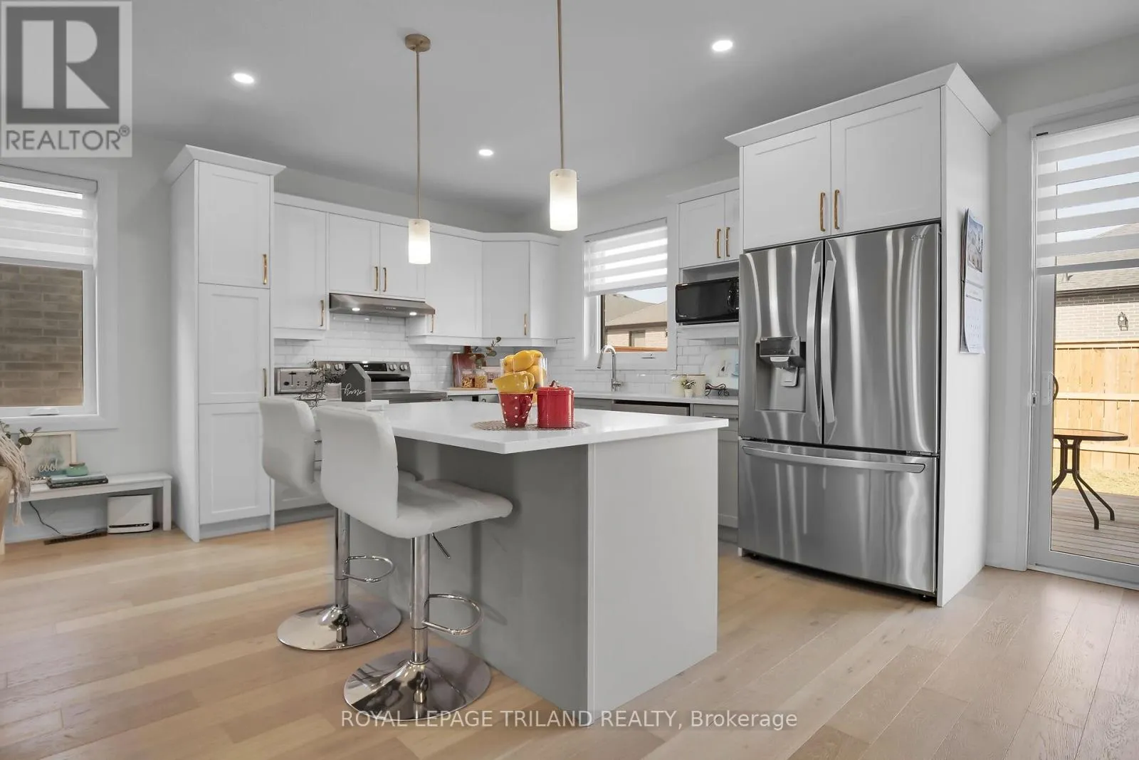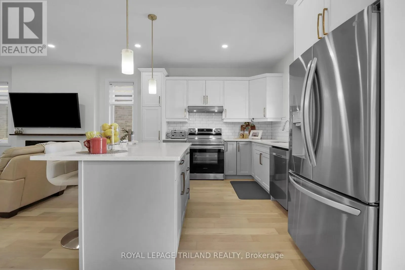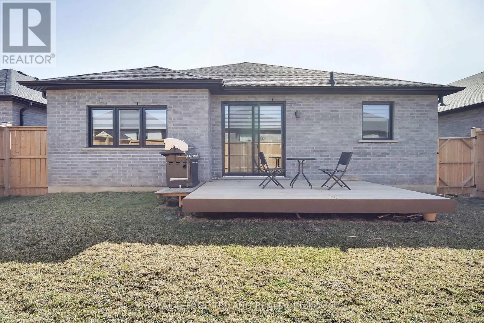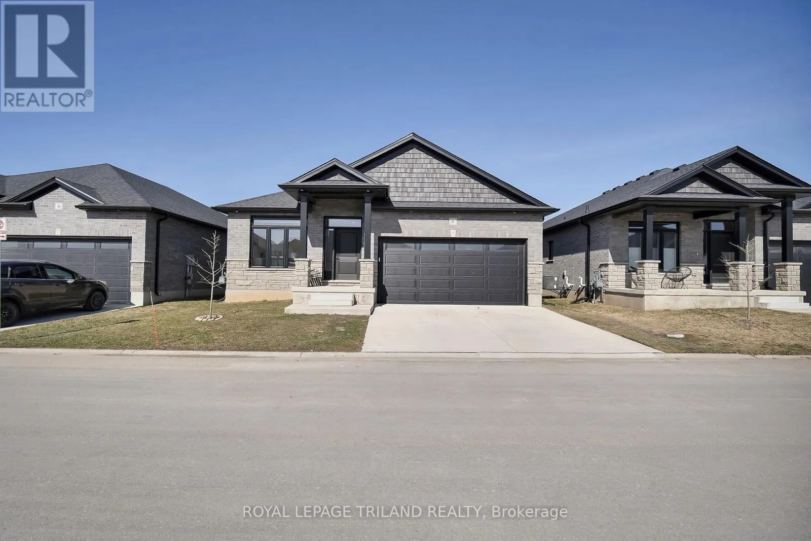 Cross Streets: Glendon Drive. ** Directions: Glendon Dr to Crestview Drive to Daventry Way. Welcome to Daventry's beautiful bungalow nestled in the sought after community of Kilworth Heights.! The Tuscany Model built by Werrington Homes is a stunning one-floor bungalow with 2+2 bedrooms, 3 full bathrooms, a finished basement, and a double car garage. This home boasts the open floor plan, complete with custom upgrades throughout, lots of pot lights, 9 ft ceilings, quartz counters, an open iron railing staircase, and beautiful flooring. The upgraded kitchen features high-end appliances, Soft-Close Cabinetry, backsplash, large islands, and an electric fireplace is included in the living/dining area. The lower level is finished to perfection, with raised ceilings, a huge family room, 2 bedrooms, a 3 pc bath, and ample storage space. Garage door is 8 feet high, and the basement also has a high ceiling, which is a great feature. The garage is pre-wired for an electric vehicle charging station. Located in the desirable and growing community of Kilworth & Komoka, this home is just minutes from London's west end. Easy access to the conveniences of the city as well as the natural beauty of the Komoka Provincial Park. Just steps from Komoka Provincial Park & beautiful river trails, excellent schools, playgrounds, amenities & quick access to HWY 402! Low monthly fee of $83, nice and quite neighbors. This home has it all and move in ready. (id:27476)