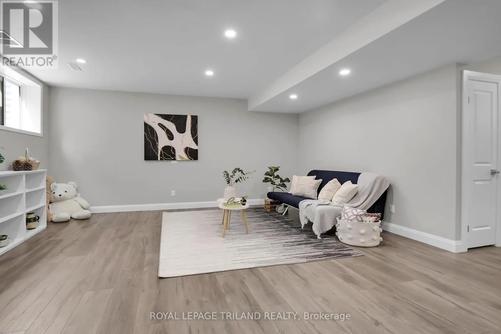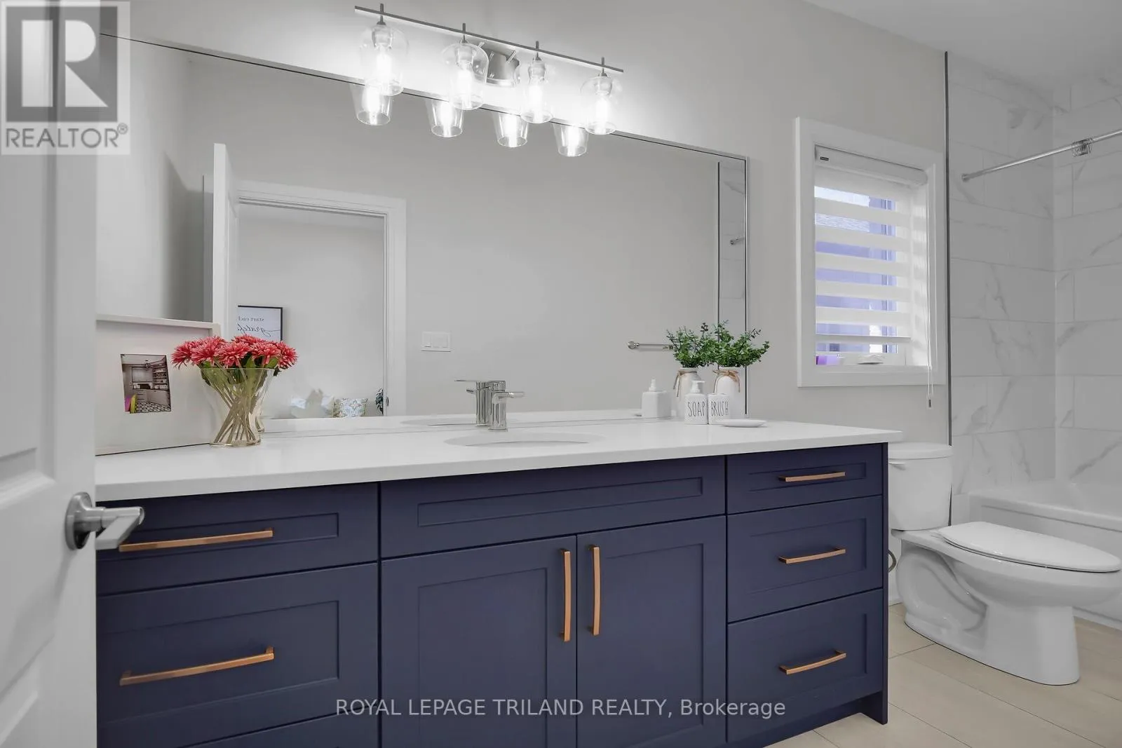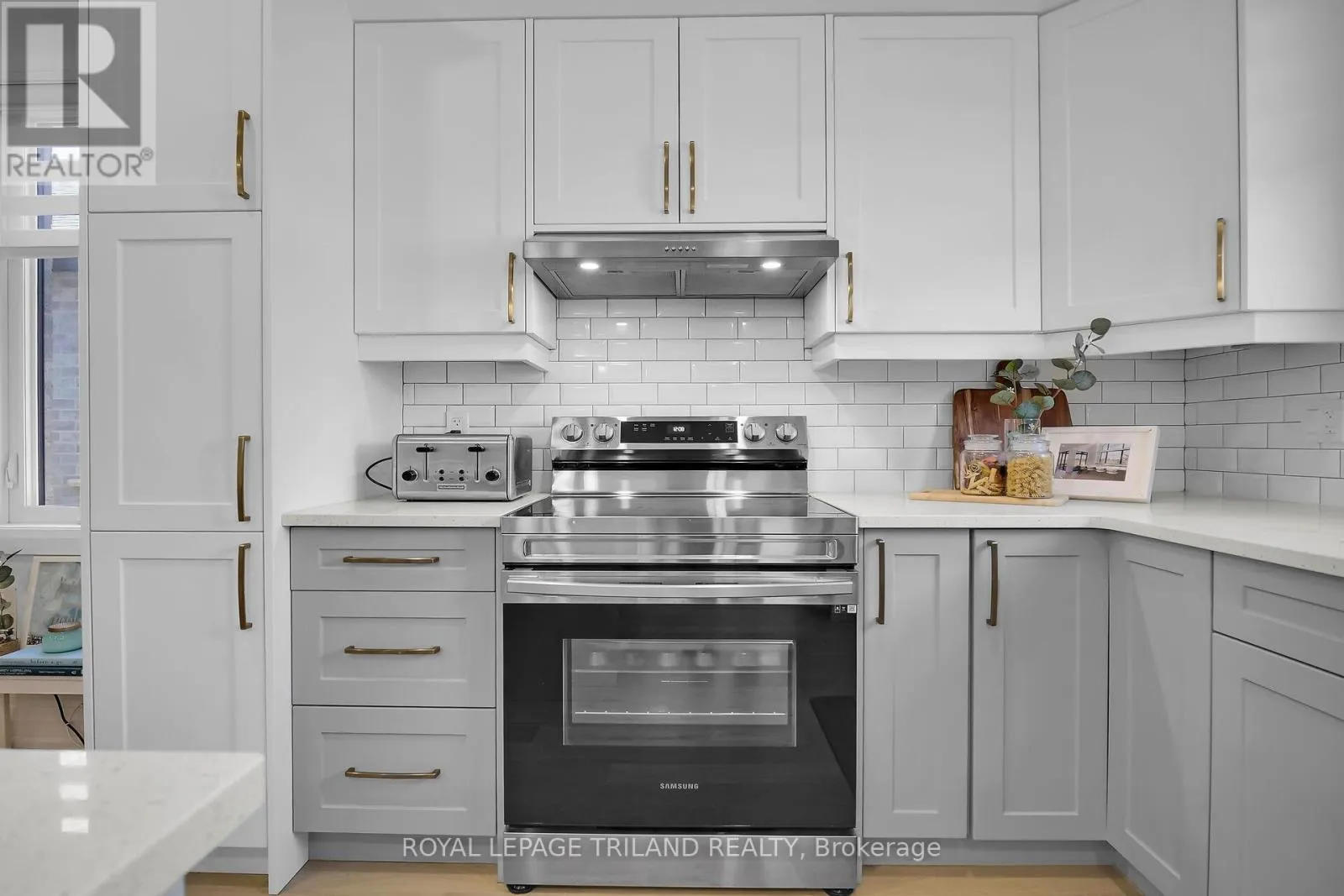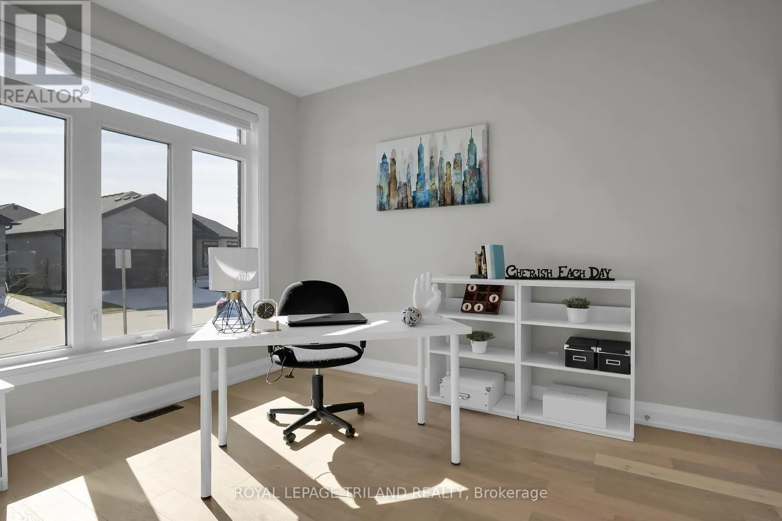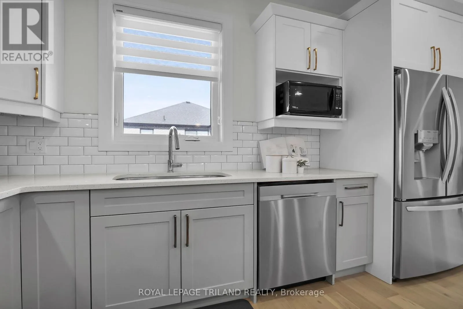 Cross Streets: Glendon Drive. ** Directions: Glendon Dr to Crestview Drive to Daventry Way. Welcome to Daventry's beautiful bungalow nestled in the sought after community of Kilworth Heights.! The Tuscany Model built by Werrington Homes is a stunning one-floor bungalow with 2+2 bedrooms, 3 full bathrooms, a finished basement, and a double car garage. This home boasts the open floor plan, complete with custom upgrades throughout, lots of pot lights, 9 ft ceilings, quartz counters, an open iron railing staircase, and beautiful flooring. The upgraded kitchen features high-end appliances, Soft-Close Cabinetry, backsplash, large islands, and an electric fireplace is included in the living/dining area. The lower level is finished to perfection, with raised ceilings, a huge family room, 2 bedrooms, a 3 pc bath, and ample storage space. Garage door is 8 feet high, and the basement also has a high ceiling, which is a great feature. The garage is pre-wired for an electric vehicle charging station. Located in the desirable and growing community of Kilworth & Komoka, this home is just minutes from London's west end. Easy access to the conveniences of the city as well as the natural beauty of the Komoka Provincial Park. Just steps from Komoka Provincial Park & beautiful river trails, excellent schools, playgrounds, amenities & quick access to HWY 402! Low monthly fee of $83, nice and quite neighbors. This home has it all and move in ready. (id:27476)