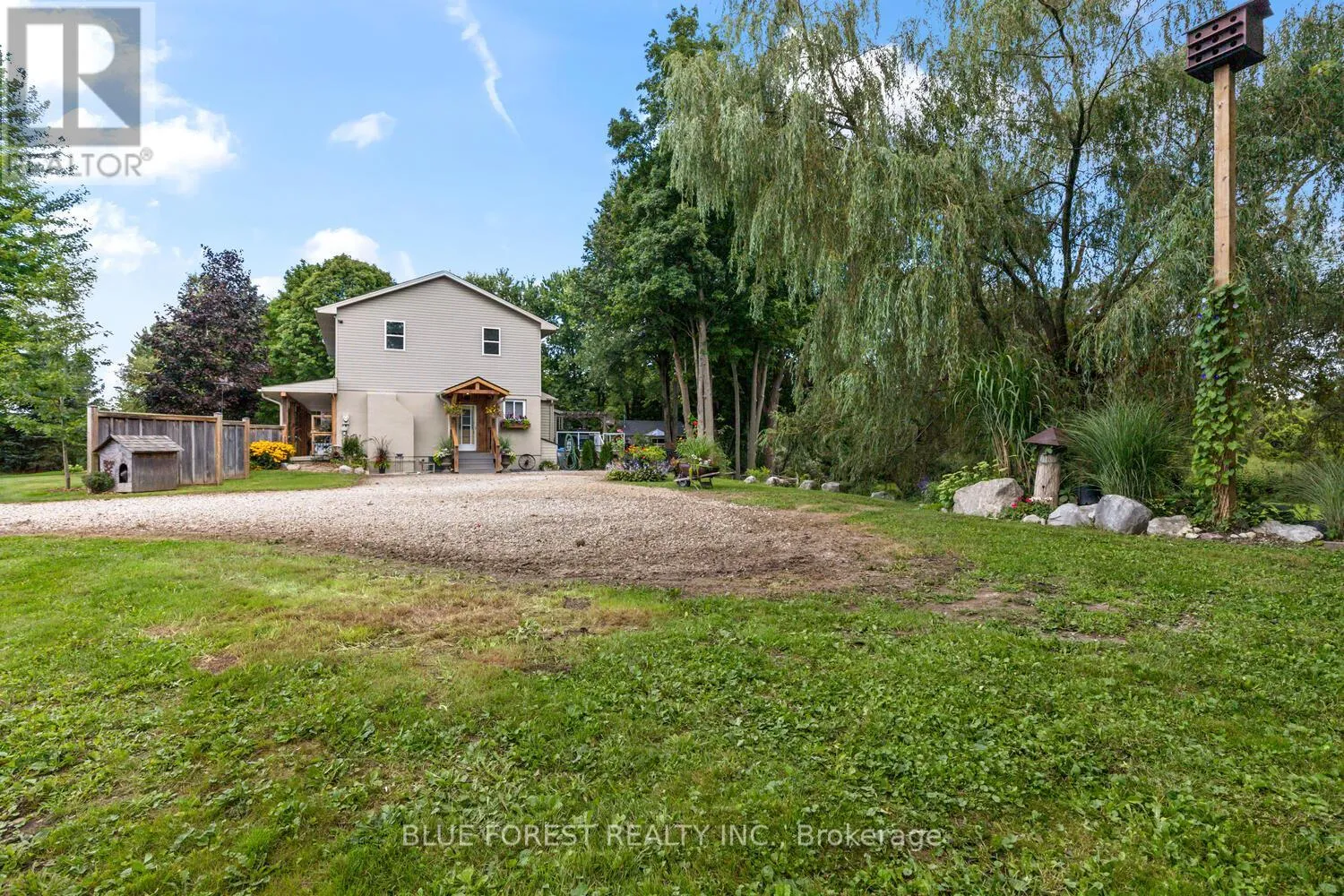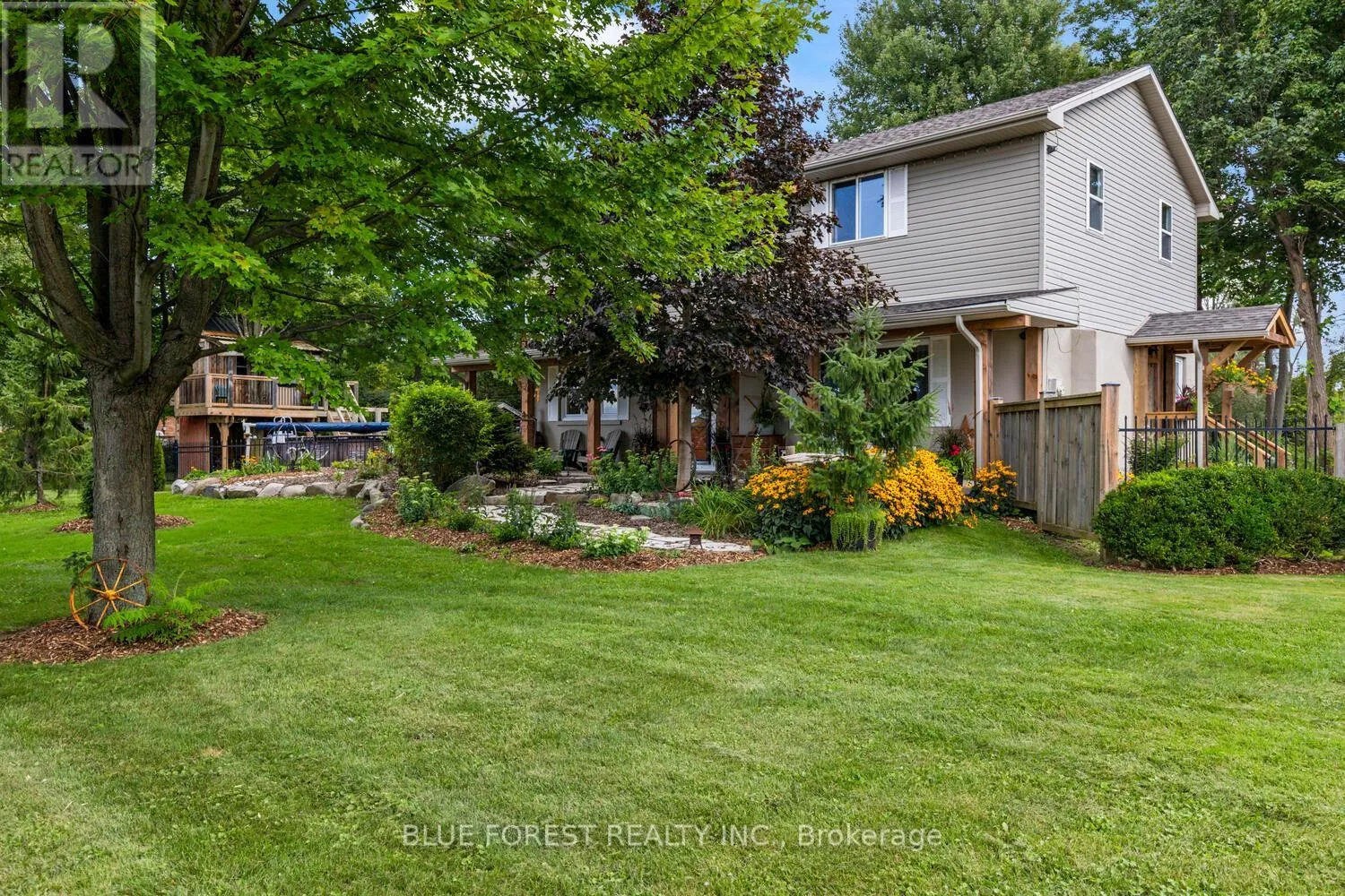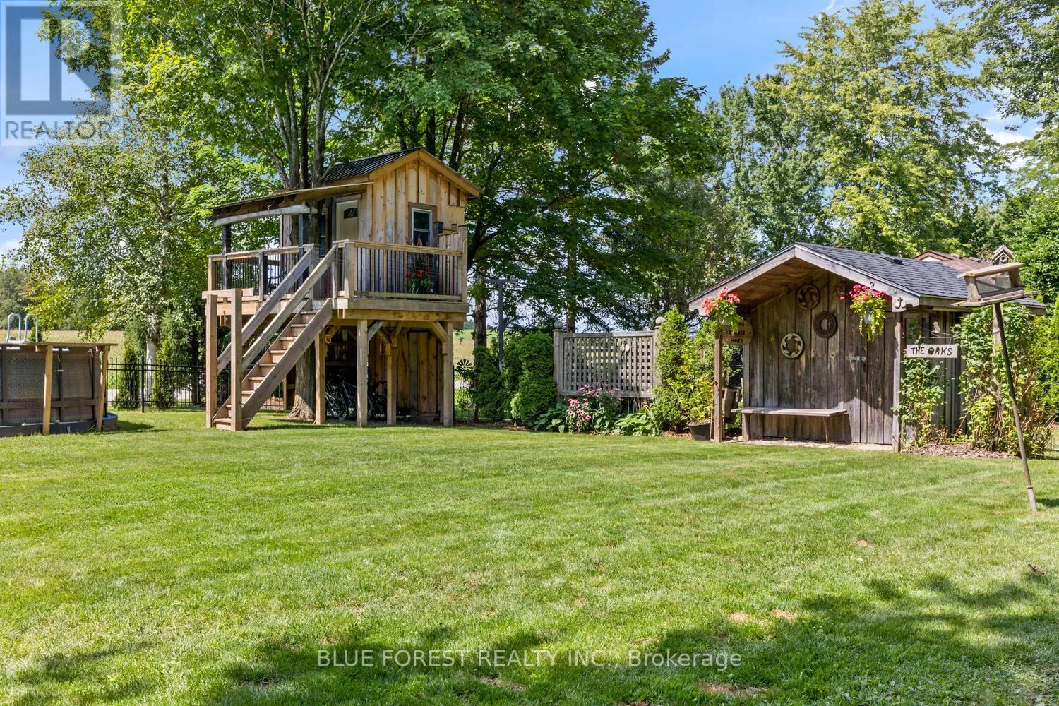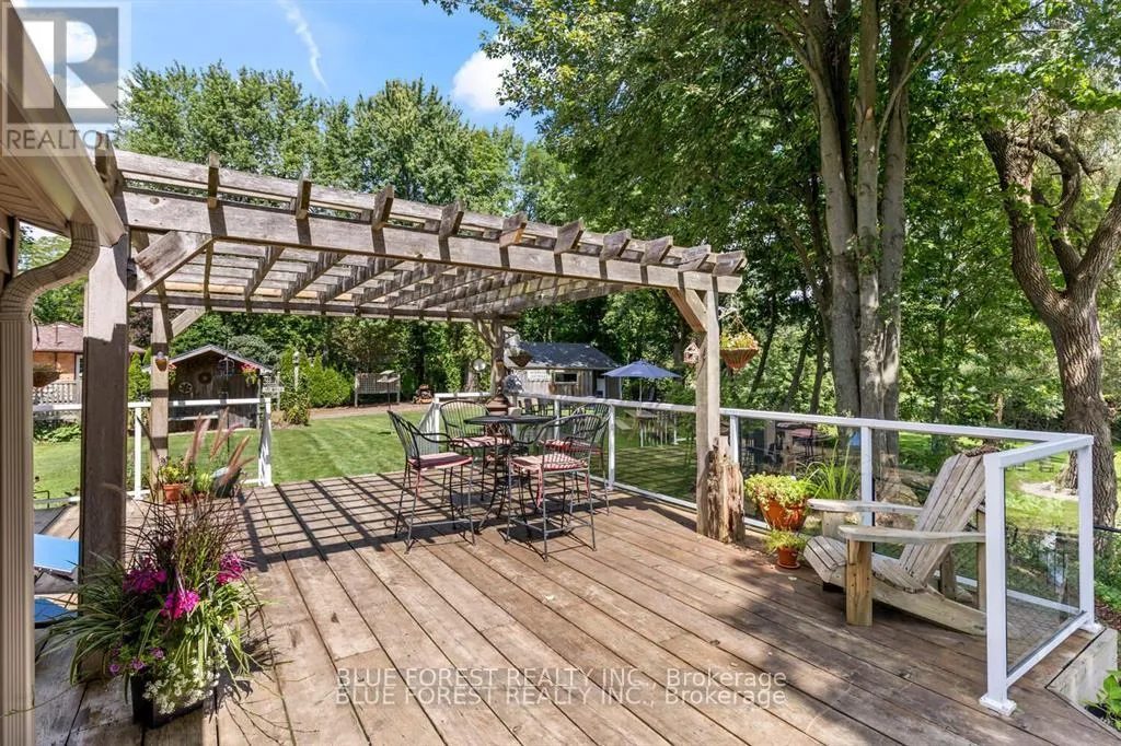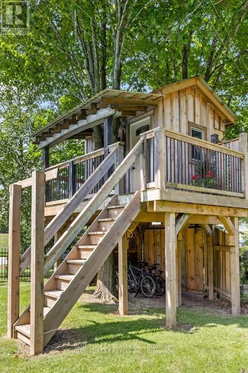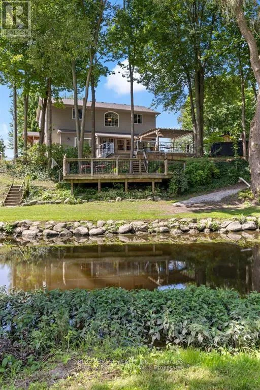 Cross Streets: Eight Mile. ** Directions: Eight Mile Rd & Adelaide. This exceptional 1.57-acre property offers a rare combination of tranquil country living and city convenience. Backing onto a scenic creek, the home's oversized sundeck provides a perfect spot to take in the beautiful, private views.Inside, the home is spacious and well-designed for a family. The country-sized kitchen boasts an abundance of cabinet and counter space. The open-concept living room offers a clear view of the expansive backyard. A large main floor office is ideal for those who work from home, providing a dedicated and quiet workspace.Upstairs, you'll find three large bedrooms. The primary bedroom is a true retreat, featuring a walk-in closet and plenty of space to create a private ensuite. The partially finished basement includes a cozy family room with an electric fireplace and a versatile finished room with an exterior door, perfect for a bedroom, hobby space, or games room. The basement also has ample room for storage and laundry.Outside, the property is just as impressive. A standout feature is the recently built treehouse, a unique space that could be a kids' hangout, a spot for overnight guests, or even an unconventional home office. For the hobbyist or mechanic, a 16' x 24' garage/shop provides plenty of room for projects. With two driveways, there's no shortage of parking for multiple vehicles.This isn't just a house; it's a lifestyle property that offers privacy, space, and unique amenities just minutes from the city. (id:27476)