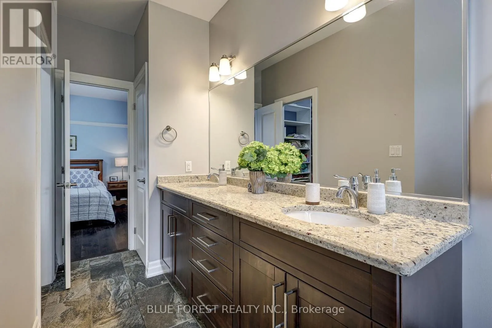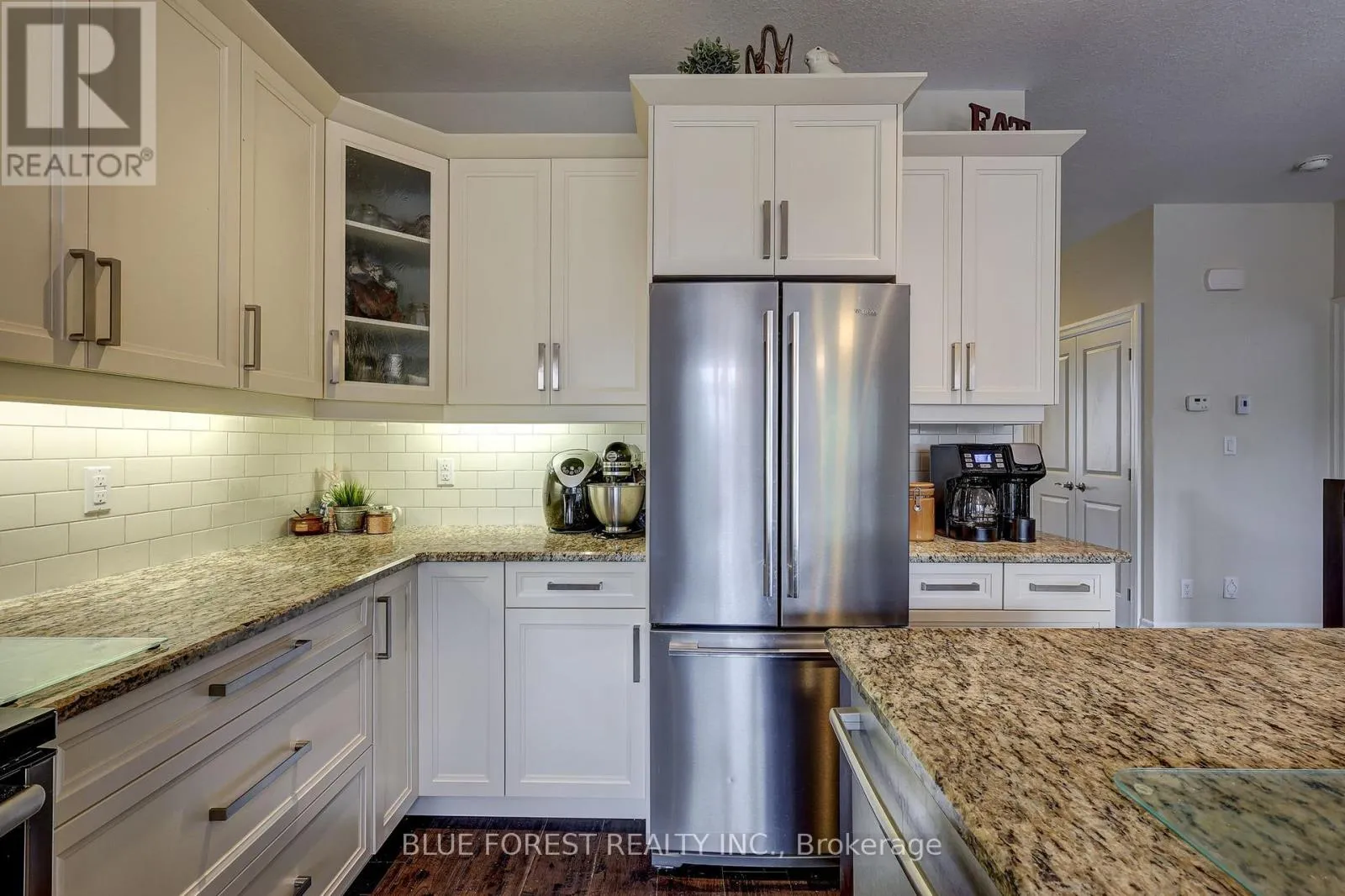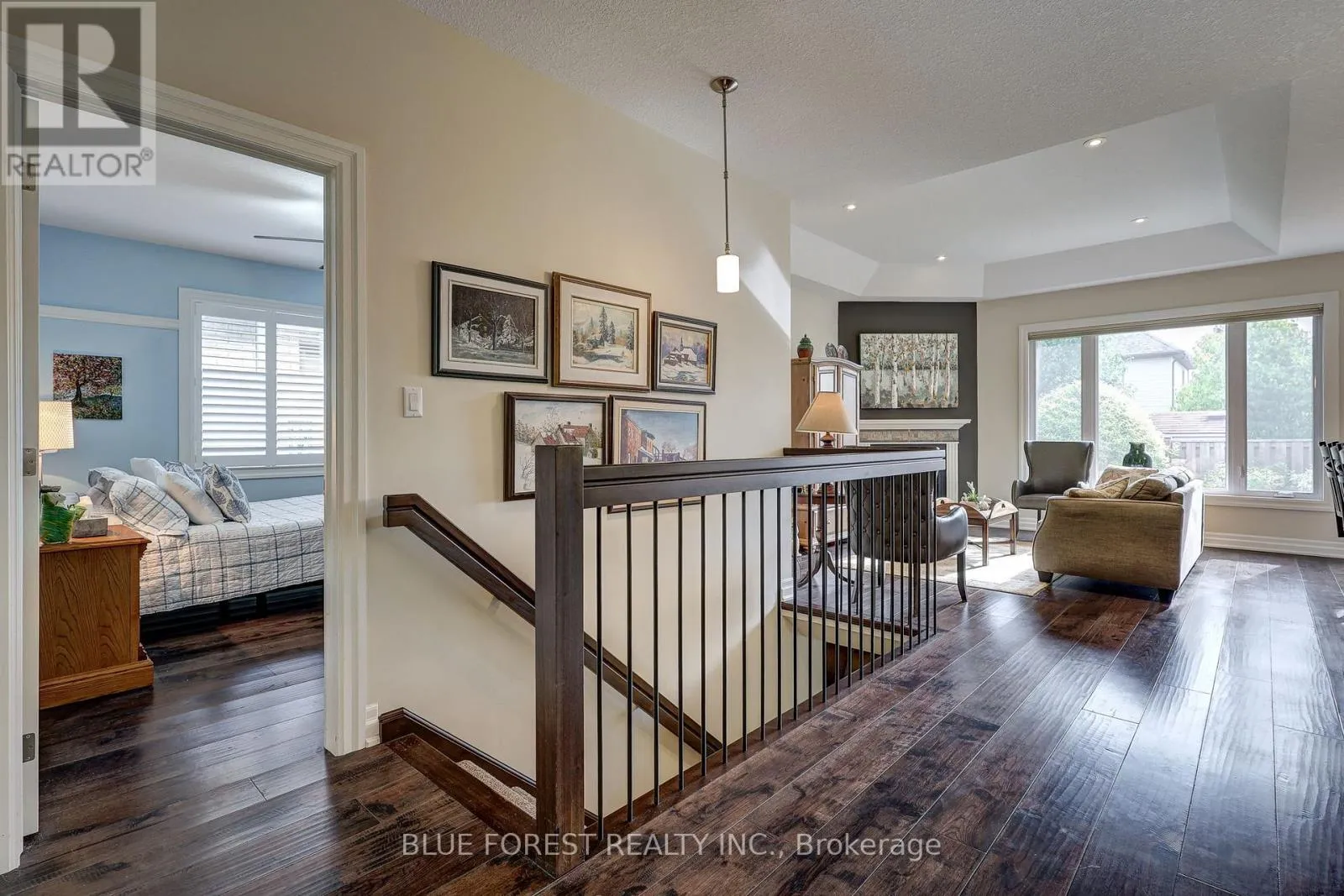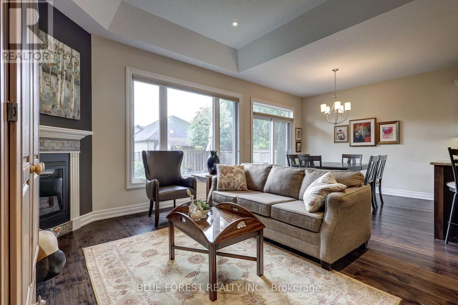 Cross Streets: Jefferies & Glendon. ** Directions: Jeffries & Dausett Dr. Welcome to this beautifully designed detached condo, offering the perfect balance of luxury, comfort, and low-maintenance living in a quiet and highly sought-after neighbourhood. From the moment you step inside, the bright open-concept layout impresses with upgraded moulding, tray ceilings, pot lights, and elegant finishes that elevate the style of the home while creating a warm and welcoming atmosphere. The spacious kitchen features granite counters and flows seamlessly into the dining and living areas, where custom draperies and natural light enhance the inviting feel. Hardwood floors run throughout, complemented by a striking upgraded stair rail system that adds an extra touch of sophistication. The primary suite is a true retreat with a walk-in closet, spa-inspired ensuite with double sinks, and a calm setting for relaxation. Additional bedrooms and the fully finished lower level provide flexibility for family, guests, or a dedicated home office. Central vacuum adds convenience, while tinted back windows and bathrooms offer privacy and energy efficiency. Outside, the private backyard features a beautiful stone patio that sets the stage for morning coffee, evening gatherings, or simply unwinding with a book in a tranquil setting surrounded by nature. With vacant land condo ownership, youll appreciate the benefits of a detached home combined with minimal exterior maintenance, giving you more time to enjoy the lifestyle this property affords. Ideally located just minutes from top-rated schools, shopping, dining, parks, and major highways, this home provides both convenience and elegance. Rarely do properties of this caliber become available, making it an opportunity you will not want to miss. Schedule your private showing today and experience all that this exceptional home has to offer. (id:27476)