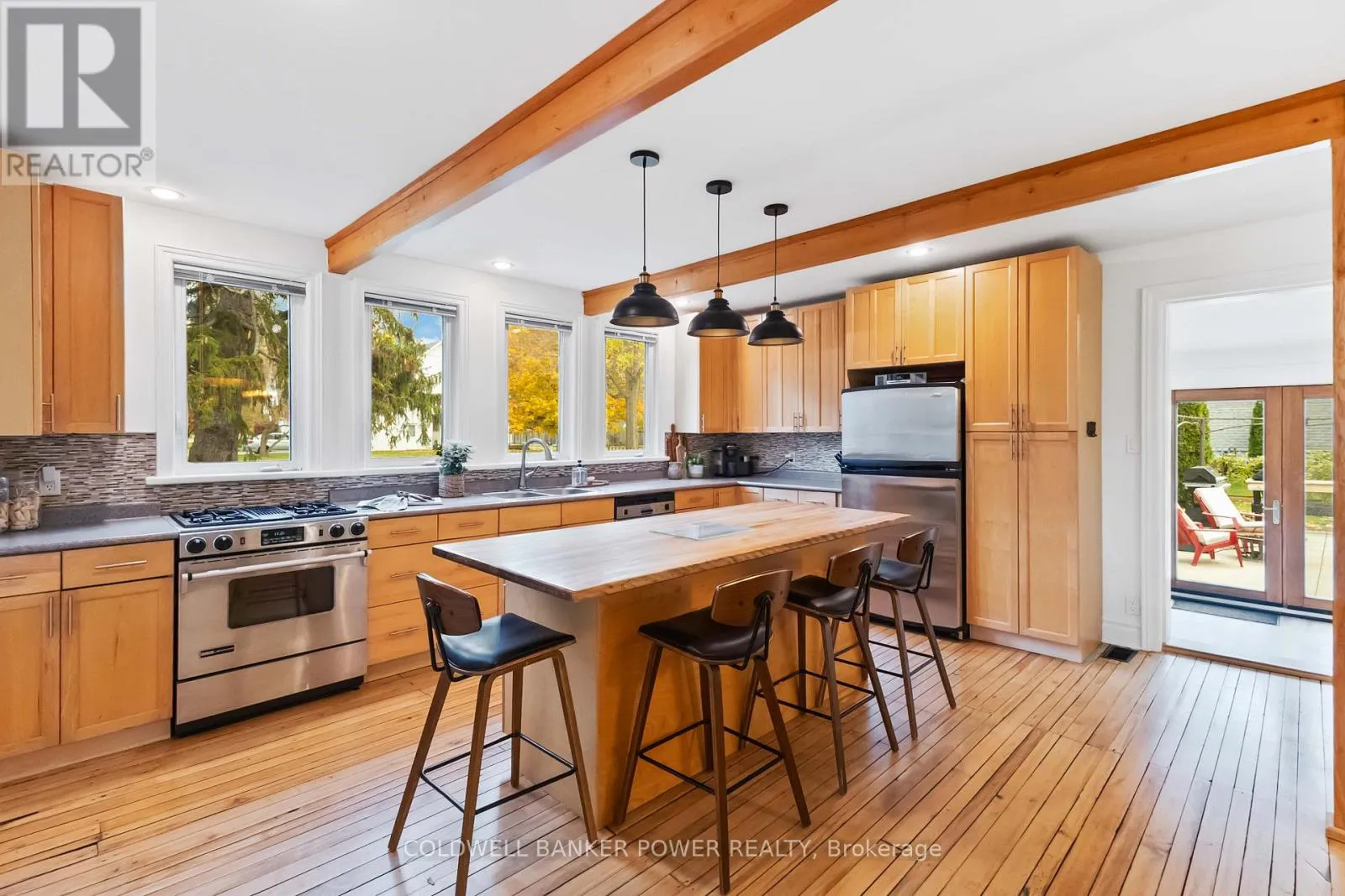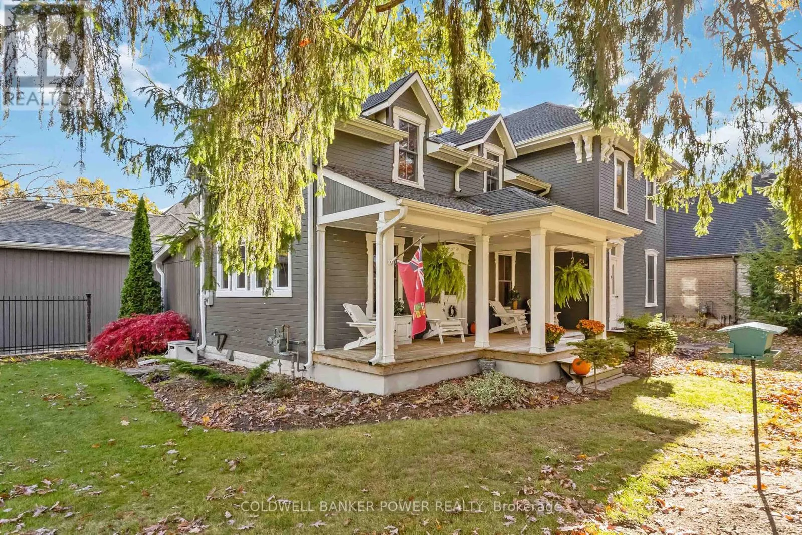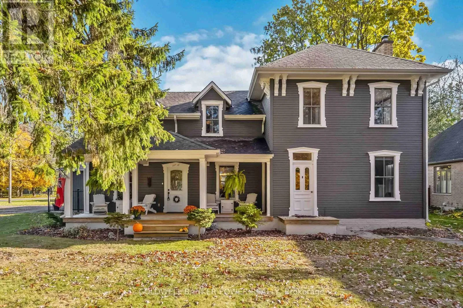 Cross Streets: Gideon Dr & Longwoods Rd. ** Directions: Harris Rd corner of Victoria St. 'One of a kind' CENTURY HOME situated on nearly 1/3 OF AN ACRE with THREE CAR HEATED GARAGE/WORKSHOP. Beautifully updated and loaded with charm and character throughout with high ceilings, heavy moldings, warm original pine and maple floors, woodburning fireplace, charming and huge front porch and more! Spacious floor plan with 4 bedrooms (one room currently used as walk-in closet) and nearly 2500 square feet of living. Expansive country kitchen and eating area. Large Great Room and adjacent sitting room. Huge mud room with main floor laundry. Very private yard and patio. Current owner has updated the insulation, updated electrical to 125 amp service, all windows, exterior painted in 2025, roofing shingles, furnace, newer septic system and weeping bed, natural gas lines for exterior, updated bathrooms, updated plumbing and more! Don't miss out on this special opportunity. (id:27476)