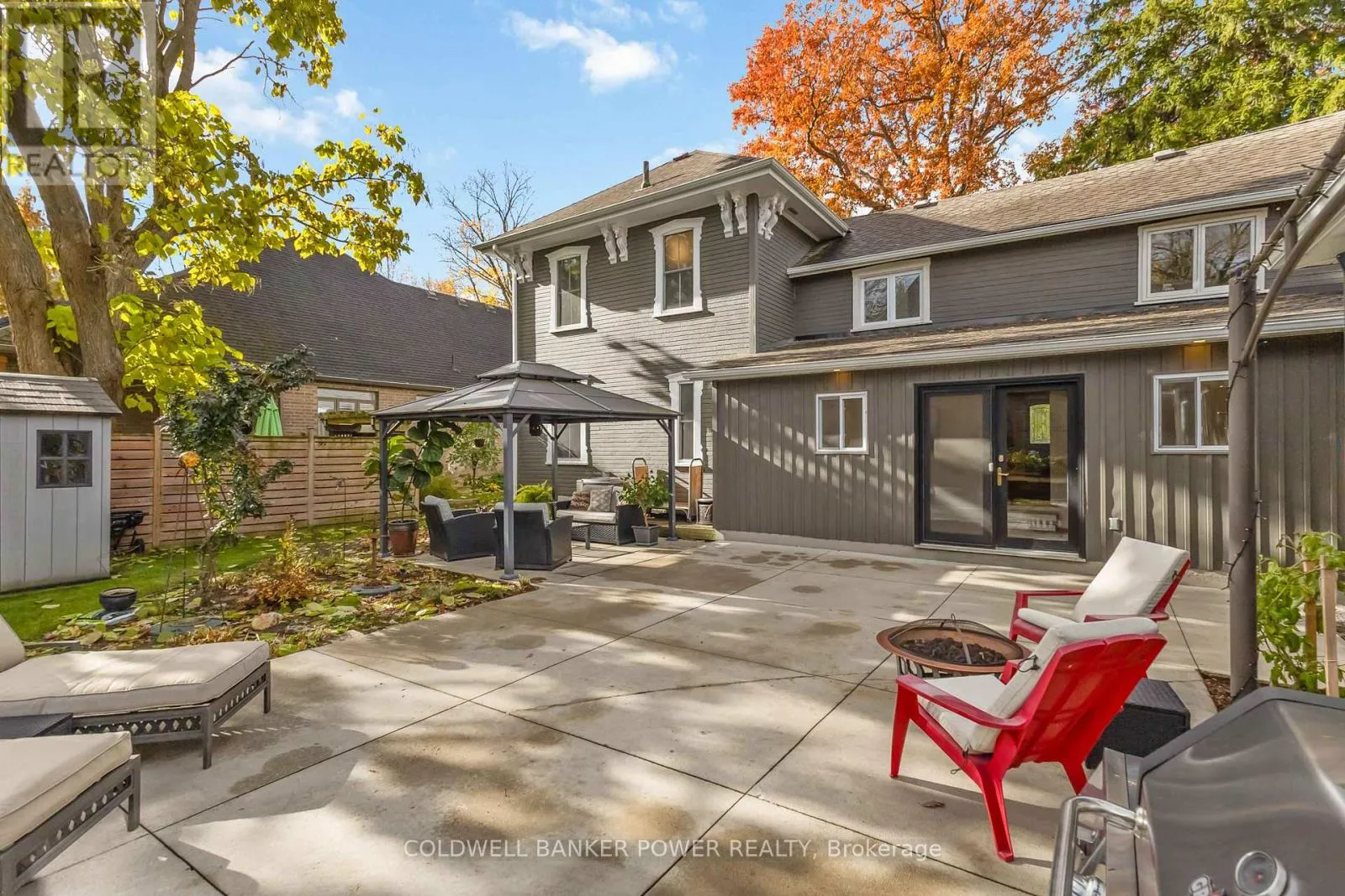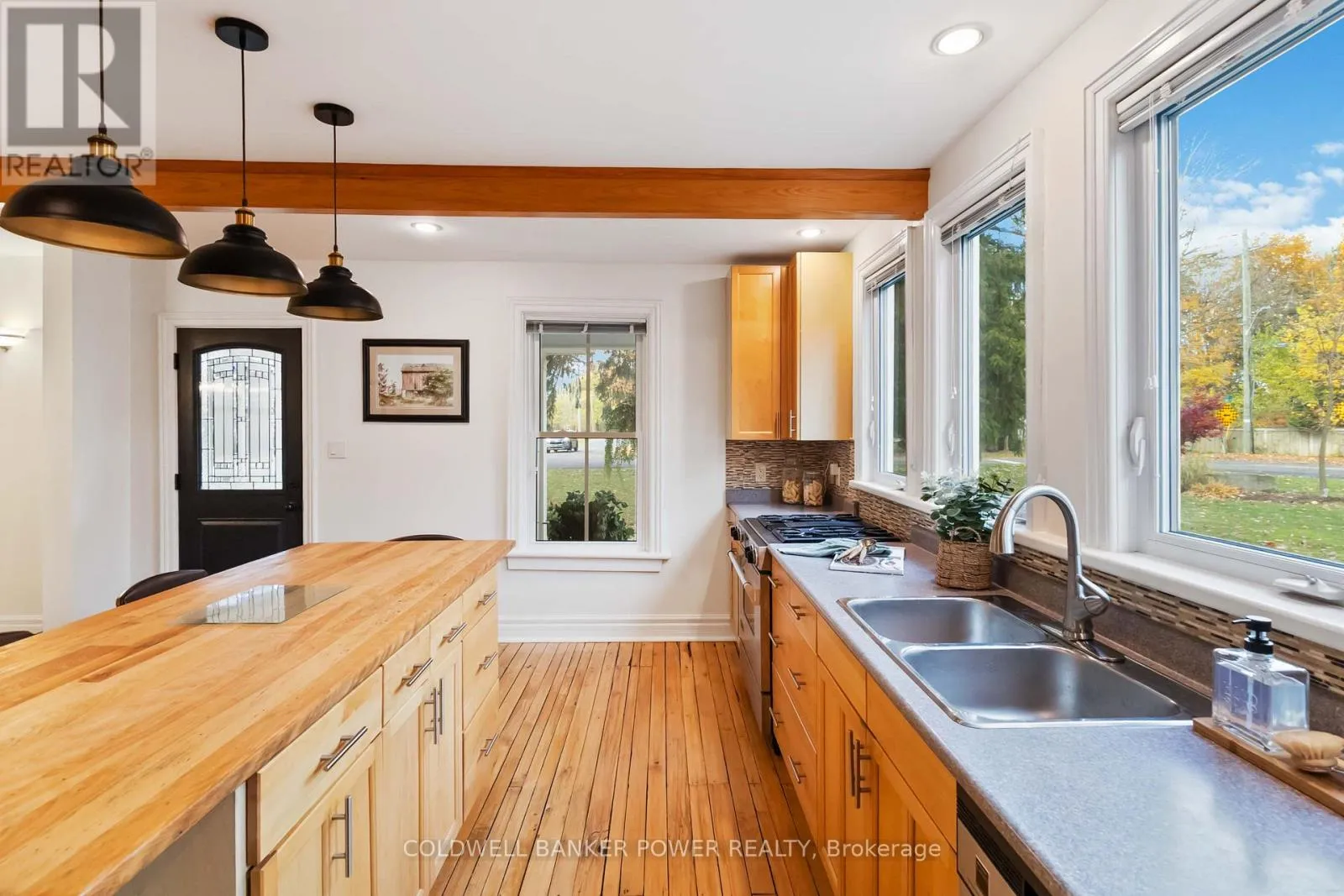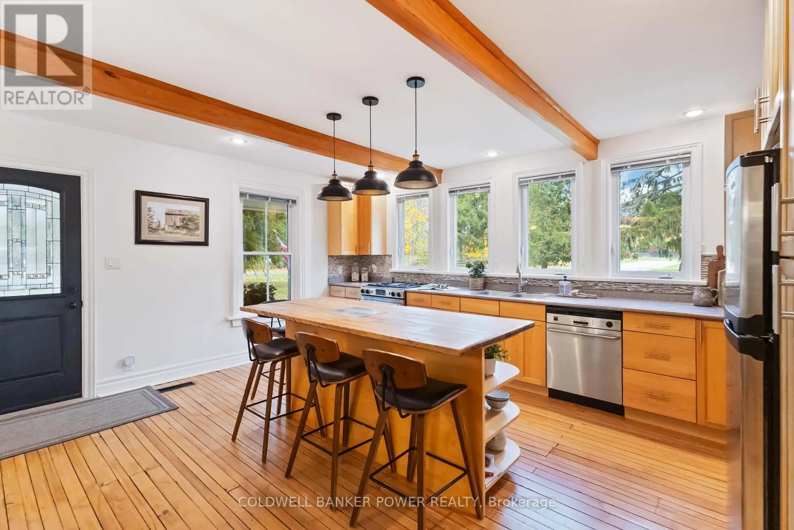 Cross Streets: Gideon Dr & Longwoods Rd. ** Directions: Harris Rd corner of Victoria St. 'One of a kind' CENTURY HOME situated on nearly 1/3 OF AN ACRE with THREE CAR HEATED GARAGE/WORKSHOP. Beautifully updated and loaded with charm and character throughout with high ceilings, heavy moldings, warm original pine and maple floors, woodburning fireplace, charming and huge front porch and more! Spacious floor plan with 4 bedrooms (one room currently used as walk-in closet) and nearly 2500 square feet of living. Expansive country kitchen and eating area. Large Great Room and adjacent sitting room. Huge mud room with main floor laundry. Very private yard and patio. Current owner has updated the insulation, updated electrical to 125 amp service, all windows, exterior painted in 2025, roofing shingles, furnace, newer septic system and weeping bed, natural gas lines for exterior, updated bathrooms, updated plumbing and more! Don't miss out on this special opportunity. (id:27476)