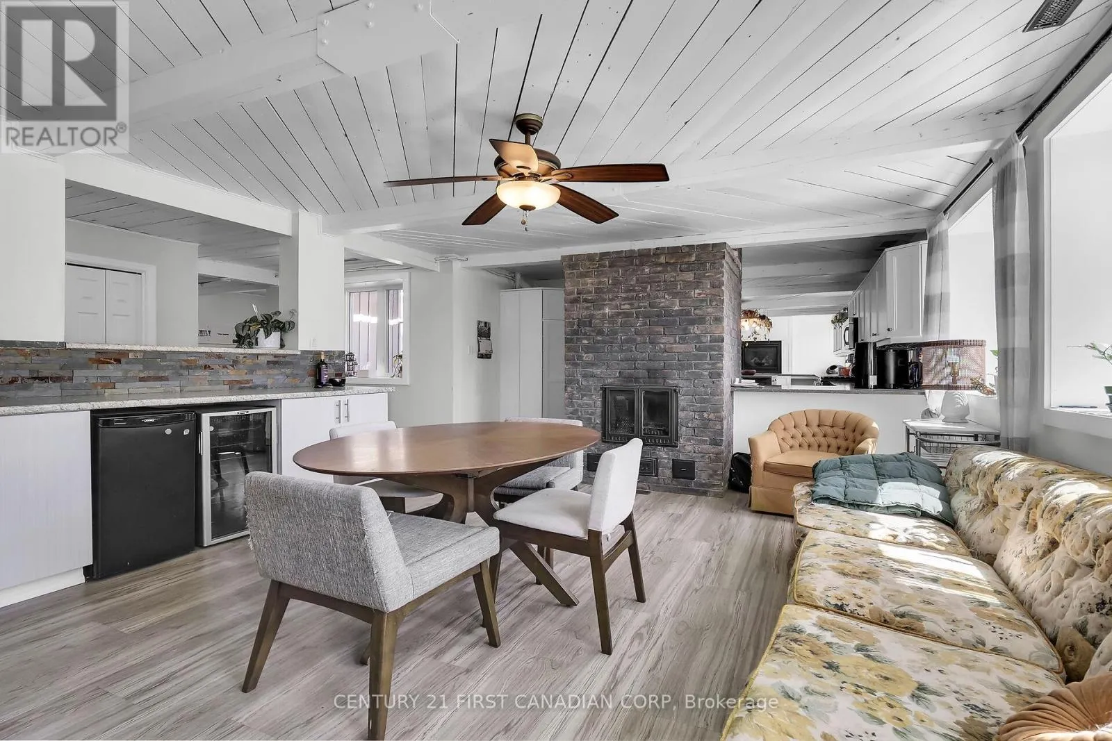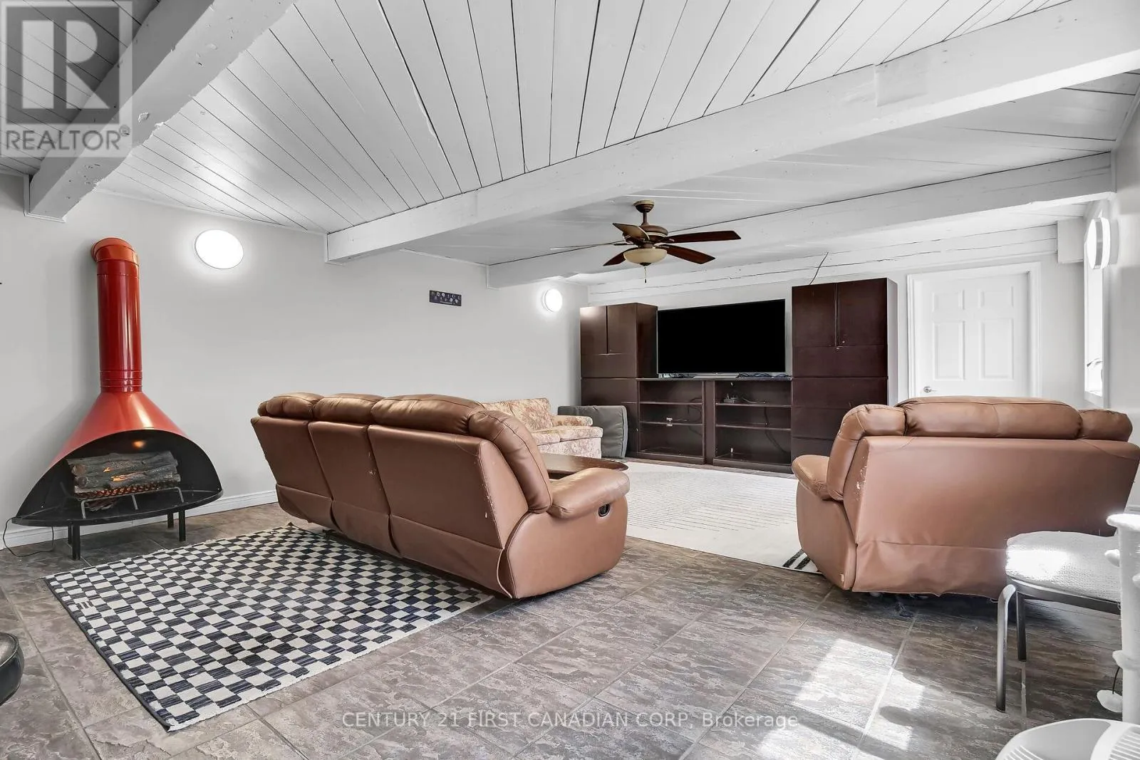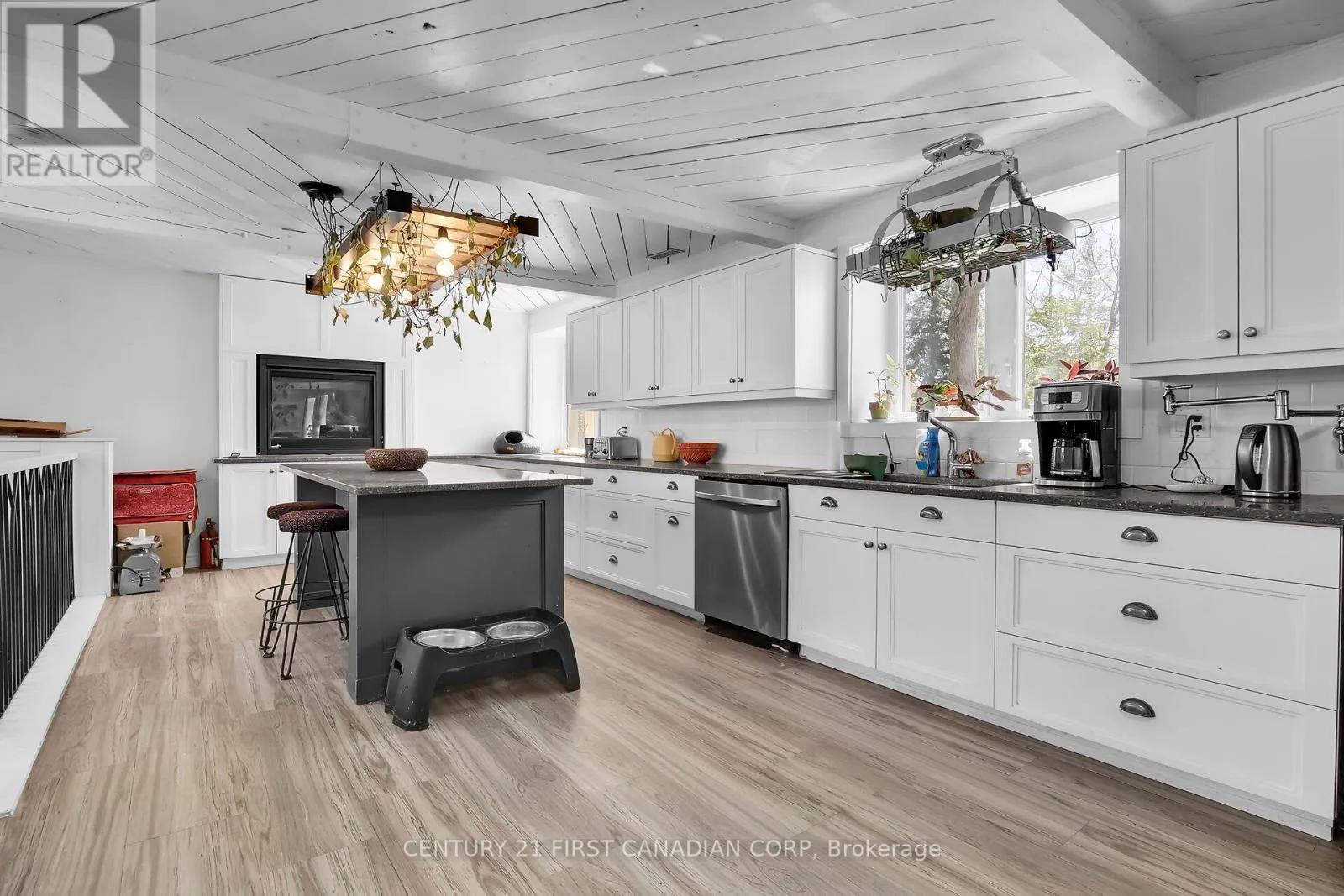Cross Streets: Denfield Rd.& Sixteen Mile RD. ** Directions: Head West on Ilderton Rd, turn North on Denfield Rd and it's at the corner of Denfield Rd and 16 Mile Rd. Beautiful 5.8 Acres corner lot with a 3.071 SQFT bungalow. 883 feet of frontage and 285 feet deep lot with 20x40 workshop. If your looking for a large private property outside the city then look no further then this perfect family lot, volleyball court, wave hot tube (swim spa), custom fire pit and outdoor shower. Custom Kitchen, over sized island, quartz counter tops, lots of storage, multiple fireplaces, large custom primary bathroom with jetted bathtub, central vacuum, Geothermal ground heating source and air conditioning. Just 15 minutes from London to this quiet large paradise. (id:27476)