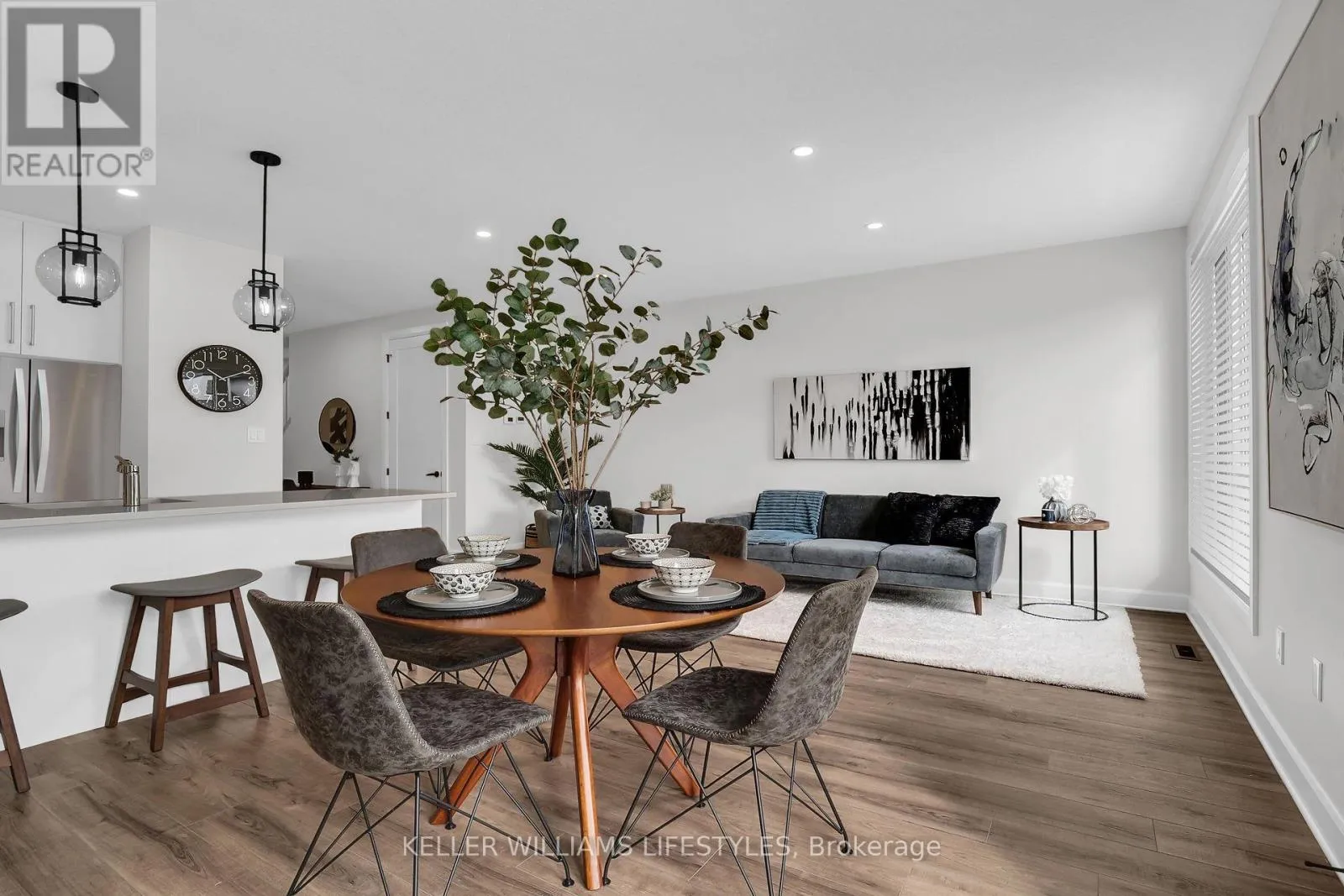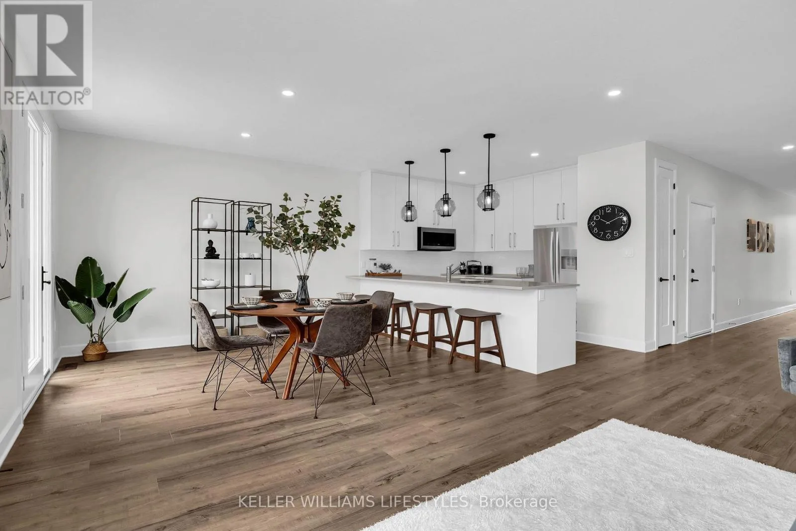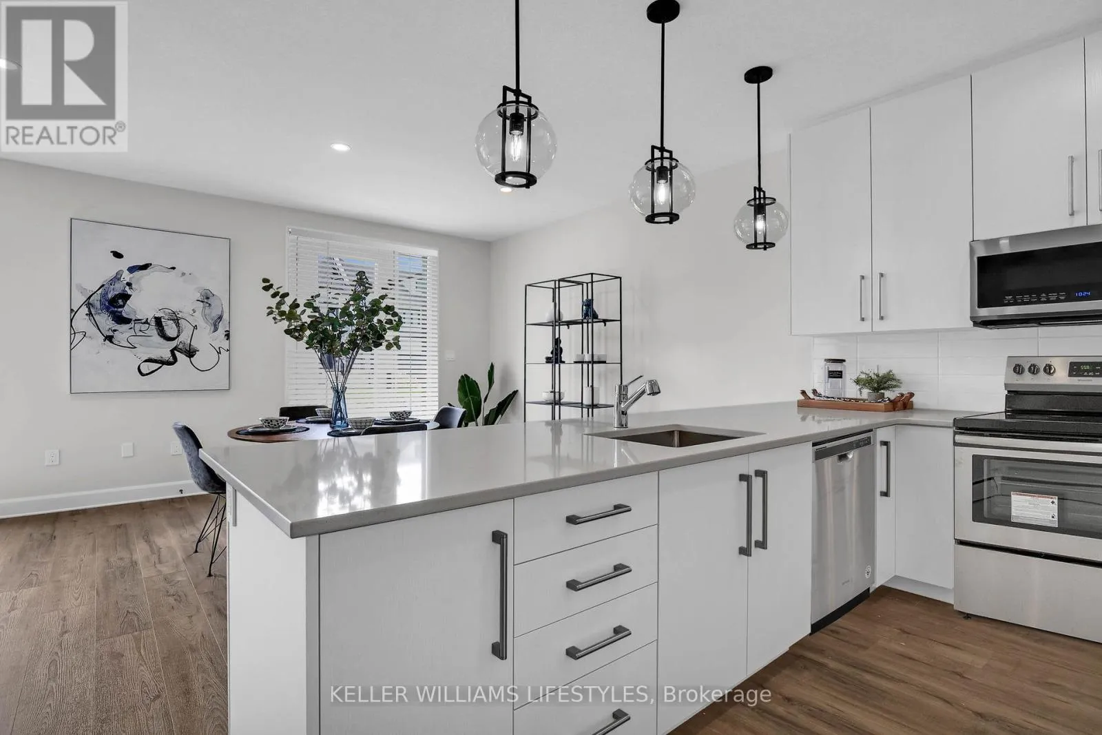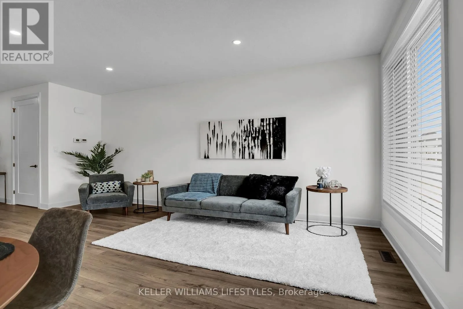 Cross Streets: Glendon Dr & Crestview Dr. ** Directions: Glendon Dr to Crestview, to Doan Dr. Located just minutes from London's west end, the charming community of Kilworth offers a perfect blend of small-town atmosphere and everyday convenience. Set near the Thames River and surrounded by natural scenery, this area provides easy access to the city while enjoying a quieter setting. This modern townhome is part of the Aura development, known for its contemporary architecture and stylish design.This approximately 1,731 sq. ft. two-storey townhome features 3 bedrooms and a bright open-concept layout. Highlights include 9-foot ceilings, 8-foot interior doors, an oak staircase with steel spindles, wide-plank stone polymer composite flooring, pot lights, and modern fixtures throughout. The great room flows into a gourmet kitchen with quartz countertops, a large peninsula, modern cabinetry, and a stainless steel appliance package. The primary bedroom offers a spa-inspired ensuite with glass shower, double sinks, quartz counters, and a walk-in closet. Additional features include an unfinished basement, large windows, and a deck off the great room. Available February 15th (id:27476)