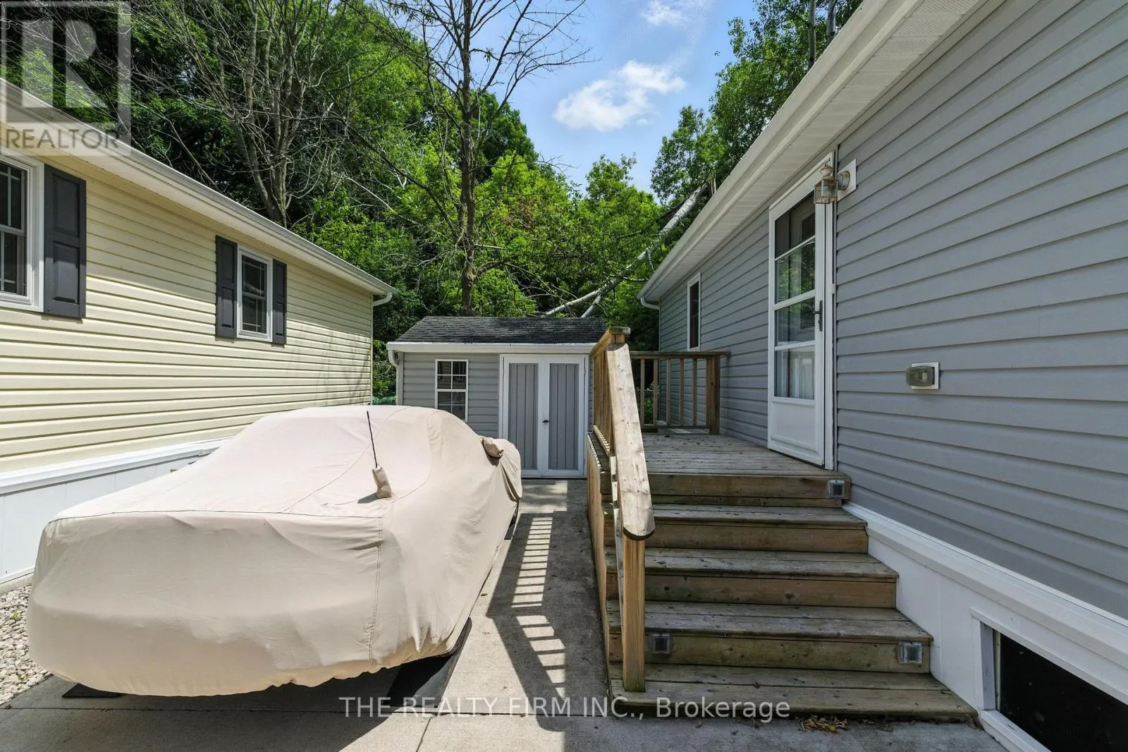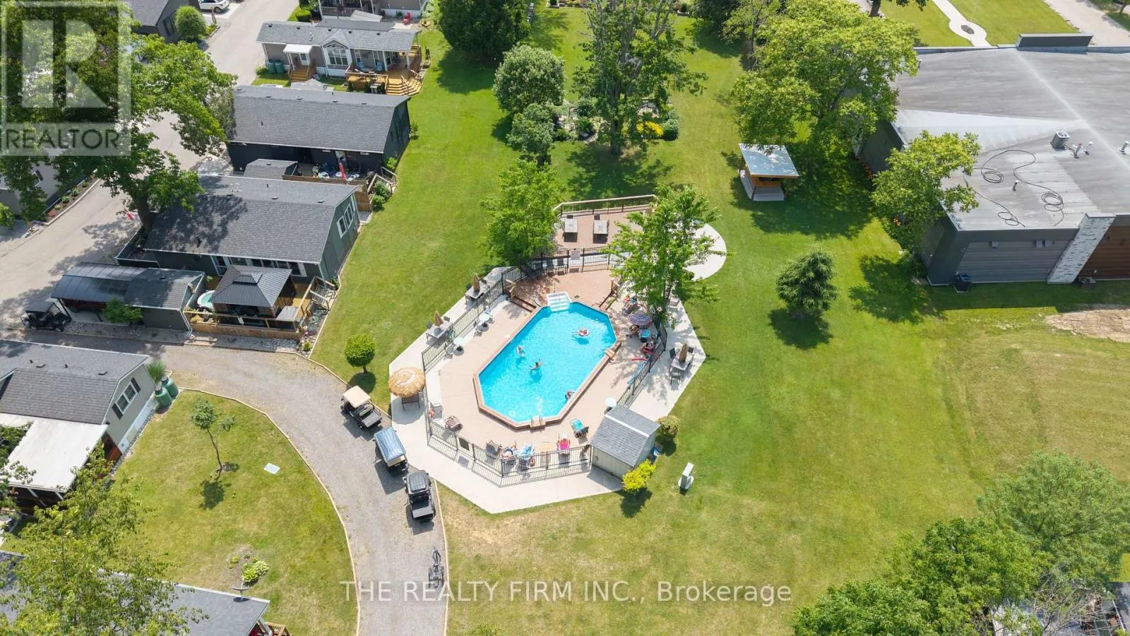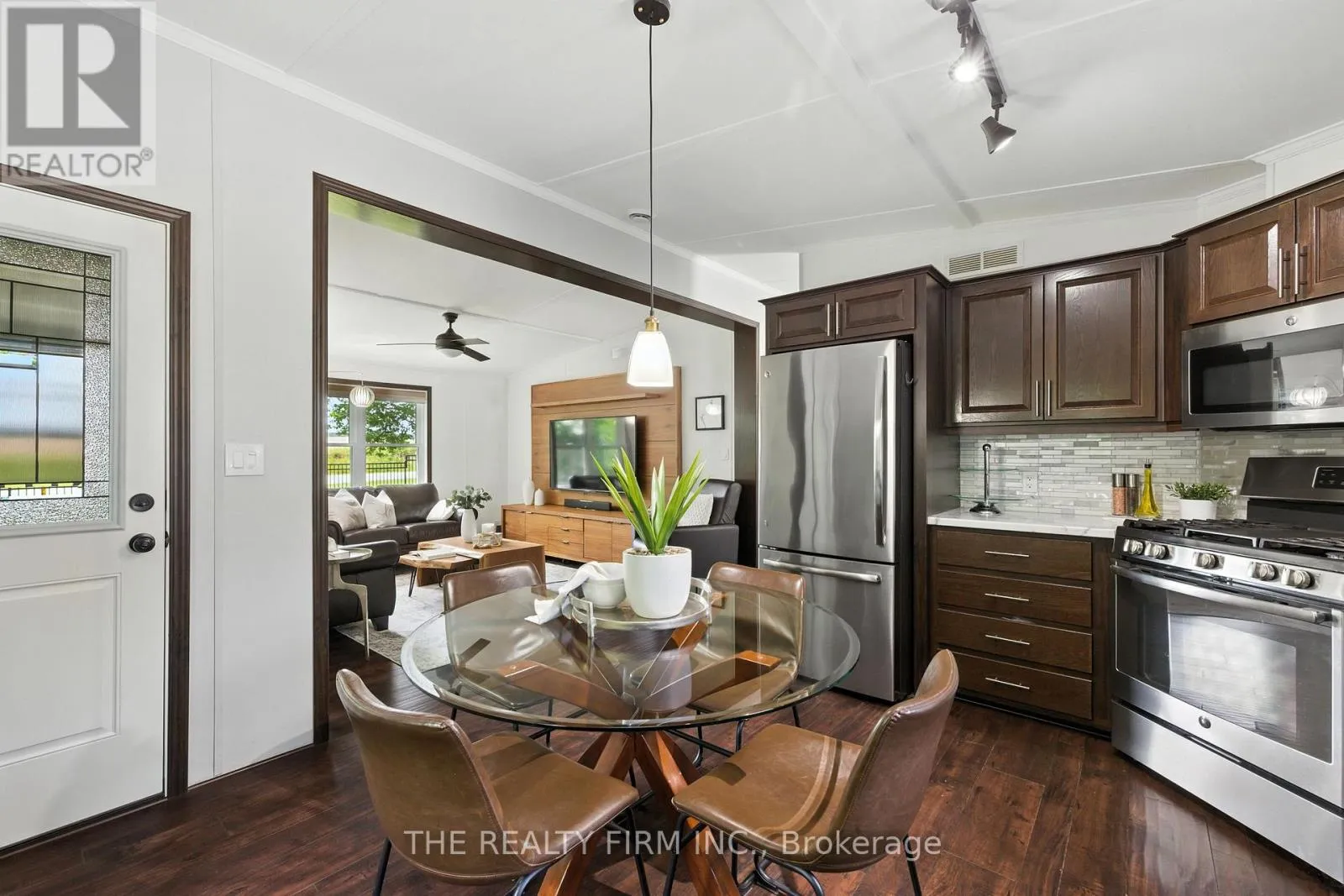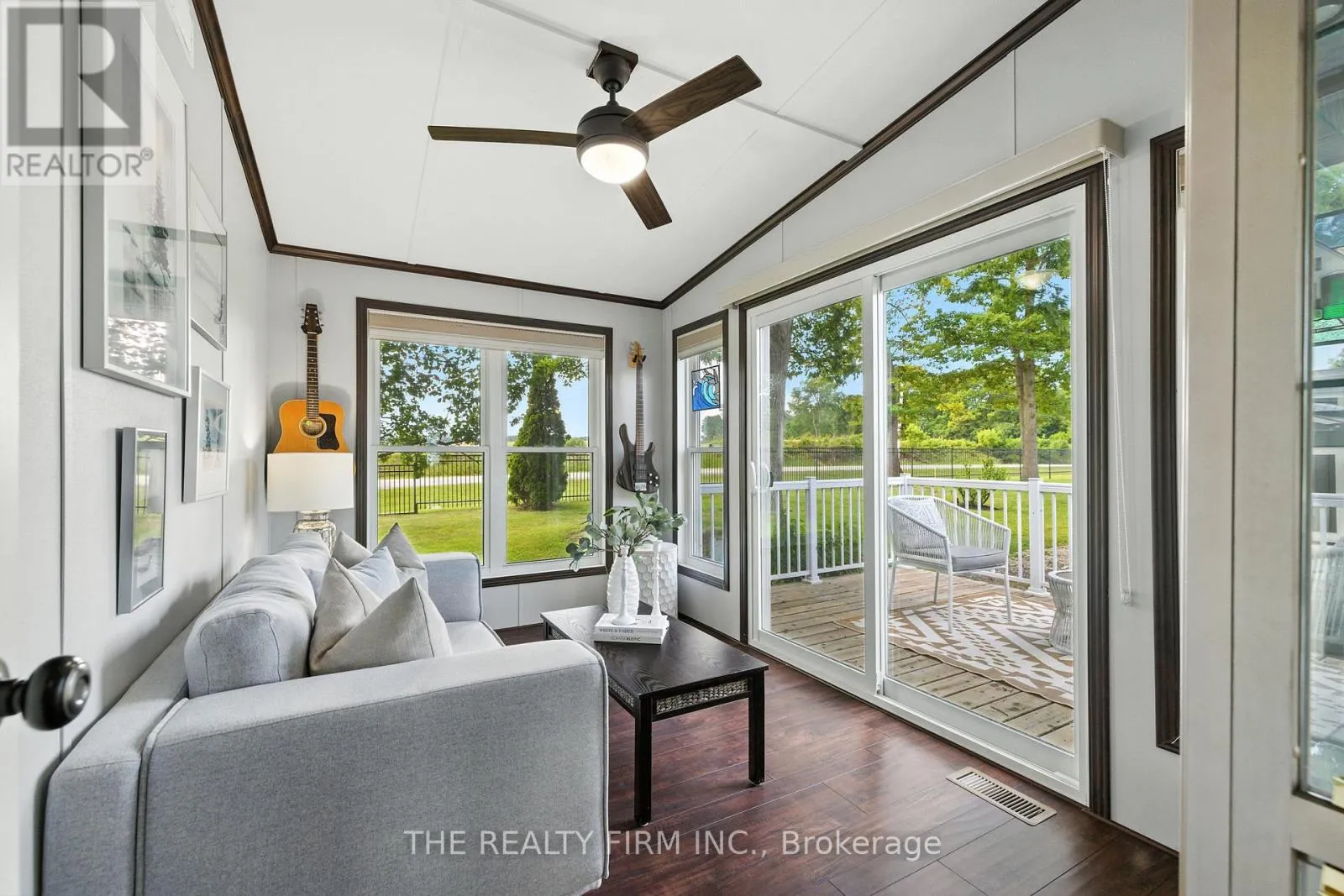 Cross Streets: Amiens Rd & Oriole Dr. ** Directions: Turn North off Glendon Drive onto Amiens Rd. Oriole Park is on East side of Amiens. The home is located on Haviture Way Unit #1. Live the resort lifestyle year-round in Unit #1 at Oriole Park Resort--a rare gem in Komoka just 10 minutes west of London. This vibrant four-season retirement community offers a peaceful, cottage-like setting and this 3-bedroom, 2-bathroom modular home is packed with features that make everyday living feel like a getaway. Inside, enjoy hand-scraped laminate floors, an open-concept living, dining, and kitchen area filled with natural light, plus generous closet space at the entrance. The kitchen features stainless steel appliances, tile backsplash, and ample cabinetry. Off the dining area, step onto a private back deck with patio space and a nearby propane hook-up--perfect for summer BBQs.The main 4-piece bathroom is equipped with built-in storage and a convenient stacked washer/dryer. All bedrooms are bright and spacious, with great closet space. One room functions beautifully as a sunroom, an office or third bedroom--your choice! From there, sliding doors lead to a cozy enclosed deck for even more outdoor enjoyment. The primary suite features vaulted ceilings, generous closet space, and 3-piece ensuite. Enjoy unobstructed outdoor views with a neighbouring lot that will remain vacant--offering extra privacy and serenity. A storage shed adds practical outdoor space for tools and gear and two parking spaces is a bonus! But what truly sets this home apart is the unmatched lifestyle Oriole Park offers: clubhouse amenities like a salon and spa, golf simulator, dog grooming station, fitness centre, pickleball court, event space, library, and a fully licensed bistro/bar with a pool table and darts. Stroll the beautifully landscaped grounds, complete with koi ponds, shuffleboard, an off-leash dog park, saltwater pool, community fire pit and garden, and BBQ areas.If you're ready to downsize without compromise, Unit #1 is your ticket to affordable, stylish, and social living in one of the regions most unique communities. (id:27476)