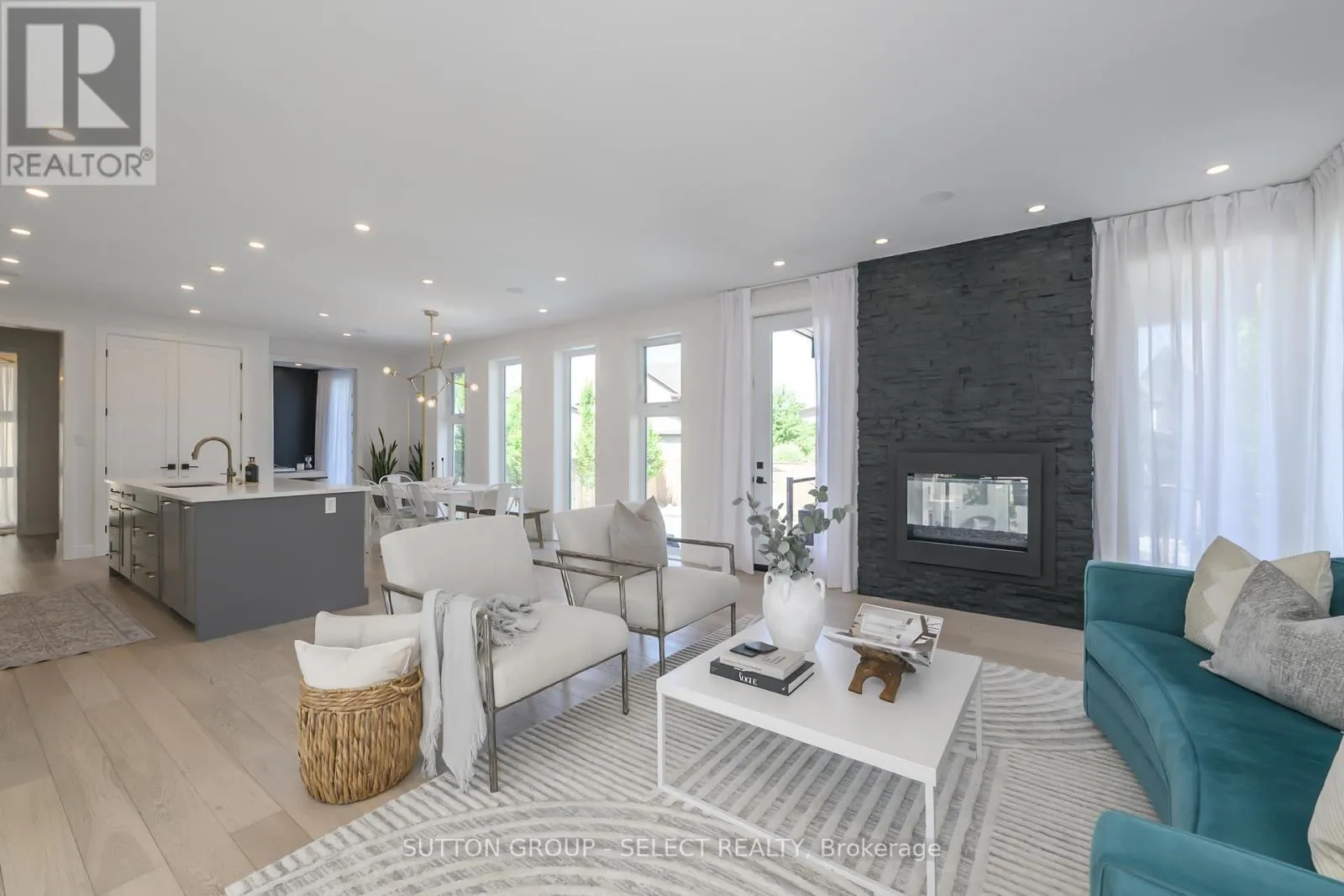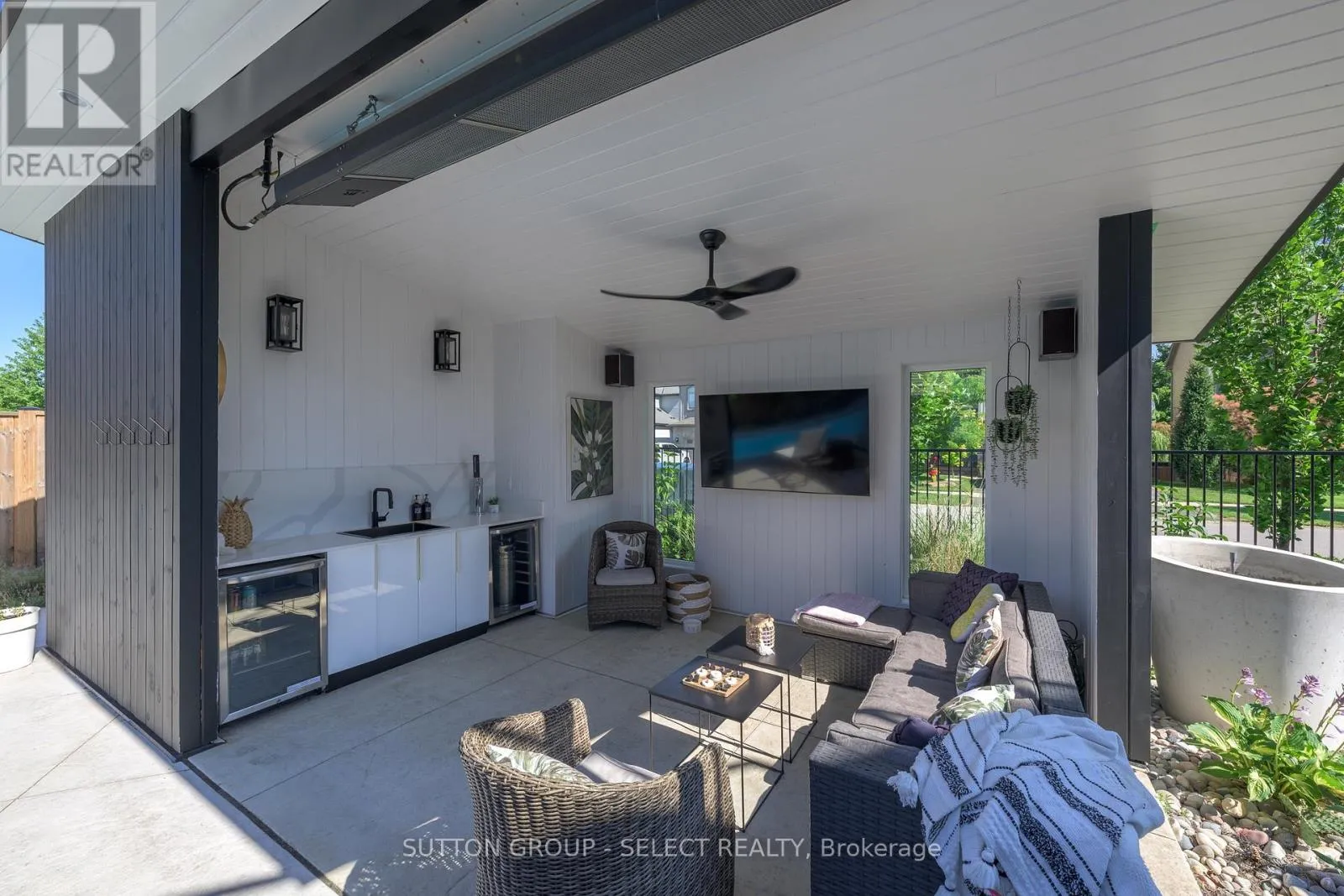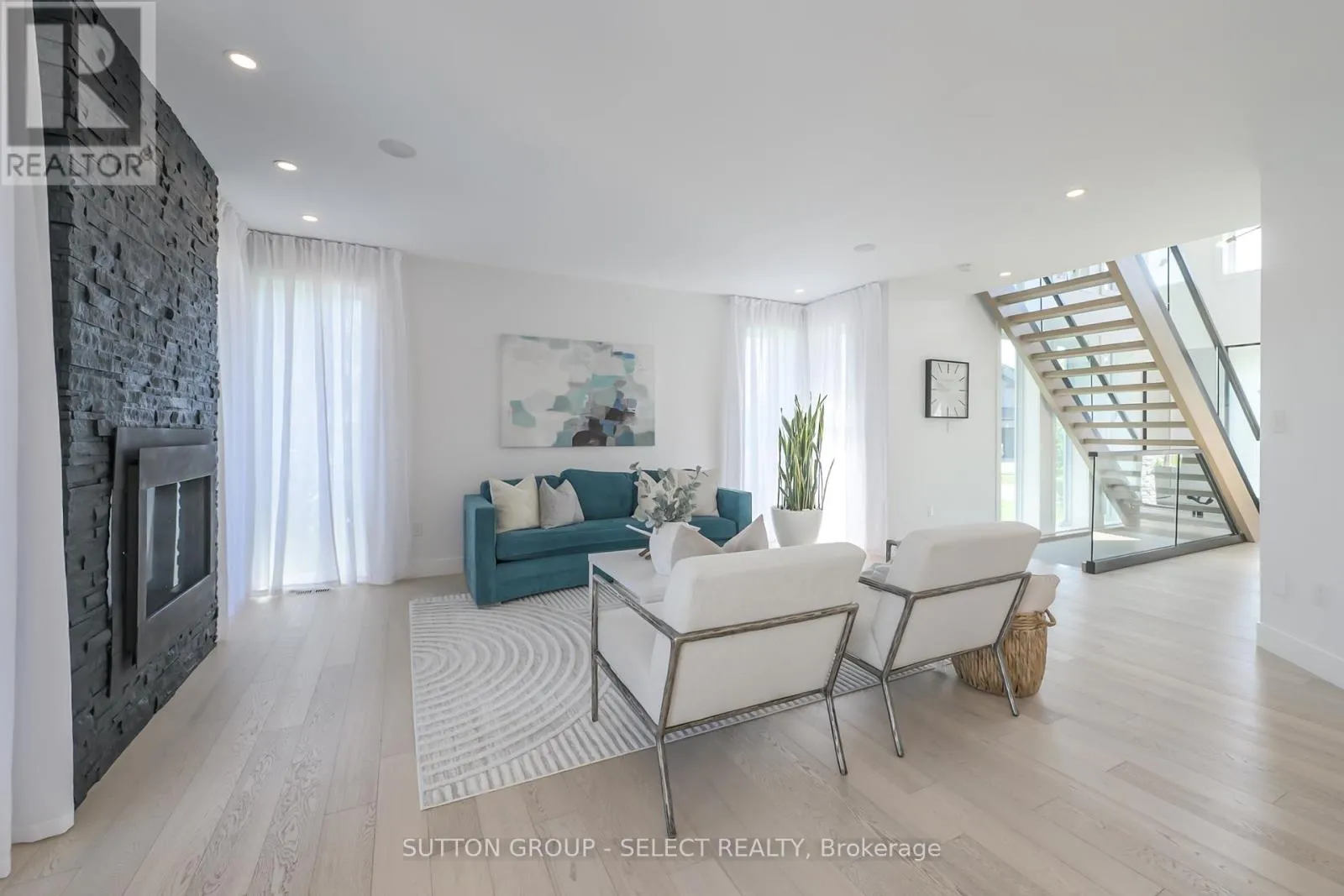 Cross Streets: Union Avenue. ** Directions: Oxbow Drive and Union Ave. Designed for buyers who value upgrades, smart automation, and true turnkey living, this executive home on a quiet Komoka crescent offers a level of finish and functionality rarely found in the area, just 10 minutes west of London. Striking modern curb appeal introduces a fully insulated, heated, triple-bay garage with epoxy floors, ideal for vehicles, recreational toys, or a workshop, plus a six-car driveway. Inside, a dramatic two-storey foyer with floating glass-railed staircase and full-height windows sets the tone for a light-filled, intentional layout. Wide-plank white oak hardwood, solid-core doors, and curated lighting extend throughout. The great room features a two-sided gas fireplace with floor-to-ceiling stone, seamlessly connecting to outdoor living. The kitchen is designed for real use, offering stone counters, a four-seat island with wine fridge, premium stainless appliances, programmable lighting, and generous storage. A dedicated home office and sleek powder room complete the main level. Upstairs, the primary suite offers a private retreat with tray ceiling, herringbone feature wall, custom walk-in closet, automated shades, and a glass-railed balcony. The ensuite includes radiant in-floor heating and refined finishes. Three additional bedrooms with hardwood flooring and motorized shades share the level with a well-appointed laundry room. The fully finished lower level adds a large recreation space, full bathroom, and a glass-enclosed home gym with integrated high-end audio. Outside, the backyard is built for entertaining, anchored by a heated saltwater pool with automated safety cover (~$25K) and a year-round cabana with integrated lighting, wet bar, beverage fridges, and a three-piece bathroom, framed by mature black cedar privacy hedging. This is not a typical home for the area. It's a systems-forward, technology-rich property for buyers who prioritize quality, automation, and lifestyle, minutes to Komoka Provincial Park and Thames River trails. (id:27476)