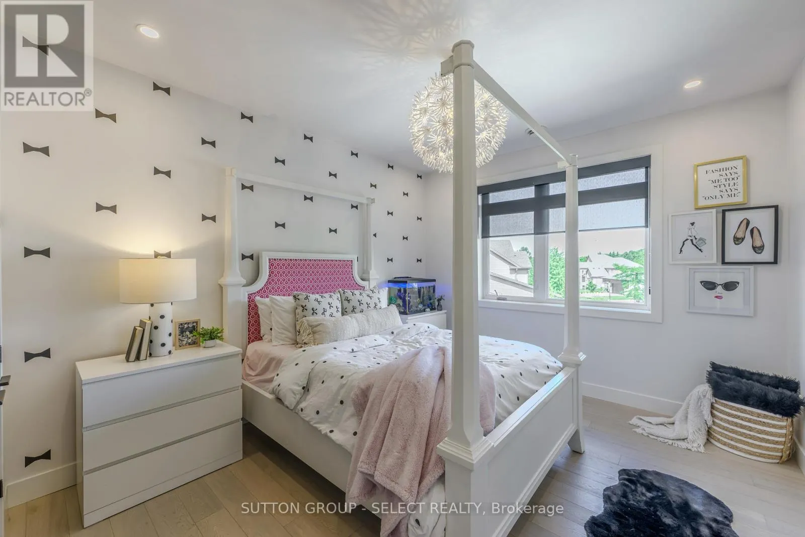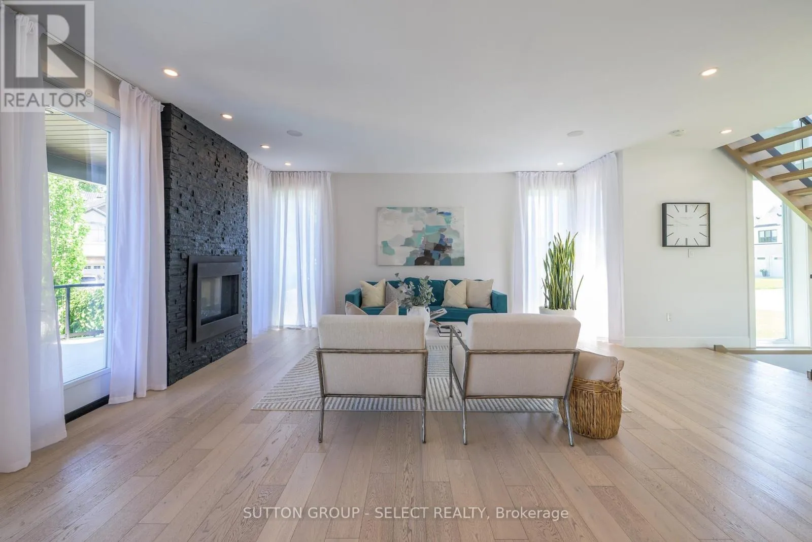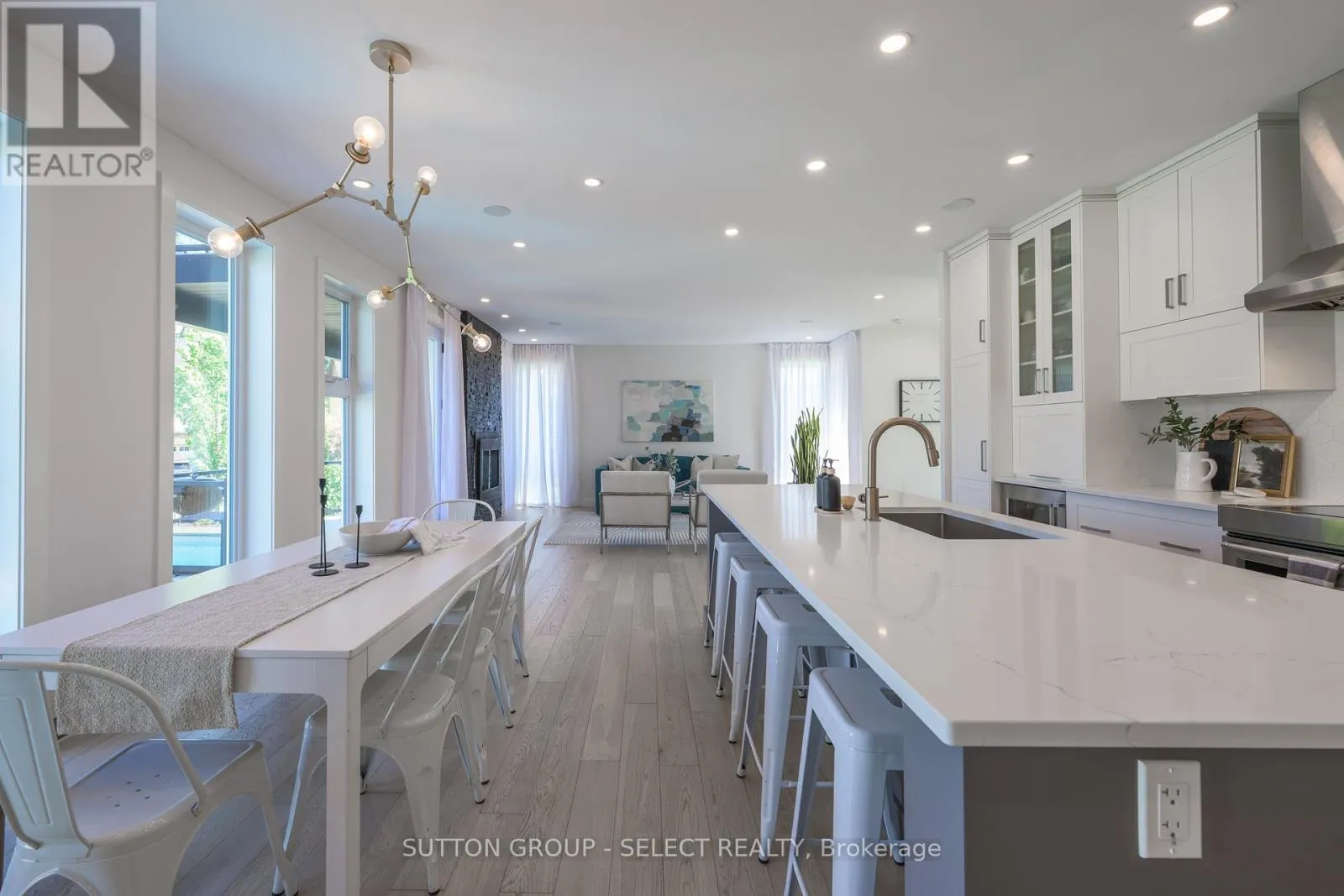 Cross Streets: Union Avenue. ** Directions: Oxbow Drive and Union Ave. Designed for buyers who value upgrades, smart automation, and true turnkey living, this executive home on a quiet Komoka crescent offers a level of finish and functionality rarely found in the area, just 10 minutes west of London. Striking modern curb appeal introduces a fully insulated, heated, triple-bay garage with epoxy floors, ideal for vehicles, recreational toys, or a workshop, plus a six-car driveway. Inside, a dramatic two-storey foyer with floating glass-railed staircase and full-height windows sets the tone for a light-filled, intentional layout. Wide-plank white oak hardwood, solid-core doors, and curated lighting extend throughout. The great room features a two-sided gas fireplace with floor-to-ceiling stone, seamlessly connecting to outdoor living. The kitchen is designed for real use, offering stone counters, a four-seat island with wine fridge, premium stainless appliances, programmable lighting, and generous storage. A dedicated home office and sleek powder room complete the main level. Upstairs, the primary suite offers a private retreat with tray ceiling, herringbone feature wall, custom walk-in closet, automated shades, and a glass-railed balcony. The ensuite includes radiant in-floor heating and refined finishes. Three additional bedrooms with hardwood flooring and motorized shades share the level with a well-appointed laundry room. The fully finished lower level adds a large recreation space, full bathroom, and a glass-enclosed home gym with integrated high-end audio. Outside, the backyard is built for entertaining, anchored by a heated saltwater pool with automated safety cover (~$25K) and a year-round cabana with integrated lighting, wet bar, beverage fridges, and a three-piece bathroom, framed by mature black cedar privacy hedging. This is not a typical home for the area. It's a systems-forward, technology-rich property for buyers who prioritize quality, automation, and lifestyle, minutes to Komoka Provincial Park and Thames River trails. (id:27476)