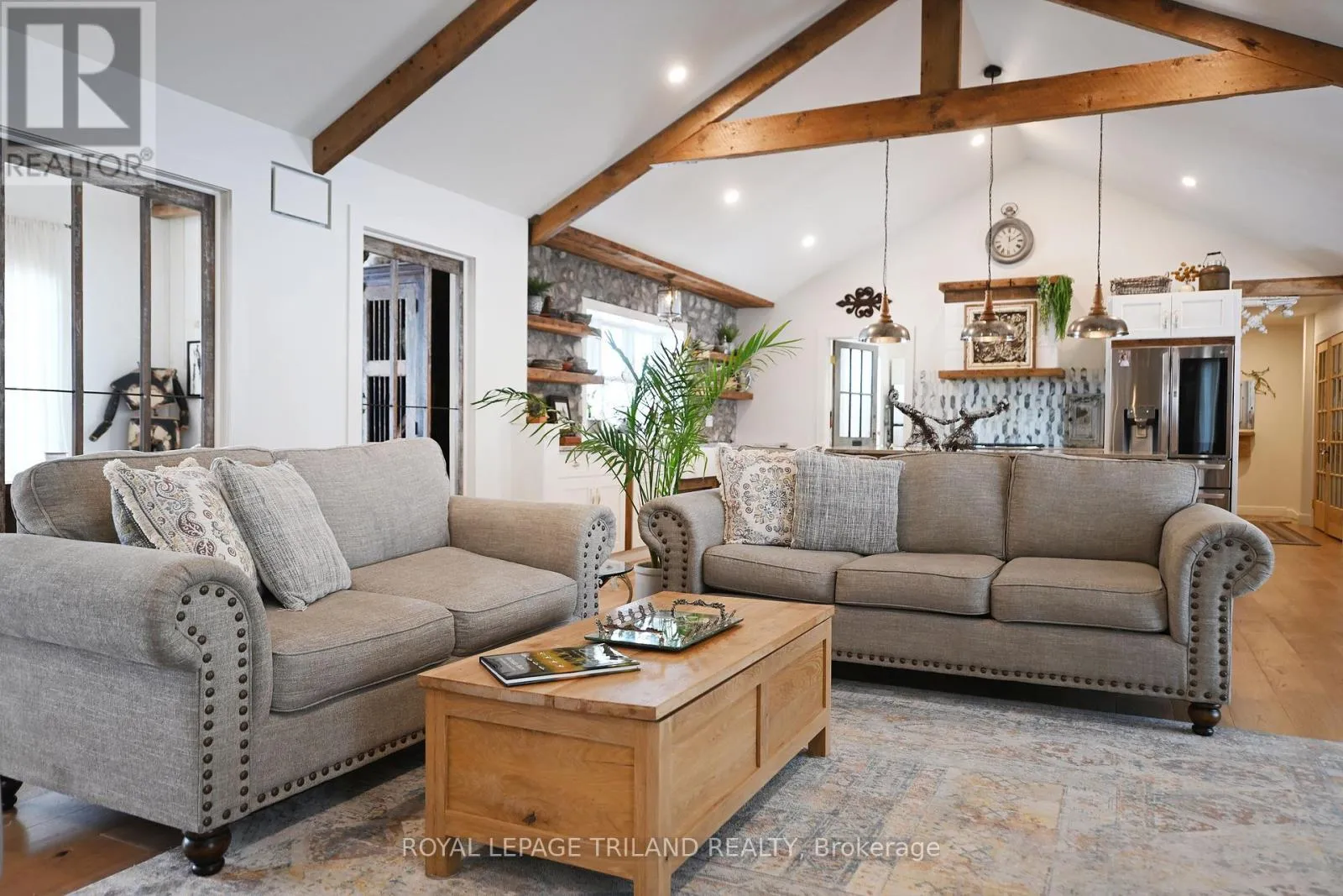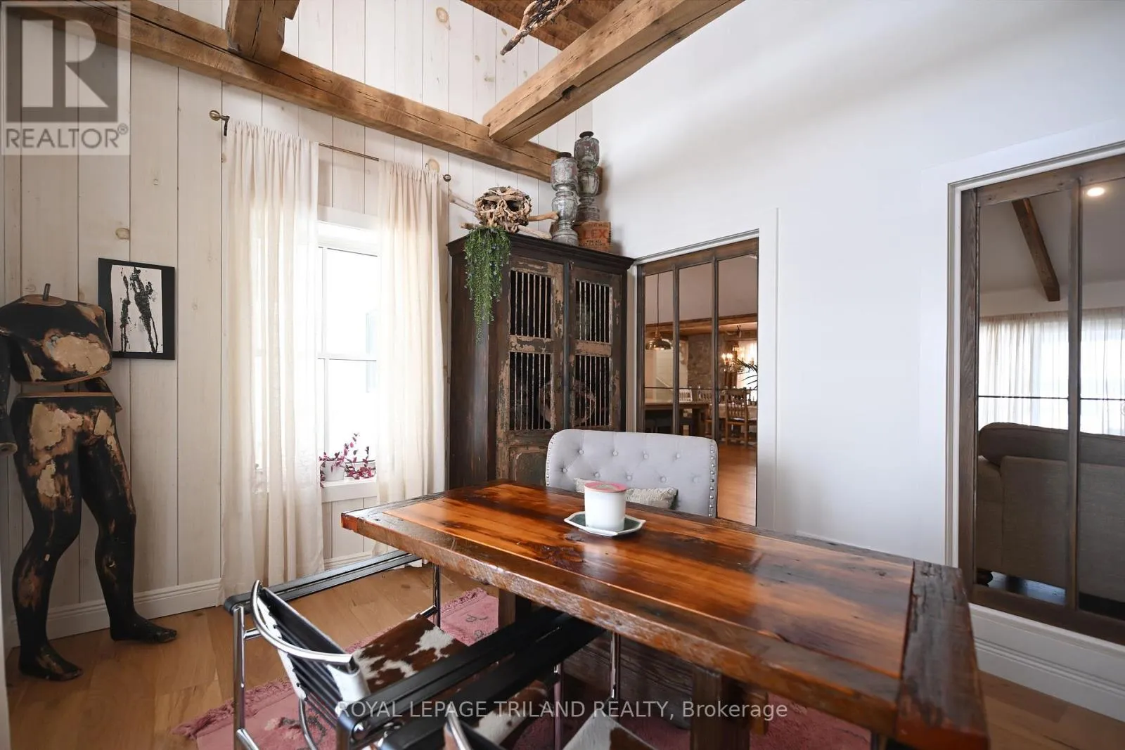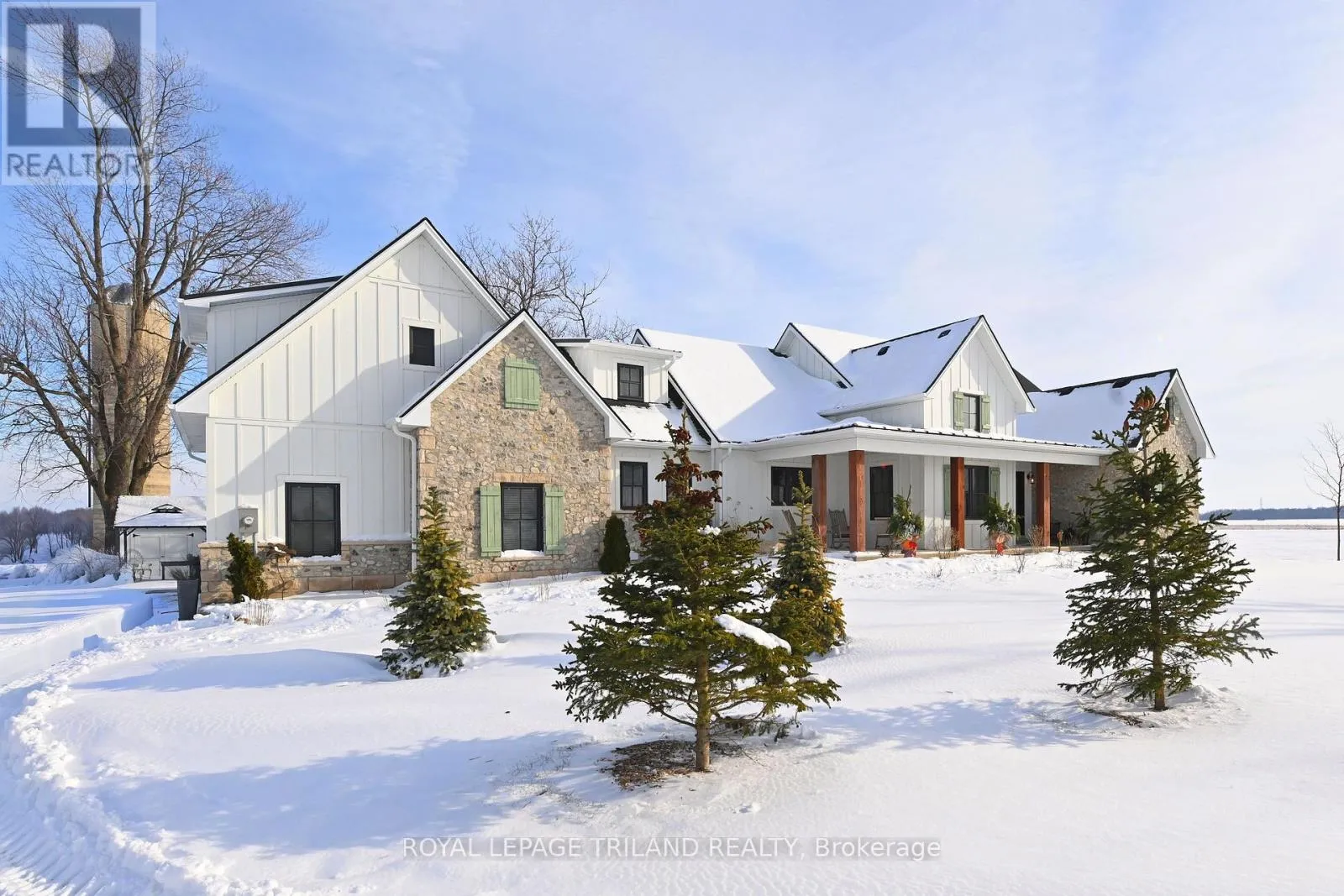 Cross Streets: Jones Dr. ** Directions: South on Carriage Road from Longwoods. The Carriage House: A Unique Country Executive Home Welcome to The Carriage House, a one-of-a-kind custom built 4,500 sq ft country executive home, nestled on a spacious half-acre lot. Conveniently located just 10 minutes from London, this stunning property offers the perfect escape from the urban grind while providing ample space for family and friends. Main Level Features The main level of this exquisite home is designed for easy, one-floor living. It includes: An extra large great room perfect for entertaining or relaxing with the family. A dedicated office space for remote work or study. Two spacious bedrooms, including the primary suite with a luxurious ensuite bathroom. A total of 2.5 baths on the main level for convenience. A gourmet kitchen equipped with modern amenities and a true walk-in butler's pantry, ideal for culinary enthusiasts. Upper Loft Retreat The upper loft area provides a very private bedroom retreat complete with its own ensuite bathroom, offering a sanctuary of peace and privacy for guests or family members. Expansive Lower Level The lower level of The Carriage House is designed for recreation and additional living space, featuring: Two additional bedrooms for guests or family. A huge recreation room that can accommodate various activities. A dedicated games room for entertainment. A well-appointed 4-piece bath for added convenience. Unique Interior Accents The interior of this fabulous home is adorned with rustic timber beams and select reclaimed wood floors and ceilings, creating a warm, inviting atmosphere. These design elements blend seamlessly to provide a touch of rustic charm to the contemporary elegance of the home. Energy Efficiency and Quiet Comfort Built with "whole home" ICF (Insulated Concrete Form) construction, The Carriage House offers incredible year-round energy efficiency and a quiet living environment, ensuring comfort in all seasons. A Must-See for Unique Property Buyers. (id:27476)