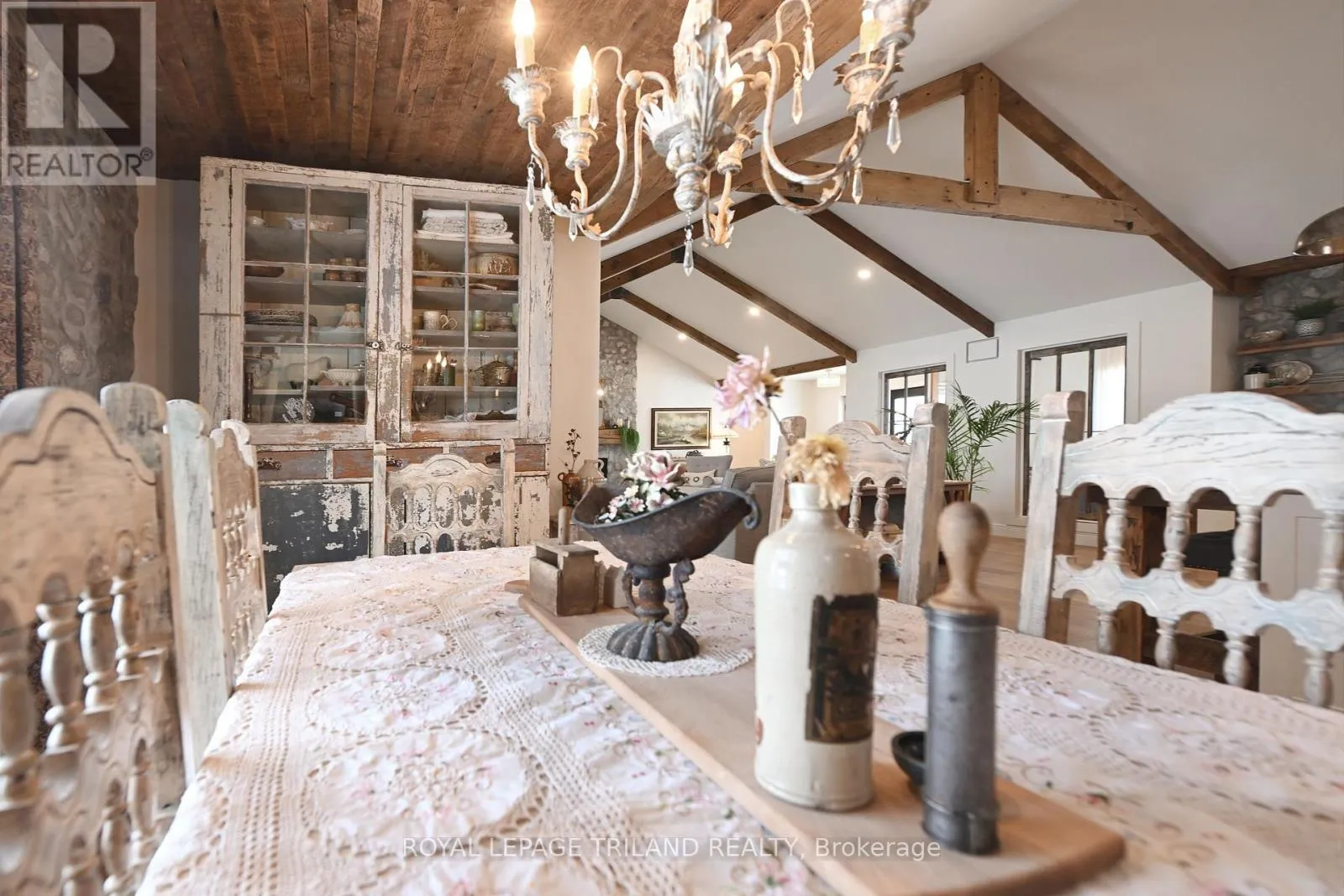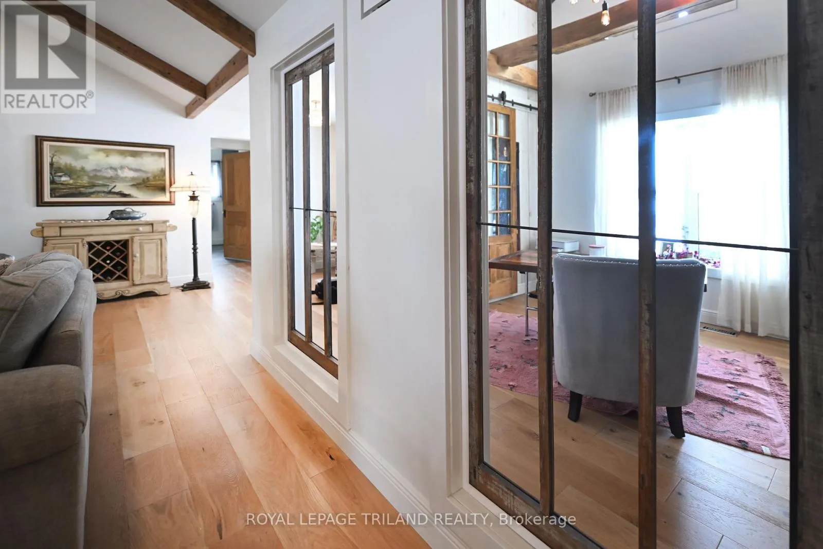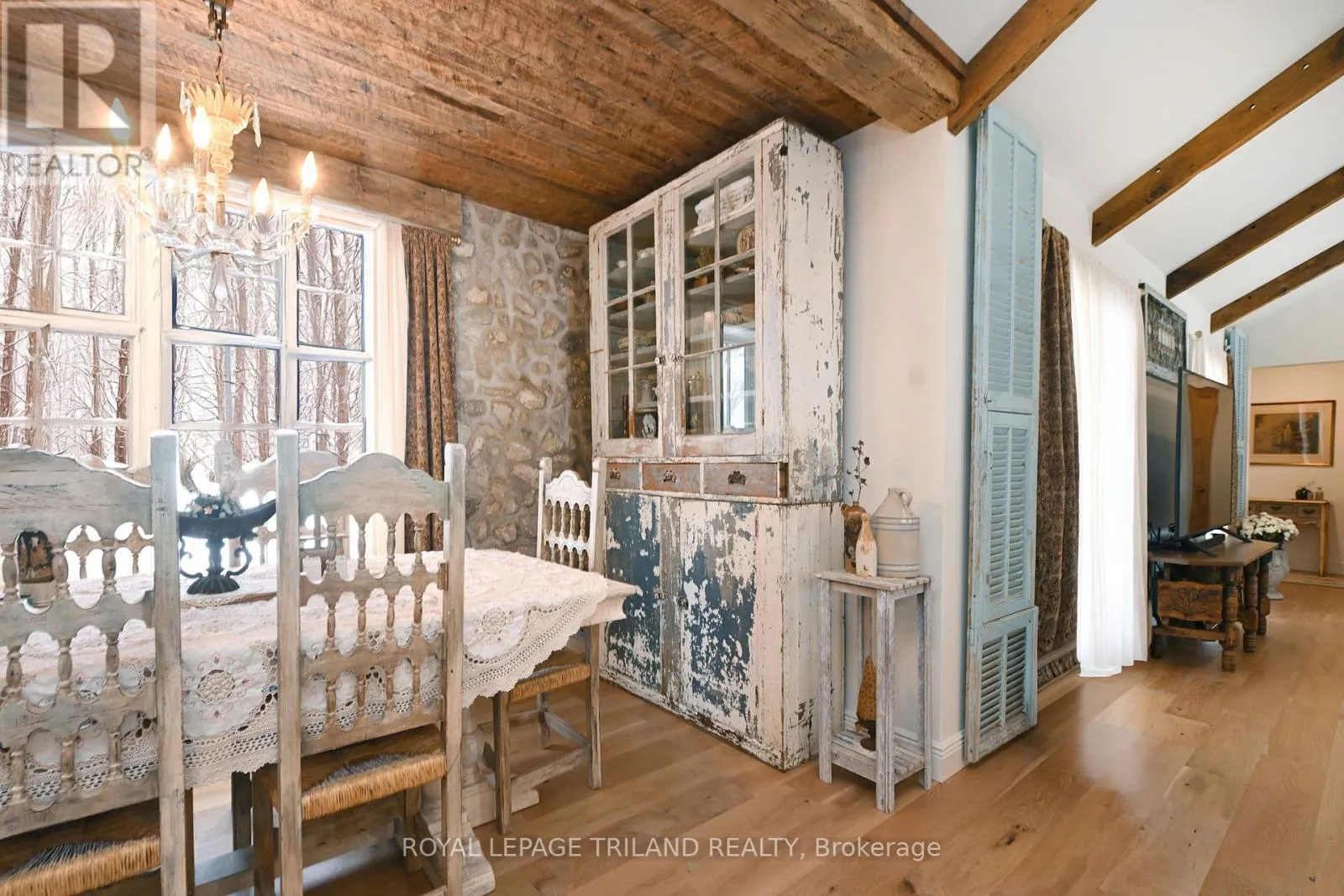 Cross Streets: Jones Dr. ** Directions: South on Carriage Road from Longwoods. The Carriage House: A Unique Country Executive Home Welcome to The Carriage House, a one-of-a-kind custom built 4,500 sq ft country executive home, nestled on a spacious half-acre lot. Conveniently located just 10 minutes from London, this stunning property offers the perfect escape from the urban grind while providing ample space for family and friends. Main Level Features The main level of this exquisite home is designed for easy, one-floor living. It includes: An extra large great room perfect for entertaining or relaxing with the family. A dedicated office space for remote work or study. Two spacious bedrooms, including the primary suite with a luxurious ensuite bathroom. A total of 2.5 baths on the main level for convenience. A gourmet kitchen equipped with modern amenities and a true walk-in butler's pantry, ideal for culinary enthusiasts. Upper Loft Retreat The upper loft area provides a very private bedroom retreat complete with its own ensuite bathroom, offering a sanctuary of peace and privacy for guests or family members. Expansive Lower Level The lower level of The Carriage House is designed for recreation and additional living space, featuring: Two additional bedrooms for guests or family. A huge recreation room that can accommodate various activities. A dedicated games room for entertainment. A well-appointed 4-piece bath for added convenience. Unique Interior Accents The interior of this fabulous home is adorned with rustic timber beams and select reclaimed wood floors and ceilings, creating a warm, inviting atmosphere. These design elements blend seamlessly to provide a touch of rustic charm to the contemporary elegance of the home. Energy Efficiency and Quiet Comfort Built with "whole home" ICF (Insulated Concrete Form) construction, The Carriage House offers incredible year-round energy efficiency and a quiet living environment, ensuring comfort in all seasons. A Must-See for Unique Property Buyers. (id:27476)