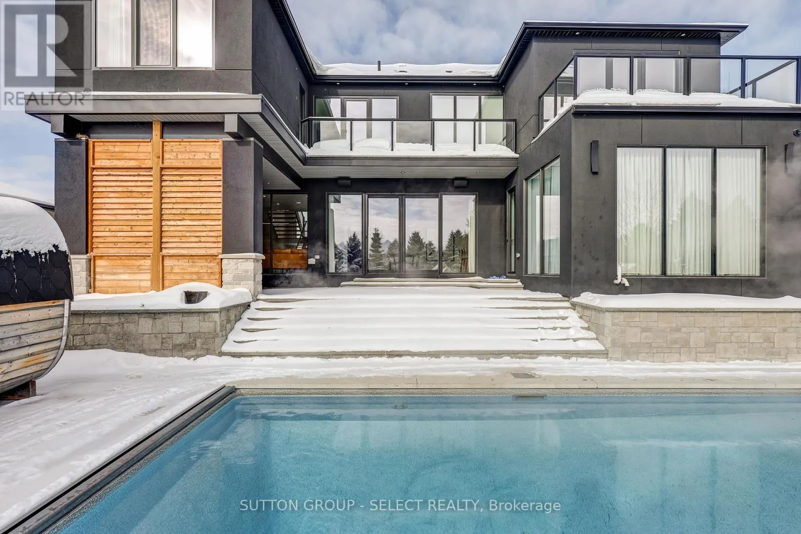 EDGEVIEW Experience the ultimate in luxury living in this meticulously designed custom home, where every detail has been thoughtfully crafted for comfort, style, and functionality. The main floor showcases A chef's dream kitchen features two full kitchens, including a hidden pantry kitchen with quartz countertops, gas stove, Miele built-in fridge, dishwasher, and microwave. Automated drawers, a touch faucet, and abundant storage make this space as practical as it is beautiful. Upstairs offers three generous bedrooms, each with its own full bath and balcony access. The primary suite boasts a custom-built closet system and a spa-inspired ensuite complete with heated floors and a heated towel rack. The fully finished basement includes a guest bedroom, full bathroom, kitchenette with full depth fridge, and heated floors throughout-ideal for extended family or entertaining. Premium features continue outdoors with a seamless flow through the oversized sliding doors leads to a spacious deck with a full sliding screen and automated awning over the pergola-perfect for indoor-outdoor entertaining. With a heated driveway, heated walkway, heated garage, and drainage tile system. The property is fully landscaped with front and back irrigation, a lush garden, cedar trees, and a heated pool complemented by a wood-burning sauna for year-round enjoyment. This is one of the largest yards in the Edgewater Estates. Additional highlights include central vacuum with hoses on every level, built-in speakers, custom drapery, 2-way adjustable screens for all doors and windows, an office, laundry/mudroom with custom cabinetry, and plenty more upgrades. Every element-from the automated comfort features to the custom finishes-creates a home of exceptional quality and effortless elegance (id:27476)