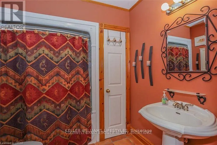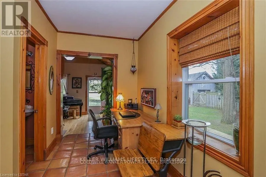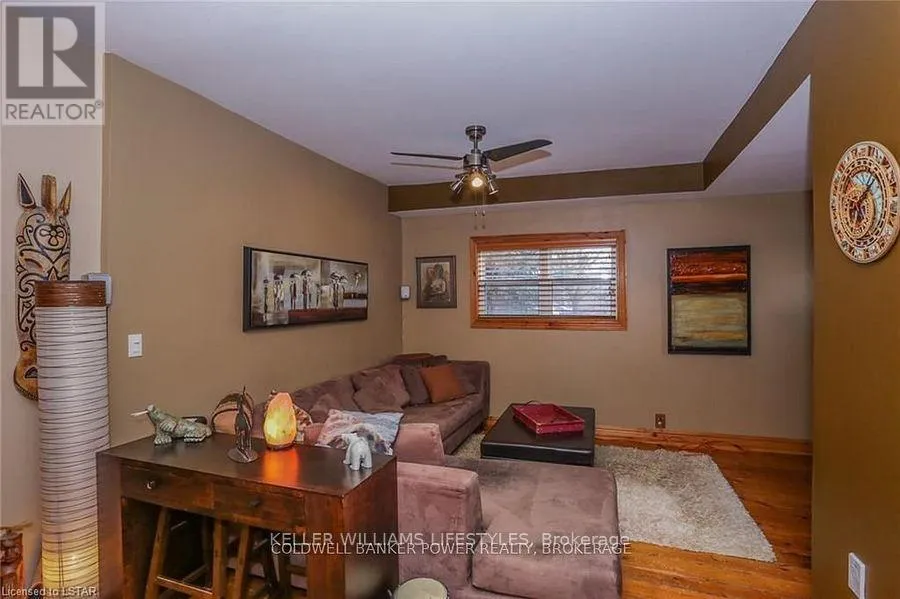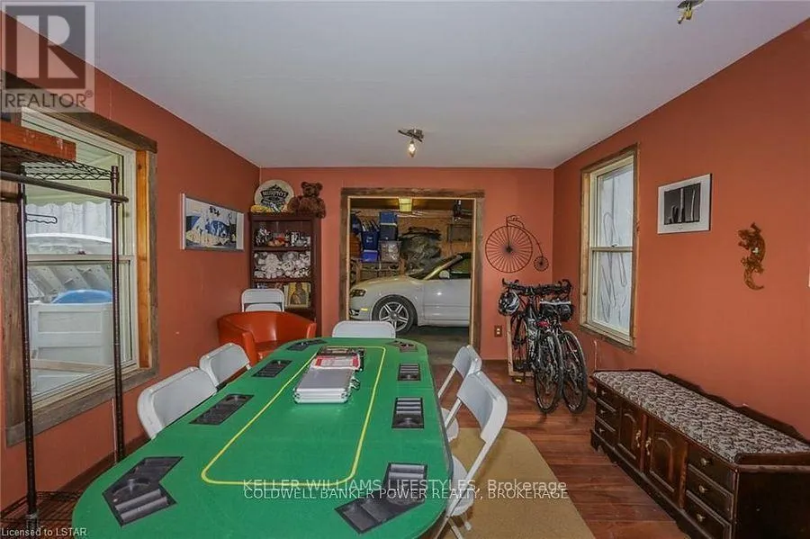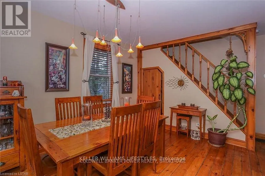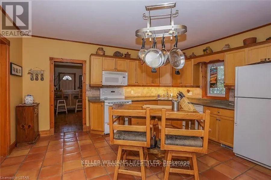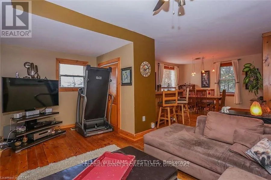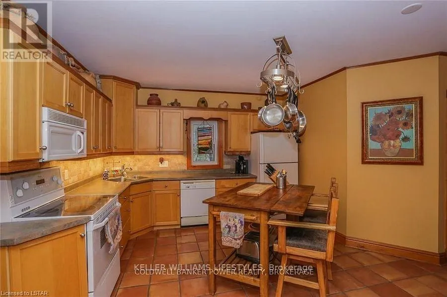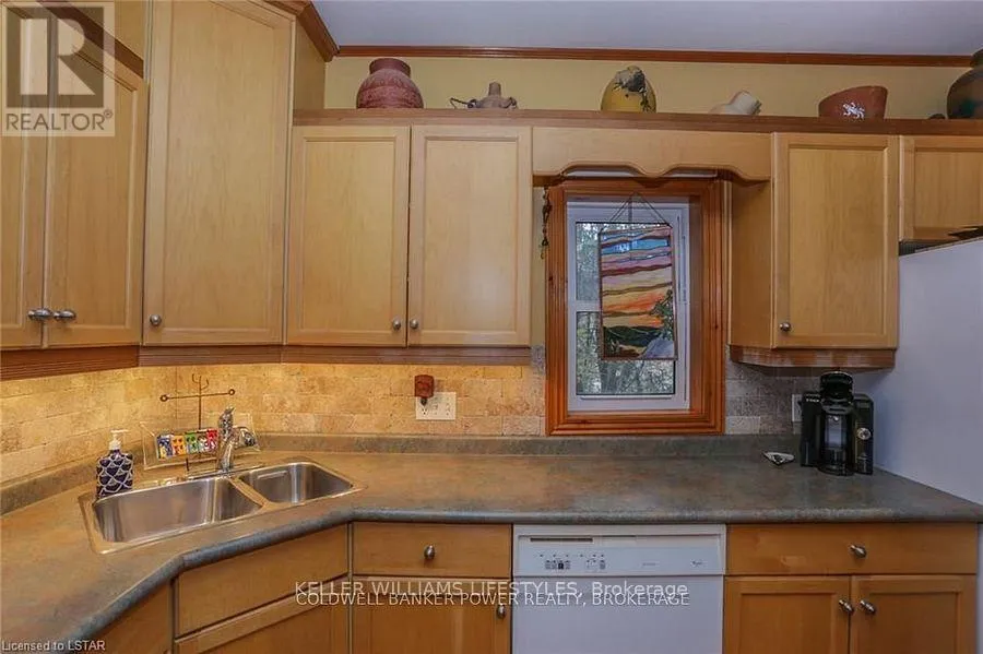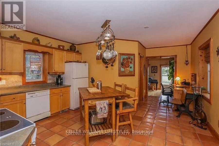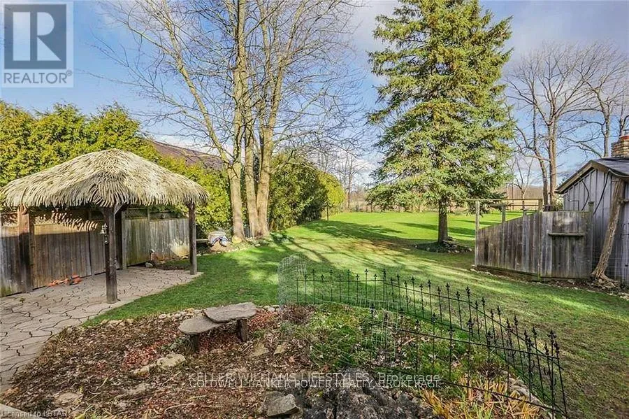 Cross Streets: Fifteen Mile and Denfield. ** Directions: Head north of London to Fifteen Mile road turn west to Denfield then turn North house on right hand side of road. Looking for a place where life slows down and memories speed up? Welcome to your everyday getaway. This charming country retreat sits on 2/3 of an acre just 15 minutes northwest of London and is the perfect blend of comfort, character, and outdoor living.Inside, you'll find warm wood tones, beautiful Mexican Saltillo tile, and soaring cathedral ceilings that give the home a cozy, cottage feel with plenty of space to gather. The family room, with its pine cathedral ceiling and gas fireplace stove, overlooks the backyard and is the kind of space you'll never want to leave. A huge front great room, updated kitchen, and spacious main floor laundry/mudroom make everyday living easy.Step outside and this is where the magic really happens, fully fenced, landscaped yard backing onto farmland for ultimate privacy. Host friends and family on the large deck with lighting and waterfall, relax in the 8-person hot tub, enjoy evenings around the fire, rinse off in the private outdoor shower, or hang out under the tiki hut. It's built for entertaining and unwinding.Updates include furnace and central air (2017), updated electrical panel, shingles (2010), upgraded eavestroughs, central vac in house and garage, and more. Excellent neighbours and a fantastic workshop/garage space (approx. 30' x 12.5' & 20.5' x 12') for hobbies, storage, or projects.This isn't just a home, it's where weekends happen... every single day. Don't miss it. (id:27476)