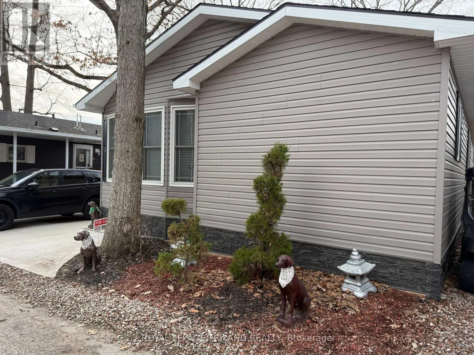 Cross Streets: GLENDON/AMIENS. ** Directions: GLENDON DR. WEST, RIGHT ONTO AMIENS RD. Welcome to Komoka - where simplified living meets elevated design in a welcoming 55+ community. This beautifully maintained 2-bedroom, 2-bath home offers the perfect blend of comfort, functionality, and contemporary style - without the upkeep of a larger property. The heart of the home is a show piece, white shaker kitchen featuring a massive island designed for gathering, hosting family, or enjoying quiet mornings with coffee. Custom built-in cabinetry throughout the kitchen, bedrooms, and bathrooms provides exceptional storage - giving you space for what matters, without the clutter. Step through the patio doors off the living room onto a spectacular wrap-around 400 sq ft covered deck complete with pot lights and hot tub - the perfect extension of your living space. Whether you're entertaining, relaxing with a book, or enjoying warm summer evenings, this outdoor retreat delivers comfort without maintenance. Here, you're not just downsizing - you're upgrading your lifestyle. Enjoy access to a licensed community centre, swimming pool, dog park, and dedicated event spaces that make it easy to stay active and connected. Low maintenance. Strong sense of community. Thoughtfully designed living. (id:27476)