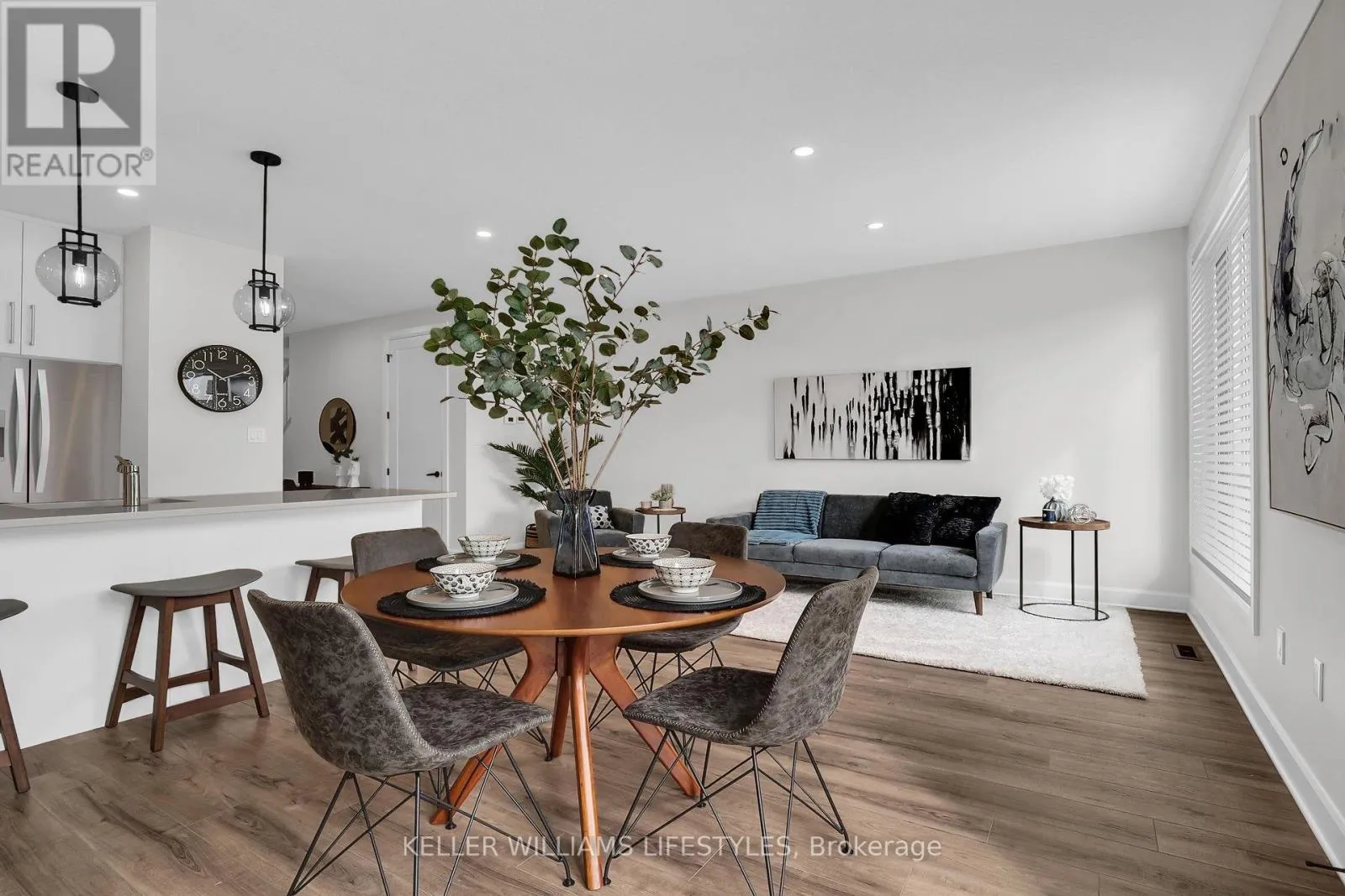 Cross Streets: Glendon Dr & Crestview Dr. ** Directions: Glendon Dr to Crestview, to Doan Dr. Located just minutes from London's west end, the charming community of Kilworth offers a perfect blend of small-town atmosphere and everyday convenience. Set near the Thames River and surrounded by natural scenery, this area provides easy access to the city while enjoying a quieter setting. This modern townhome is part of the Aura development, known for its contemporary architecture and stylish design.This approximately 1,731 sq. ft. two-storey townhome features 3 bedrooms and a bright open-concept layout. Highlights include 9-foot ceilings, 8-foot interior doors, an oak staircase with steel spindles, wide-plank stone polymer composite flooring, pot lights, and modern fixtures throughout. The great room flows into a gourmet kitchen with quartz countertops, a large peninsula, modern cabinetry, and a stainless steel appliance package. The primary bedroom offers a spa-inspired ensuite with glass shower, double sinks, quartz counters, and a walk-in closet. Additional features include an unfinished basement, large windows, and a deck off the great room. *Renderings and model suite photos are conceptual and for marketing purposes only. Actual unit specifications and finishes may vary.* (id:27476)